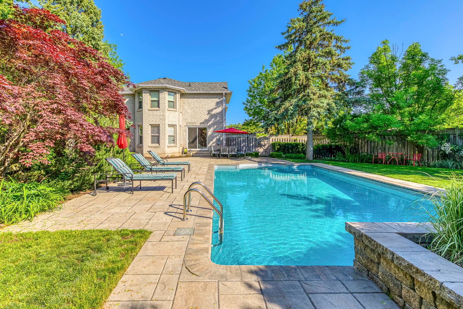Stunning 3136 sq ft home on prestigious glen abbey crt! Backing/siding ravine, 200 ft frontage. 4+1 bedrooms, 3+1 bathrooms and 3 fireplaces. Kitchen with granite & stainless appliances. Formal living rm & dining rm. Hardwood floor through main floor. Huge master with spa-like ensuite. Finished basement with rec room, sitting area/gym, bedroom & updated bathroom. Private resort style yard with in ground pool w/ waterfall.