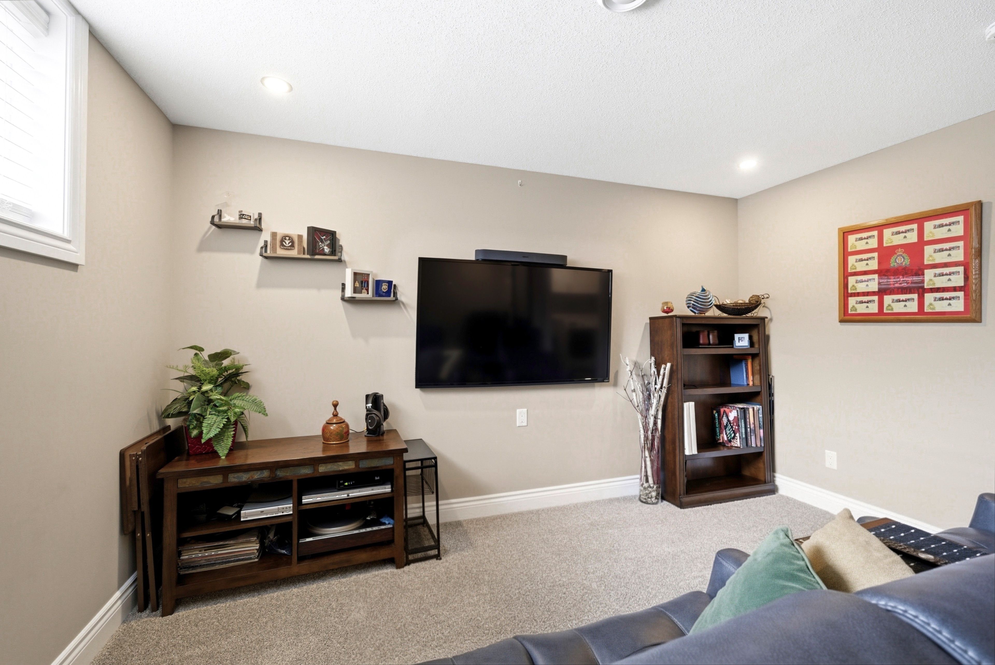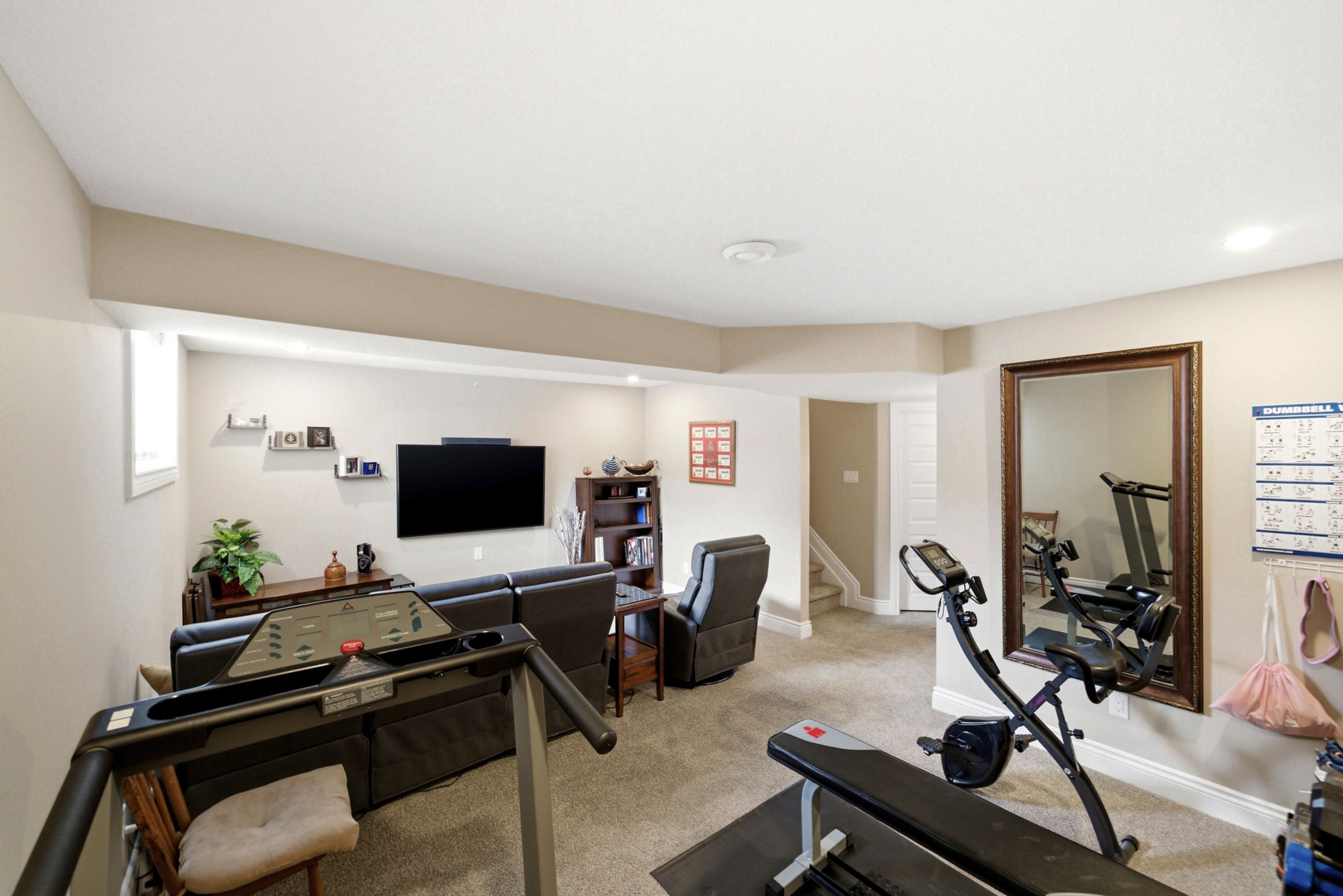 • Fully finished basement offers a large rec room and seamless entertainment setup.