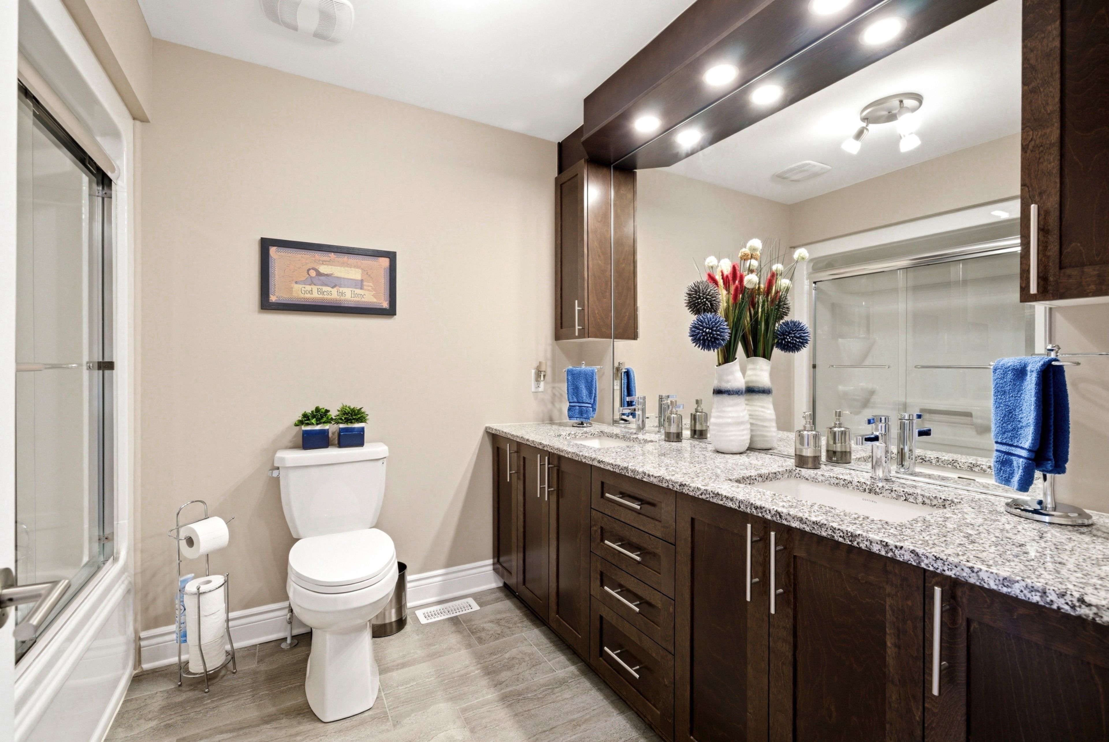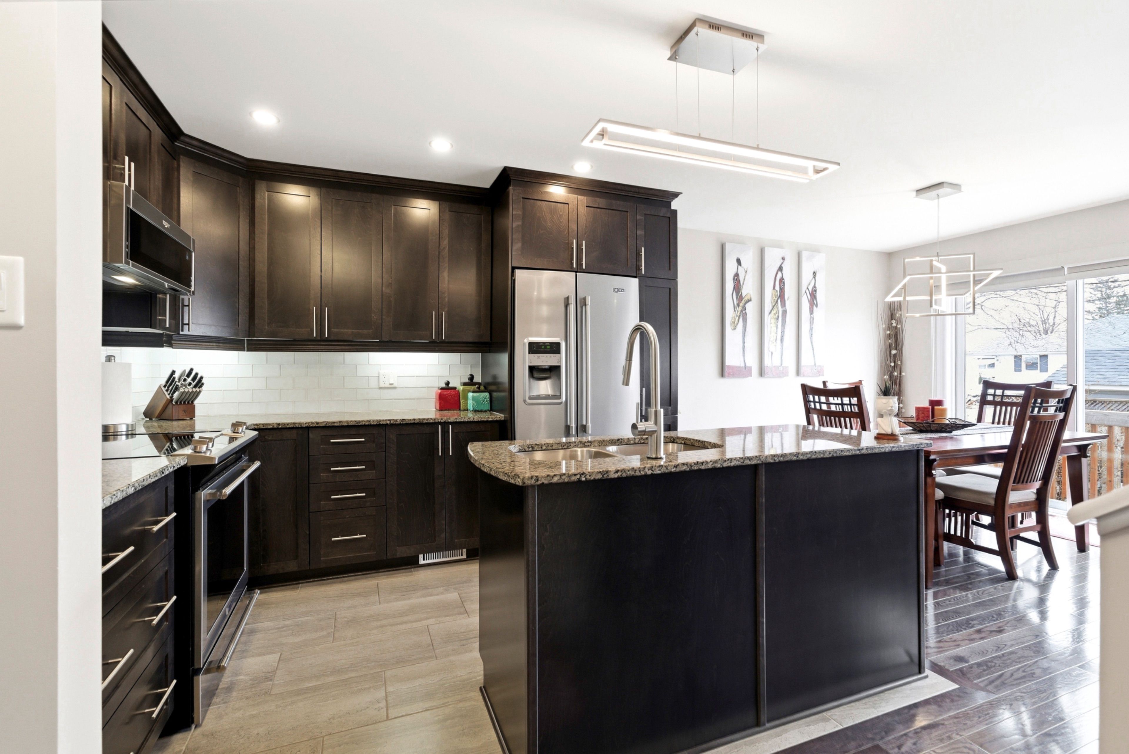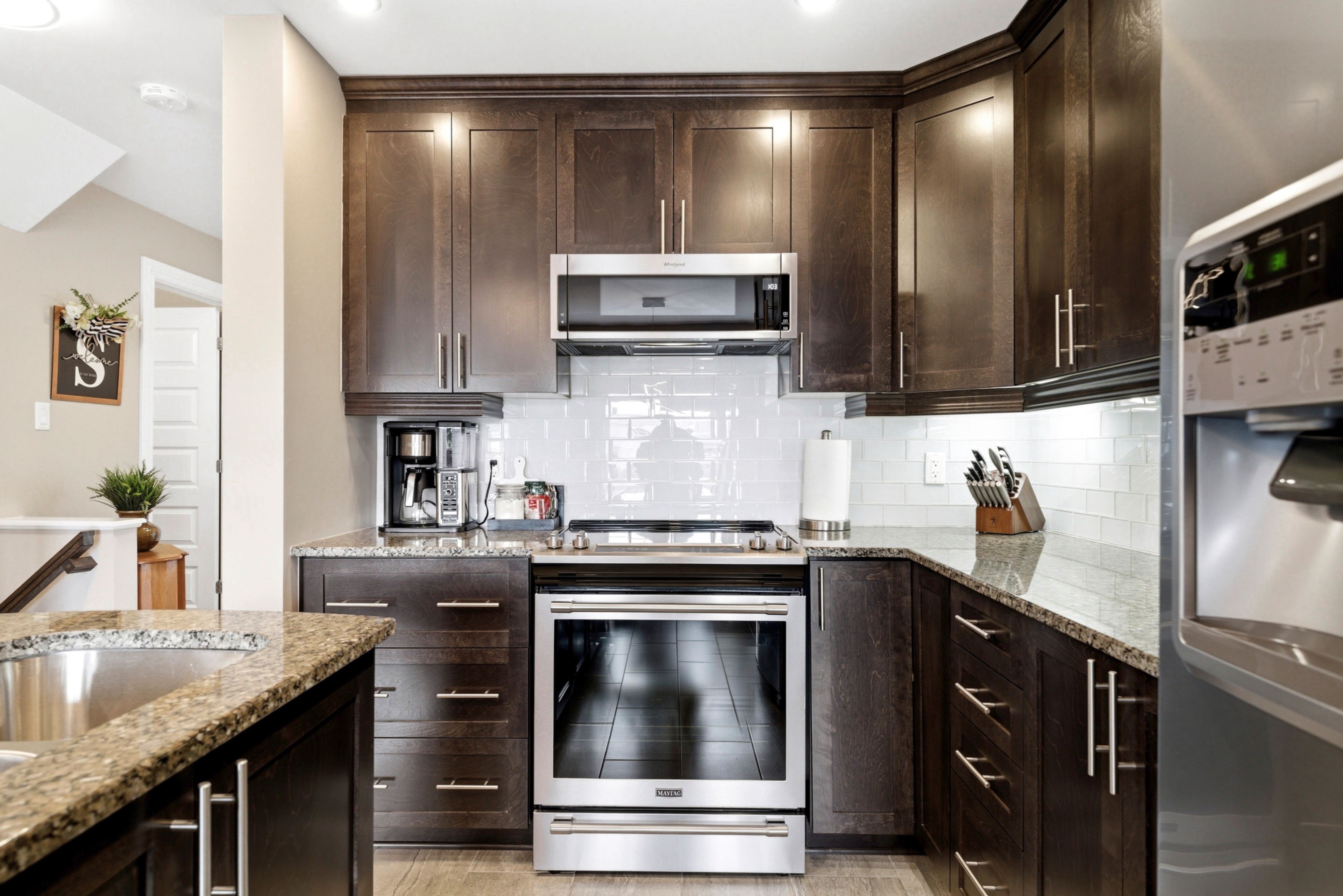 • Spacious eat-in kitchen featuring granite countertops and modern appliances.