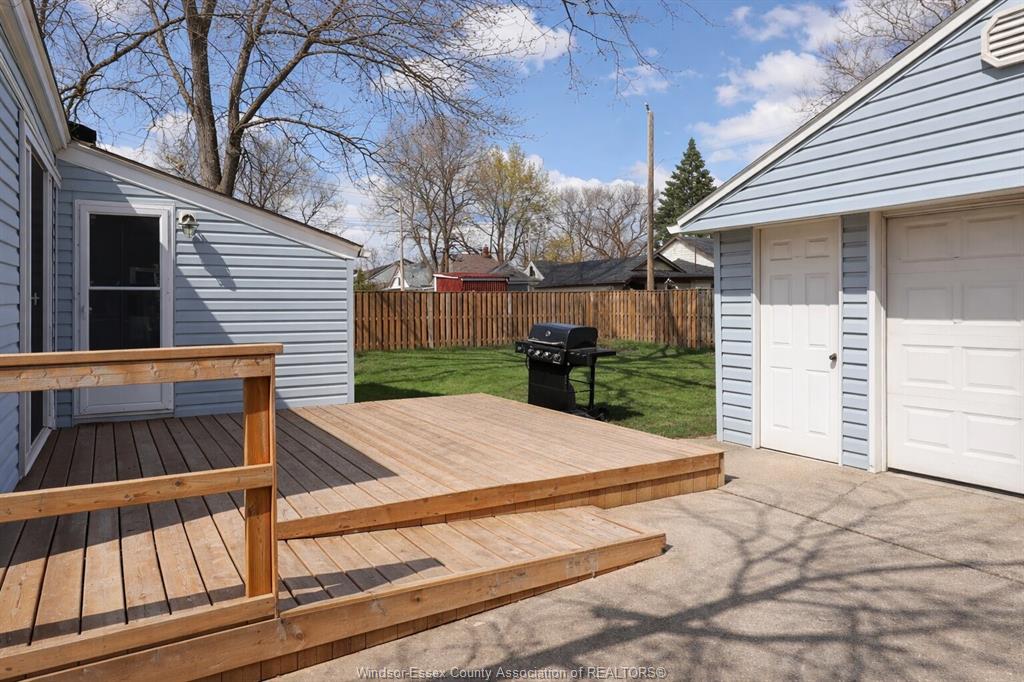 This 1 and a half storey home situated on a double lot features 4 bedrooms, and 1 bathroom. An ideal match for first-time homebuyers or young families looking for a solid investment in a friendly, convenient neighbourhood. The upper level has been recently painted and updated with new flooring. The single car garage features a newer roof (2024) offering excellent storage or workshop potential. The newly installed back deck (2024) is perfect for summer bbqs while overlooking a fully fenced backyard which is a safe and private space for children and pets to play. Situated in a prime windsor location, this home keeps you connected to everything you need such as schools, public transportation, and shopping.