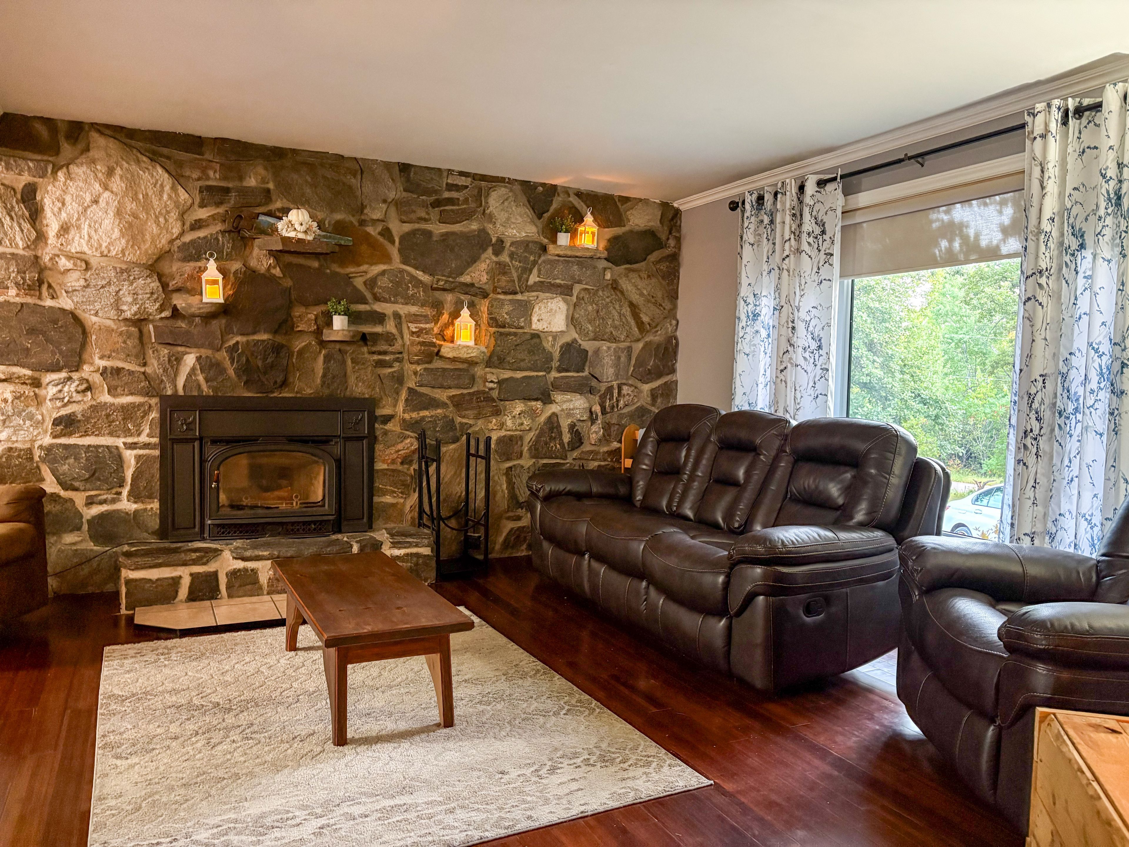 Welcome to this charming bungalow on a quiet, scenic dead-end road in the heart of calabogie. Surrounded by mature trees and natural beauty, this property offers the perfect blend of privacy and convenience. Just minutes to calabogie peaks ski hill, the golf course, and village amenities. Inside, the main level features an open-concept kitchen, dining, and living area anchored by a stunning floor-to-ceiling fieldstone fireplace with a newer airtight wood insert. Three comfortable bedrooms and a full four-piece bath complete this level. The finished basement extends your living space, ideal for a family rec room and home office. Outdoors, enjoy summers by the above-ground pool and expansive back deck overlooking the surrounding bush. Perfect for young families or anyone who loves to entertain. This calabogie gem offers four-season living in a sought-after recreational community.