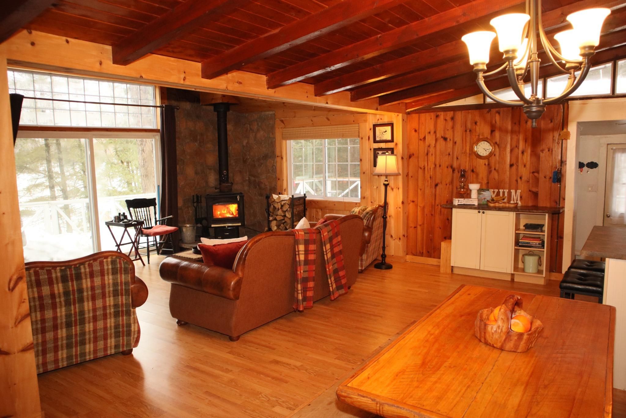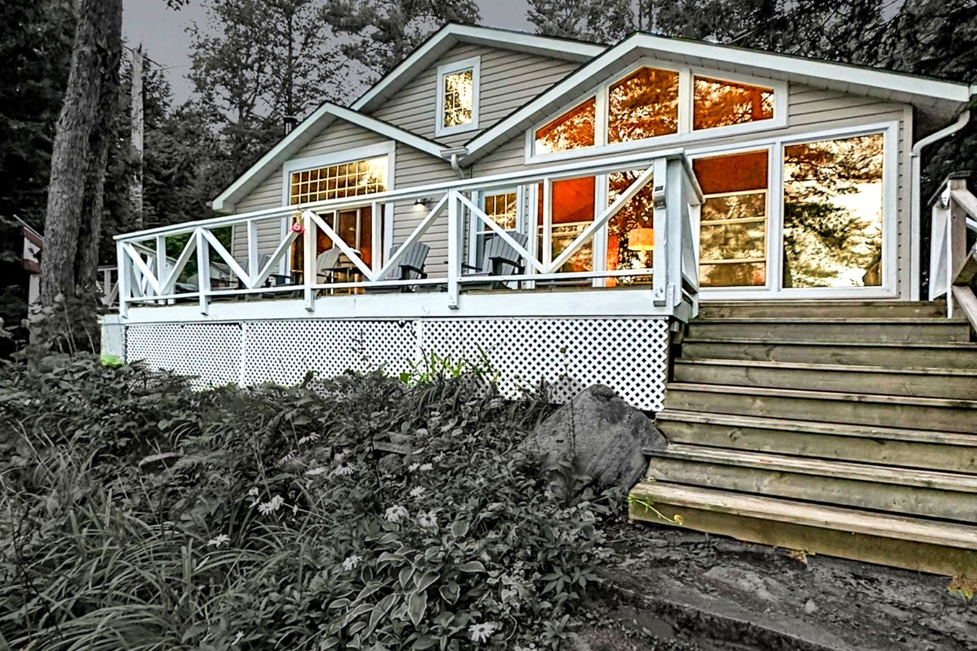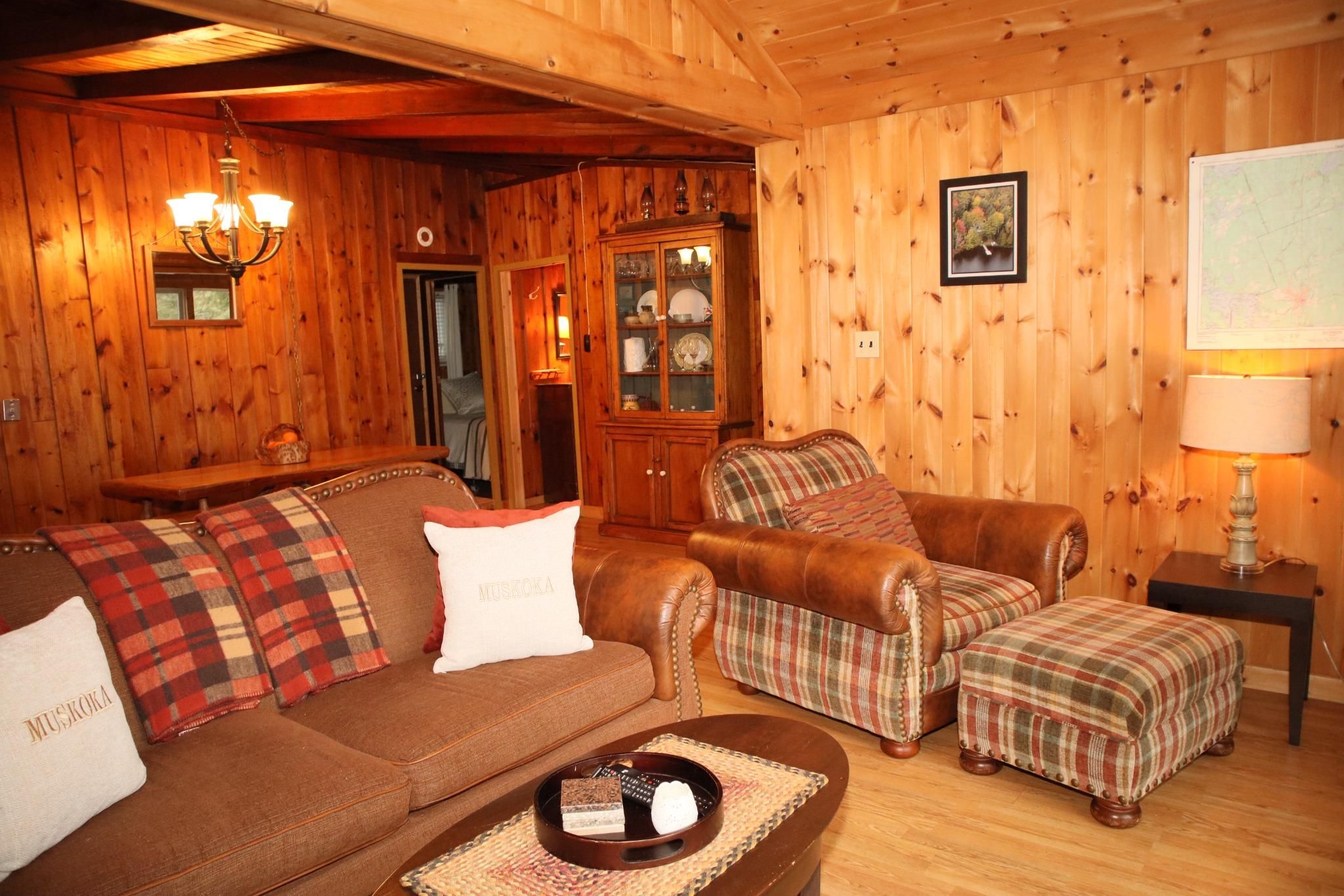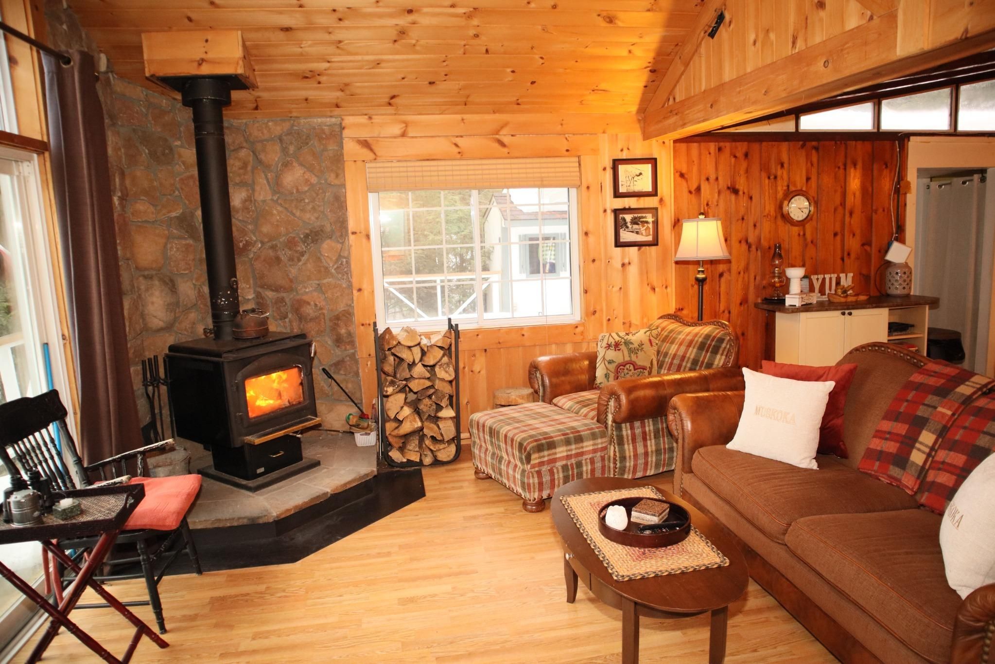 One of pine lake's most private waterfront settings, offering expansive lake views, southern exposure, and a level of privacy rarely available. Just 2 hours from the gta, this is muskoka living exactly as it should be. A truly special waterfront cottage on pine lake, one of muskoka's most sought-after settings. Opportunities like this are rarely available, and neighbours often comment on the exceptional lake views this property enjoys. Set on a private bay with ideal southern exposure, enjoy full-day sun, calm waters for swimming away from heavier boat traffic, and a high level of privacy. Morning coffee on the dock and evenings on the expansive wrap-around deck overlooking the lake create an ideal setting for relaxing or entertaining. Spanning just over 2 acres, the property features mature trees and wooded trails connecting to established walking paths around the lake. An owned road shore allowance further enhances shoreline access and long-term value. Inside, vaulted pine ceilings and expansive windows create a bright, inviting interior. The updated kitchen with modern appliances flows into the open-concept living and dining areas, anchored by a wood-burning stove. The rebuilt muskoka room (approx. 300 sq ft) expands total living space to over 1,300 sq ft and captures beautiful lake views. Three bedrooms plus a bunkie with queen bunk beds and workspace offer flexibility for family and guests. Additional features include high-speed internet, satellite tv, a newer potable well, full laundry, two sheds, and year-round private road access. Located just 20 minutes from bracebridge and its full range of amenities. A rare waterfront opportunity in muskoka.