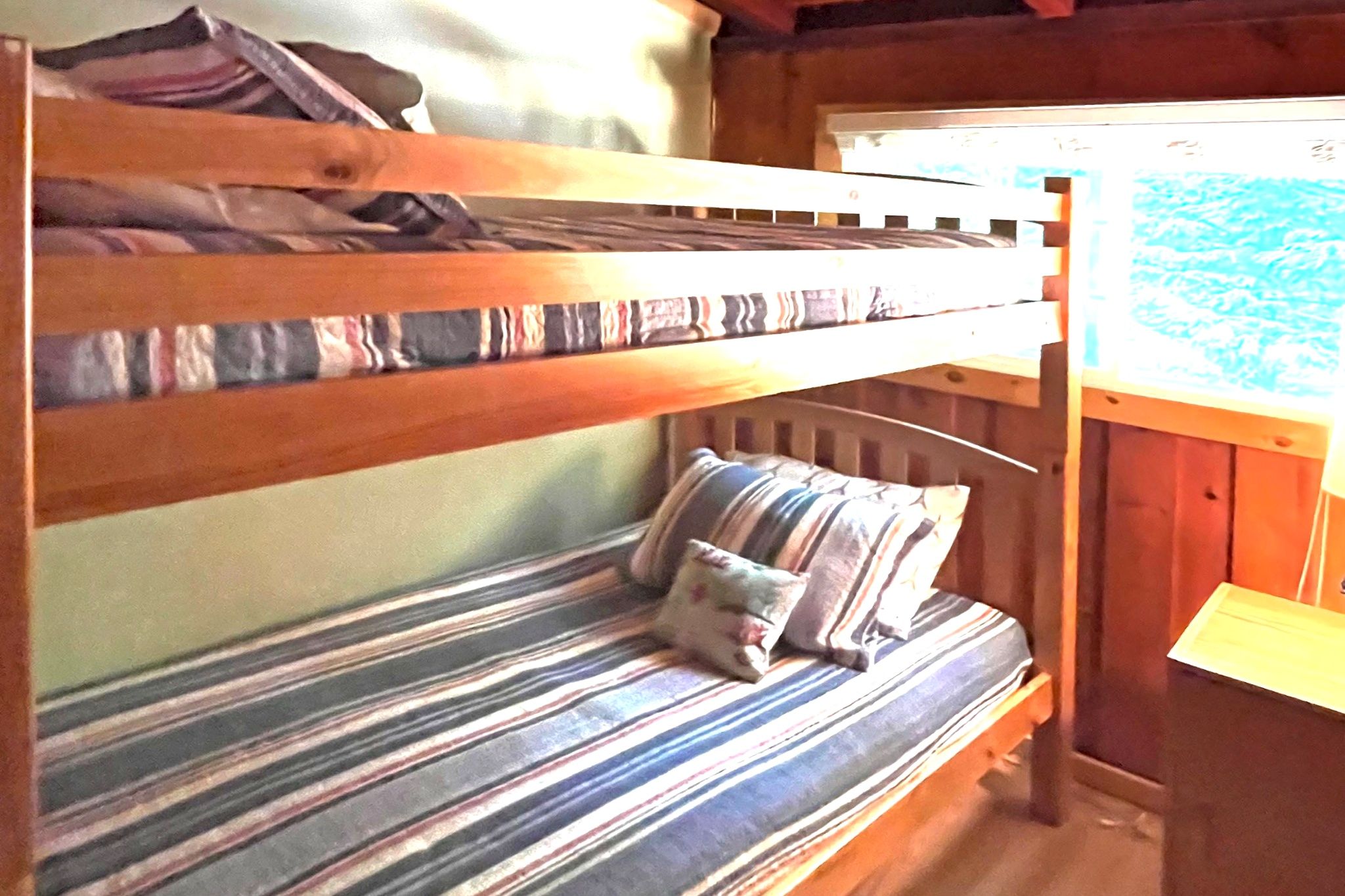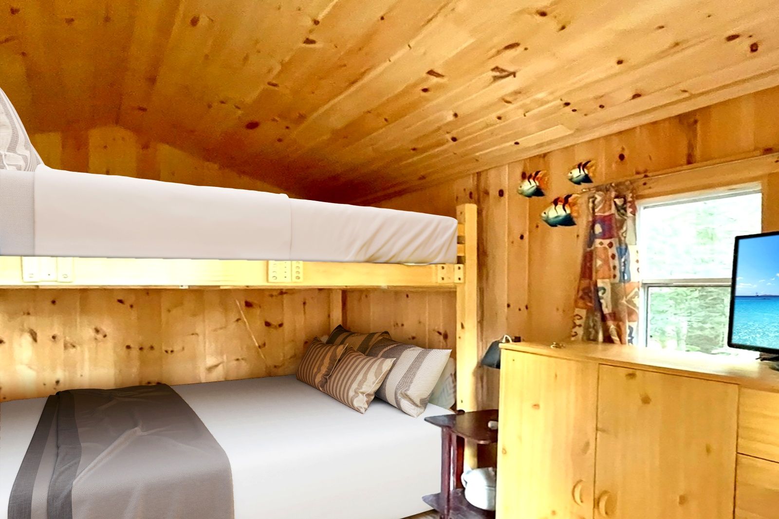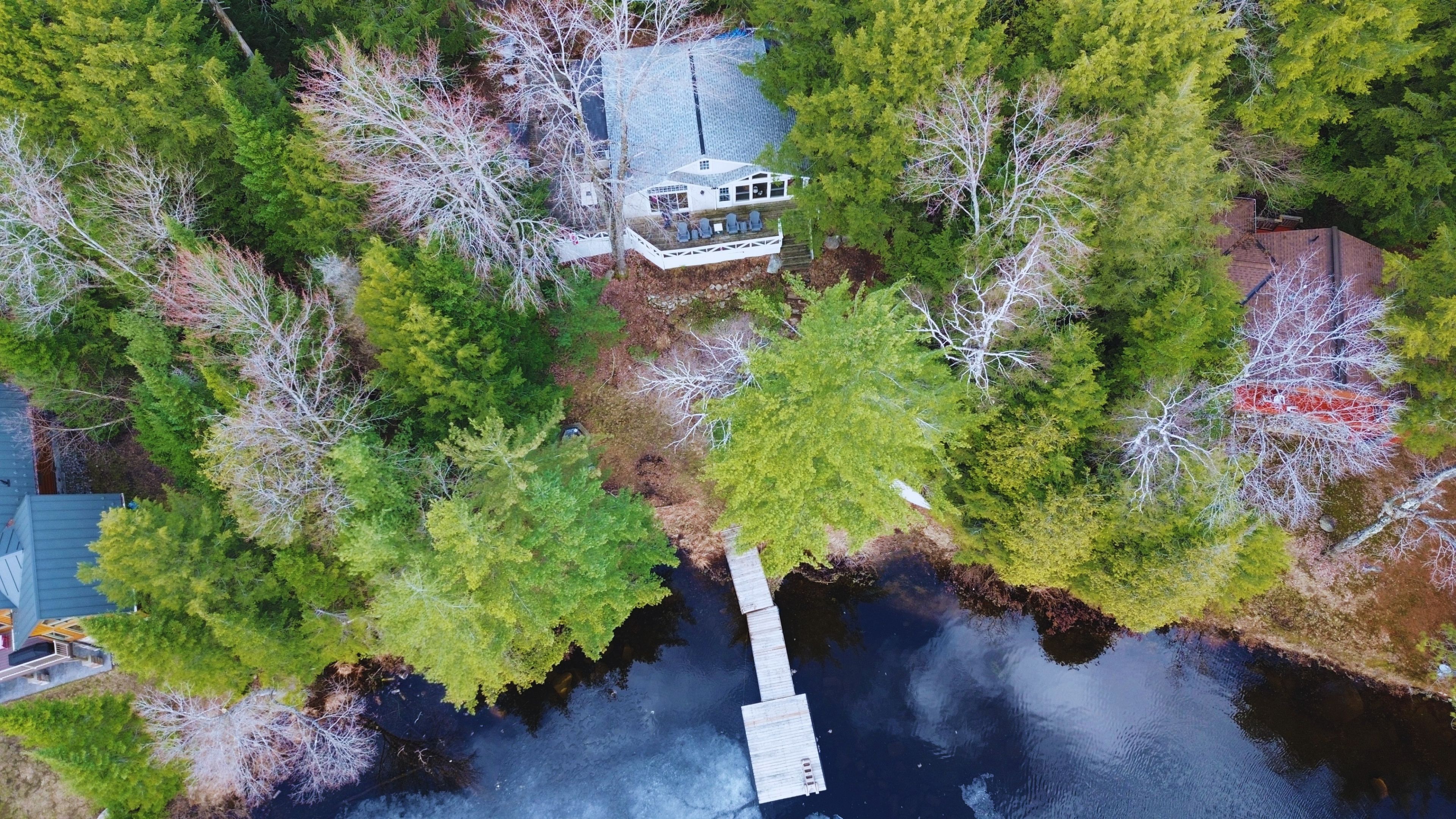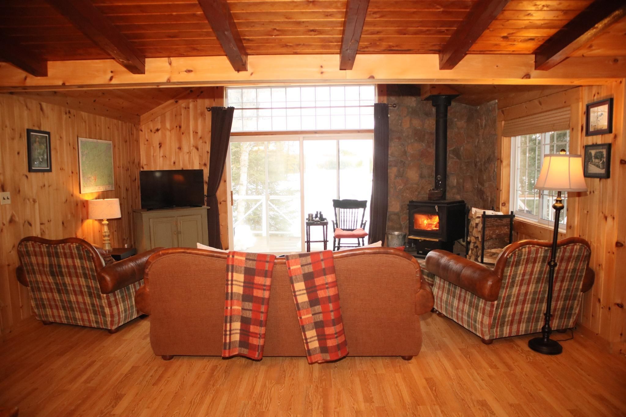 One of pine lake's most private waterfront settings, offering expansive lake views, southern exposure, and a level of privacy rarely available. Just 2 hours from the gta, this is muskoka living exactly as it should be. A truly special waterfront cottage on pine lake, one of muskoka's most sought-after settings. Opportunities like this are rarely available, and neighbours often comment on the exceptional lake views this property enjoys. Set on a private bay with ideal southern exposure, enjoy full-day sun, calm waters for swimming away from heavier boat traffic, and a high level of privacy. Morning coffee on the dock and evenings on the expansive wrap-around deck overlooking the lake create an ideal setting for relaxing or entertaining. Spanning just over 2 acres, the property features mature trees and wooded trails connecting to established walking paths around the lake. An owned road shore allowance further enhances shoreline access and long-term value. Inside, vaulted pine ceilings and expansive windows create a bright, inviting interior. The updated kitchen with modern appliances flows into the open-concept living and dining areas, anchored by a wood-burning stove. The rebuilt muskoka room (approx. 300 sq ft) expands total living space to over 1,300 sq ft and captures beautiful lake views. Three bedrooms plus a bunkie with queen bunk beds and workspace offer flexibility for family and guests. Additional features include high-speed internet, satellite tv, a newer potable well, full laundry, two sheds, and year-round private road access. Located just 20 minutes from bracebridge and its full range of amenities. A rare waterfront opportunity in muskoka.