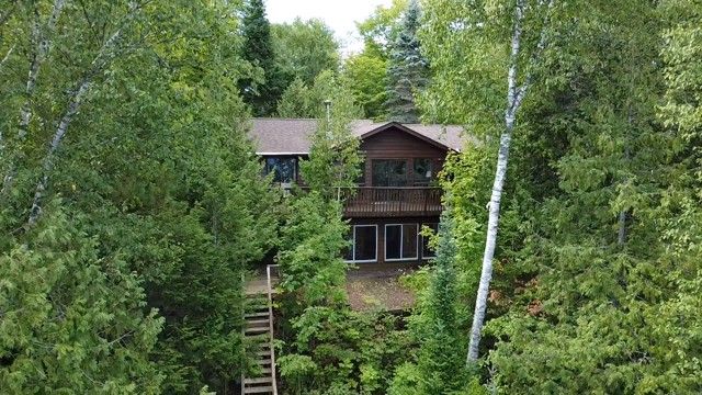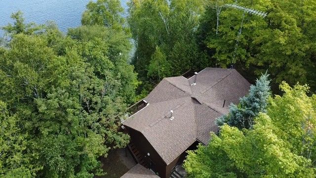 Incredible property on sought-after miskwabi lake! Rare point lot, with well over 300 feet of lake frontage (330' per assessment) and 1. 3 acres for total privacy! Fantastic big lake view. Deep clean shoreline with a mix of rock and a hard sand beach for wading in -- perfect for kids. Bright and spacious 4-season cottage. The main floor has open-concept kitchen/living/dining areas. The living area features a vaulted ceiling, fireplace and walkout to deck facing the spectacular water view. There are 3 bedrooms plus a den, and 2 full bathrooms. Finished lower level with rec room, and walkout to sunroom facing the lake. Dual forced-air electric and oil-fired heating systems with on-demand hot water, plus electric baseboards and air conditioning. Detached 2-car garage with additional carport -- lots of storage for boats and toys! New stairs to waterfront, plus there's an easy trail leading down to the water, and nice level areas at the shoreline to play or relax. Enjoy sunset views from the dock and spectacular sunrise views from the cottage. Shoreline is owned. Miskwabi lake is part of a 2-lake chain renowned for miles of boating, clear waters, and lake trout fishing. Easy access by year round municipal road, approximately 15 minutes to haliburton village for shopping and services.