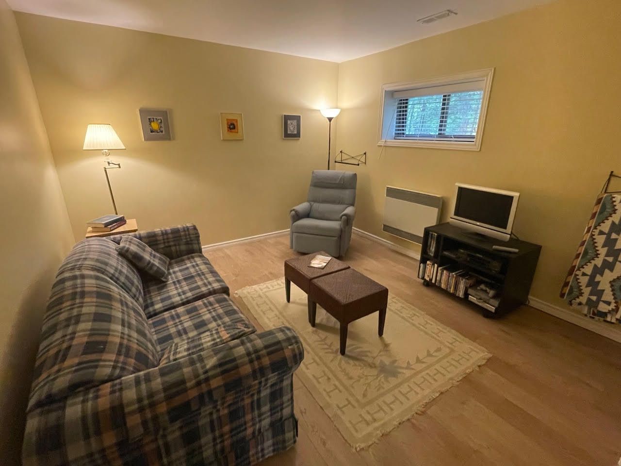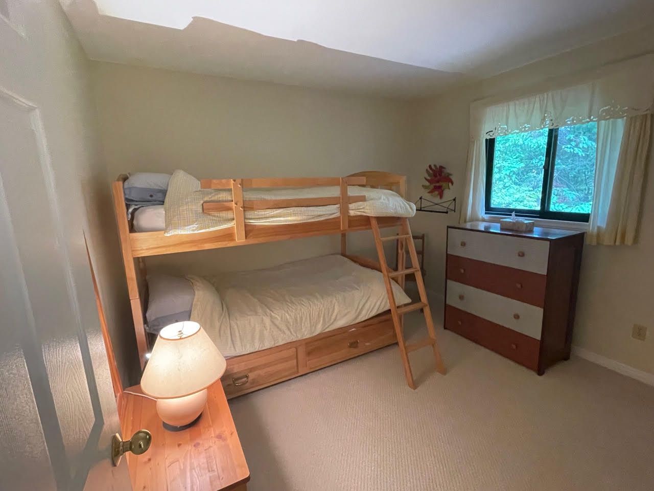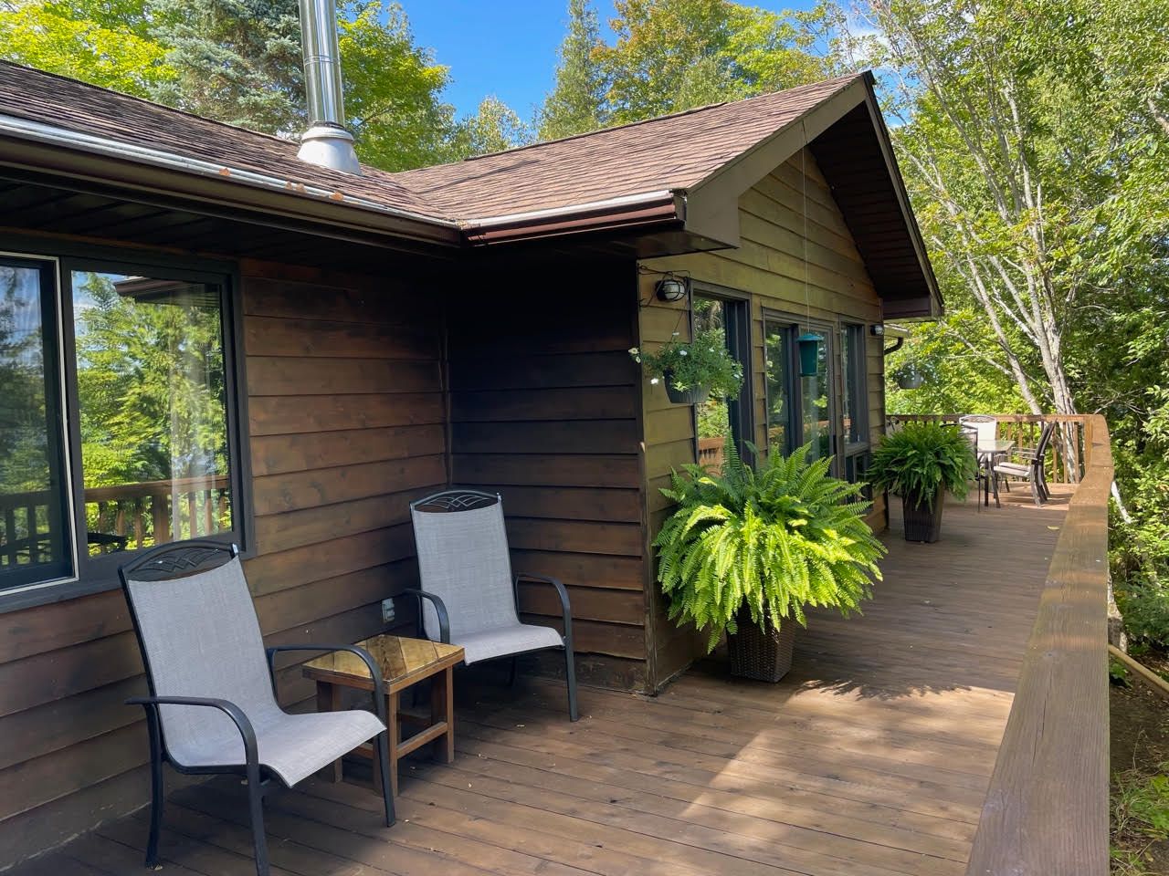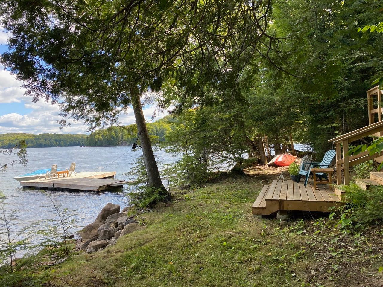 • Bright 4-season cottage with open-concept living areas and vaulted ceiling.
