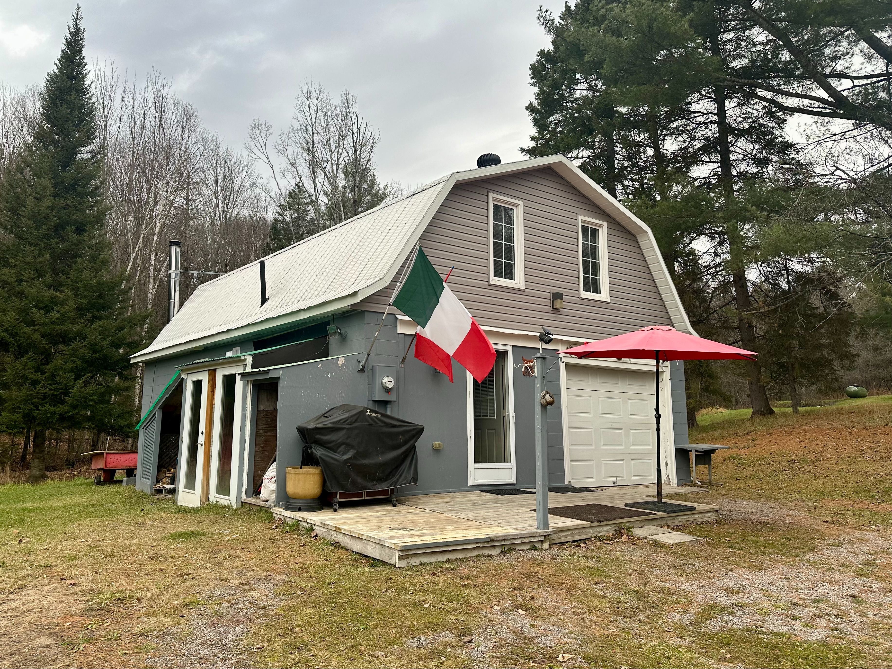Two bedroom, two bath starter home or off water cottage sitting on a beautiful 10+ acre, partially cleared parcel of land boasting pristine and quiet country living and a night sky filled with stars. This home is well set back from the road which is great for kids. Travel down the flat driveway lined with mature trees to a vast open space currently frequented by deer and other wildlife. This property offers a relaxed space with easy access to adventure including a nearby 40 mile waterway offering all day boating, fishing, and watersports as well as to smaller, quieter lakes to experience the serenity of a canoe or kayak to help you relax after a long week. Multiple provincial parks nearby offer hiking or skiing trails or take the kids and spend the day at the public beach nearby. This close knit community offers a two country stores for a quick restock of necessities and one of the best public schools in the area within walking distance. Lions park, also within walking distance, offers public skating in the winter months and hosts the local smelt festival every spring. Ample room for an additional garage if desired, the open area on this property is perfect for a garden or for hosting family and friends and their campers or tents. Set up a horseshoe pit and play a classic summer game while the bonfire crackles in the background and everyone waits until after the bbq to cook s'mores or roast marshmallows on a warm summer evening. This property truly has tons of potential and awaits your vision! Home was renovated in the past with r20 insulation on the exterior walls and extra insulation in the ceiling.