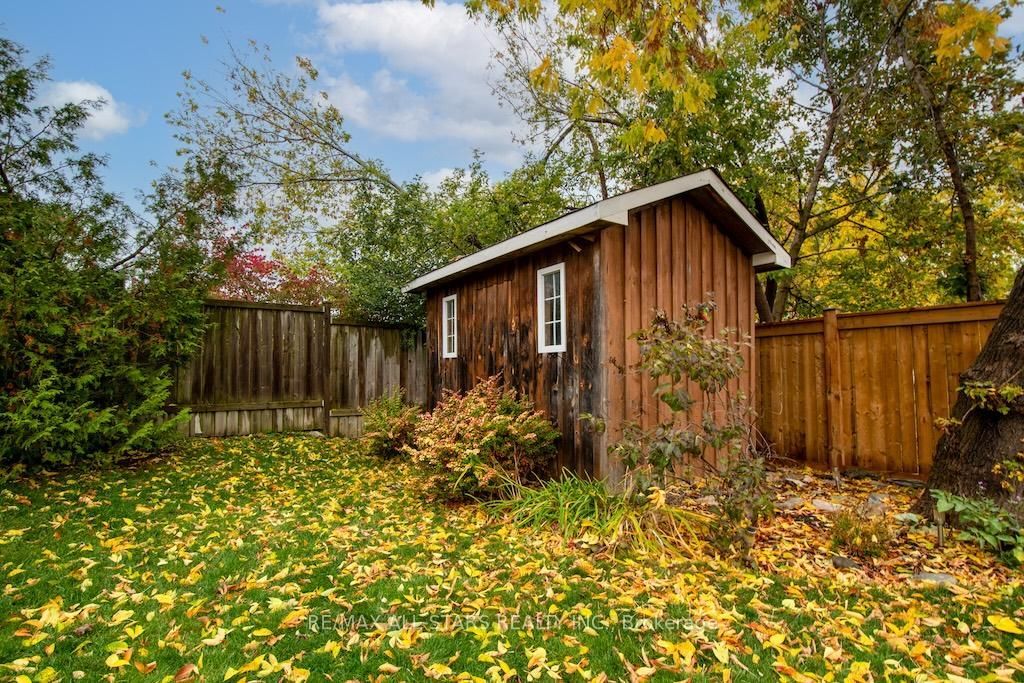 • Private fenced backyard with landscaping and oversized storage shed.