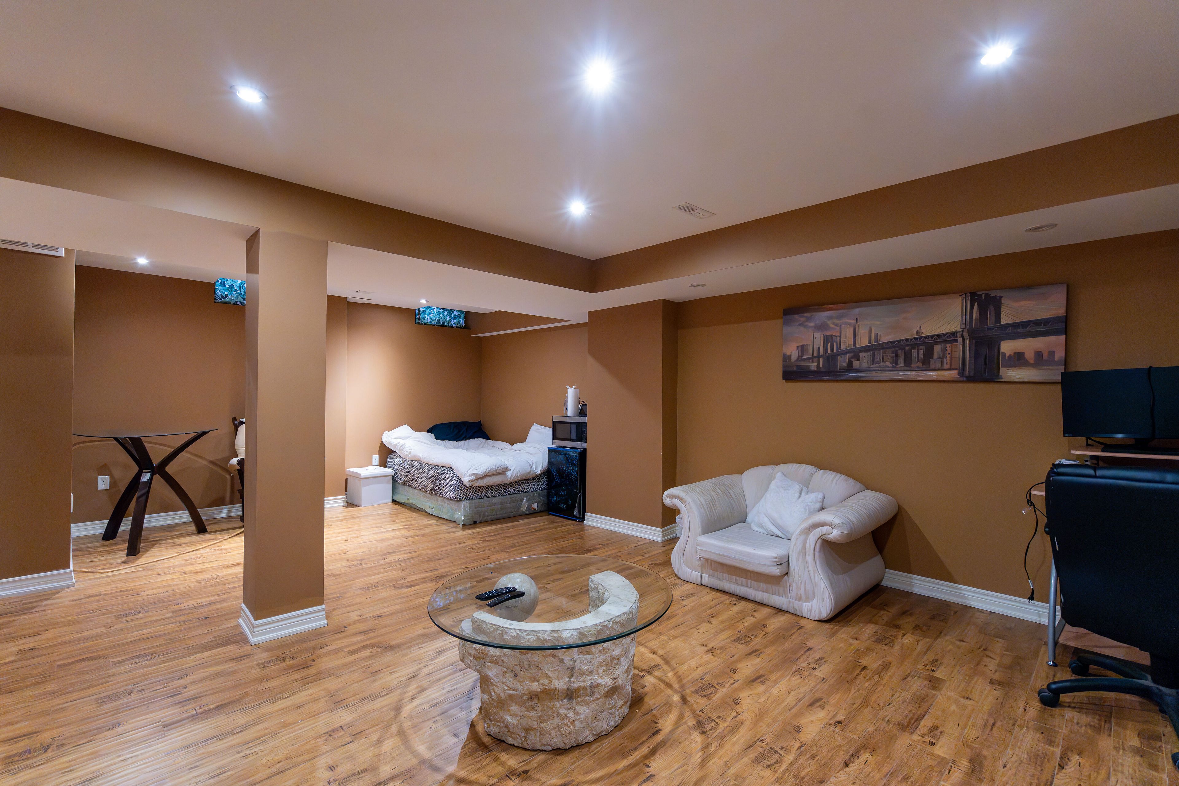 • Bright main floor with 9ft ceilings and multiple living areas.