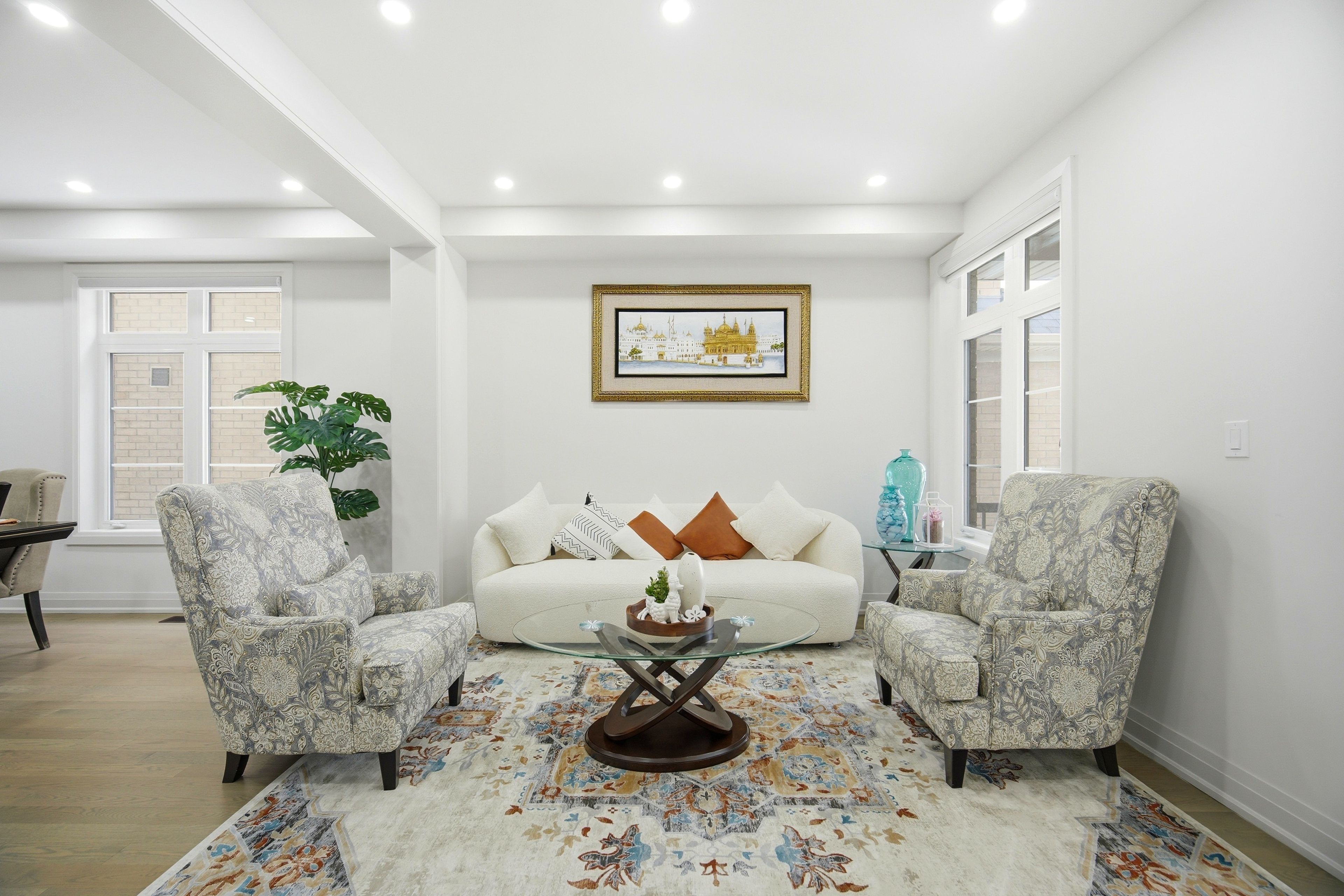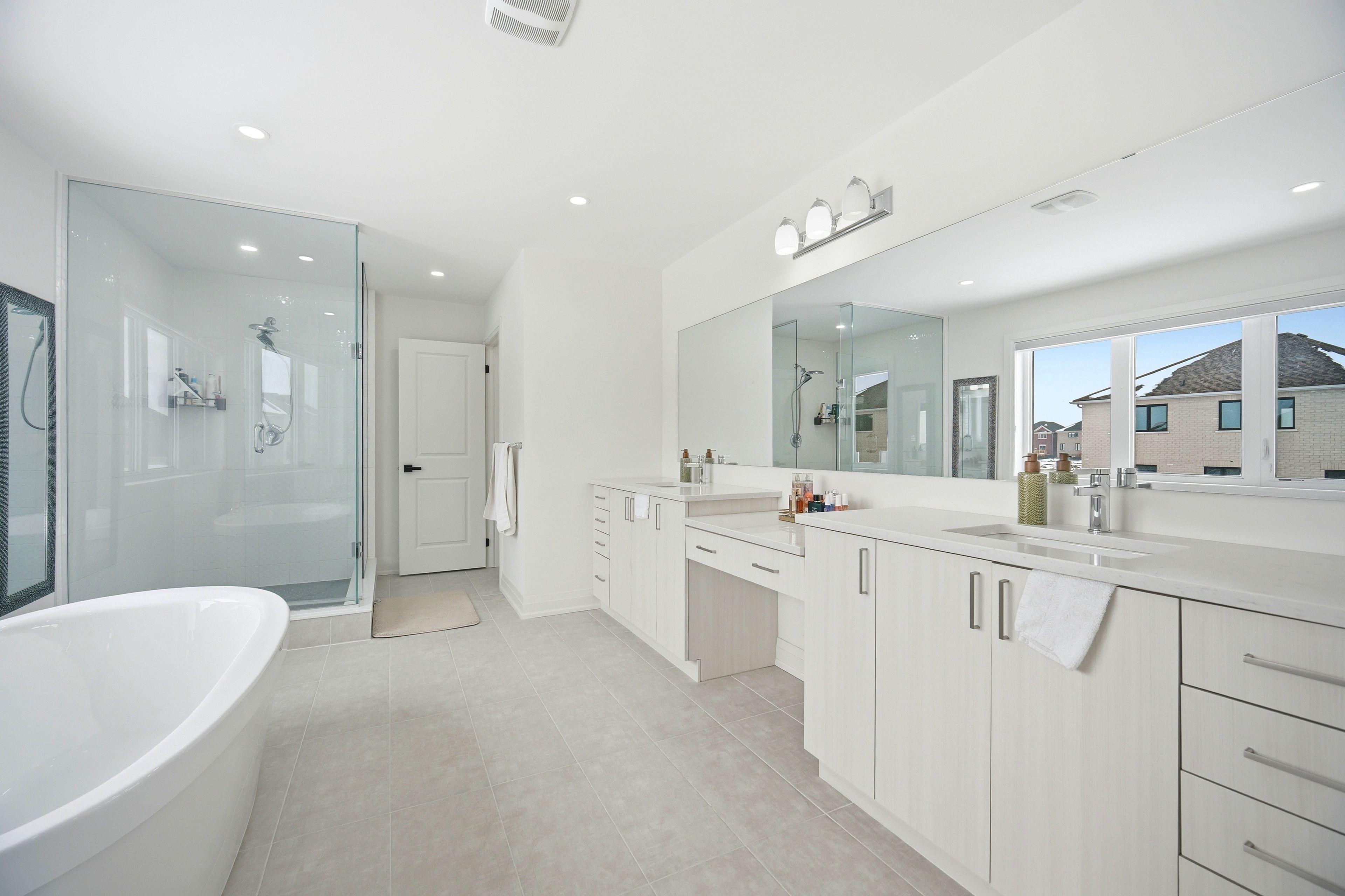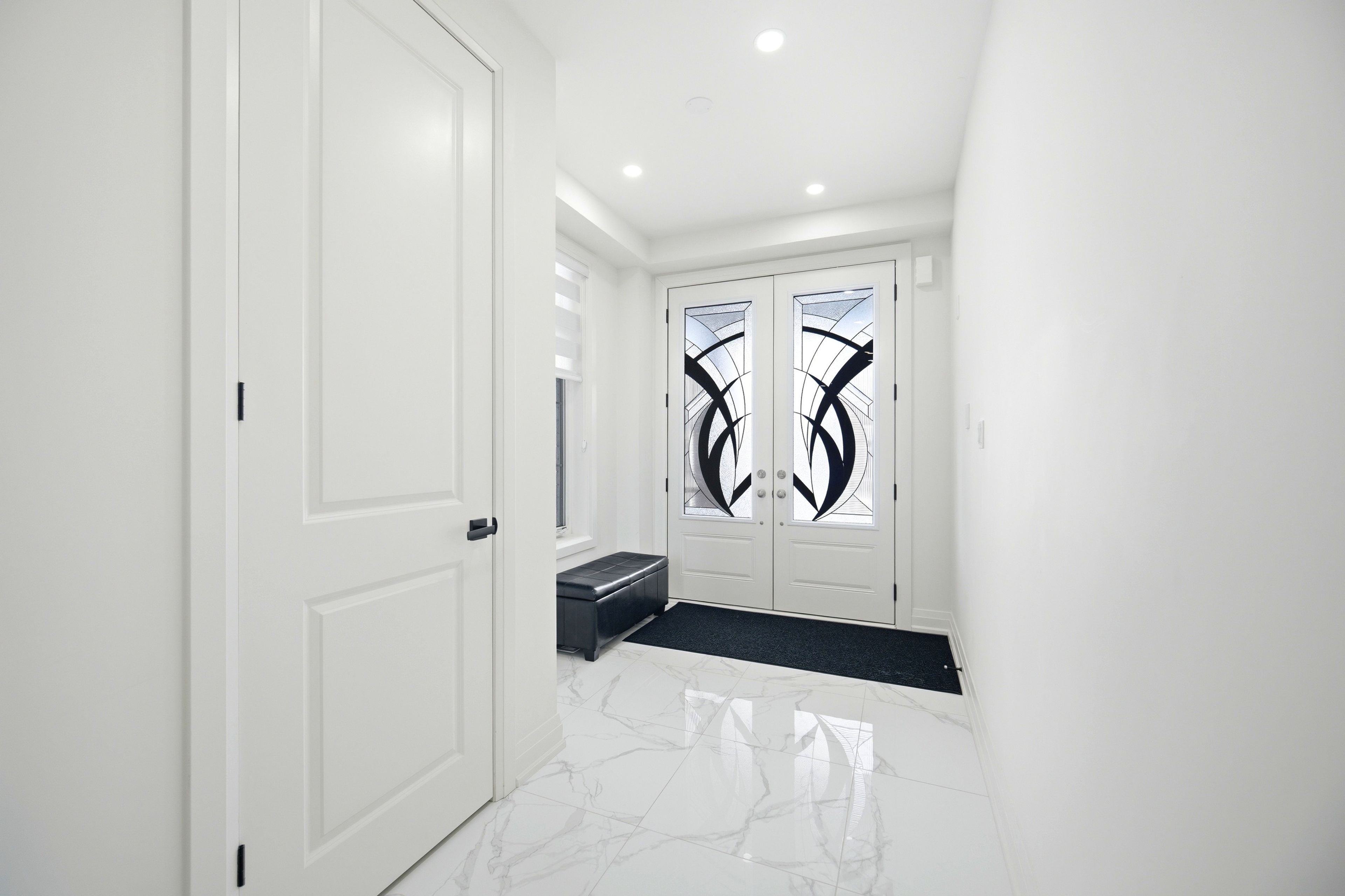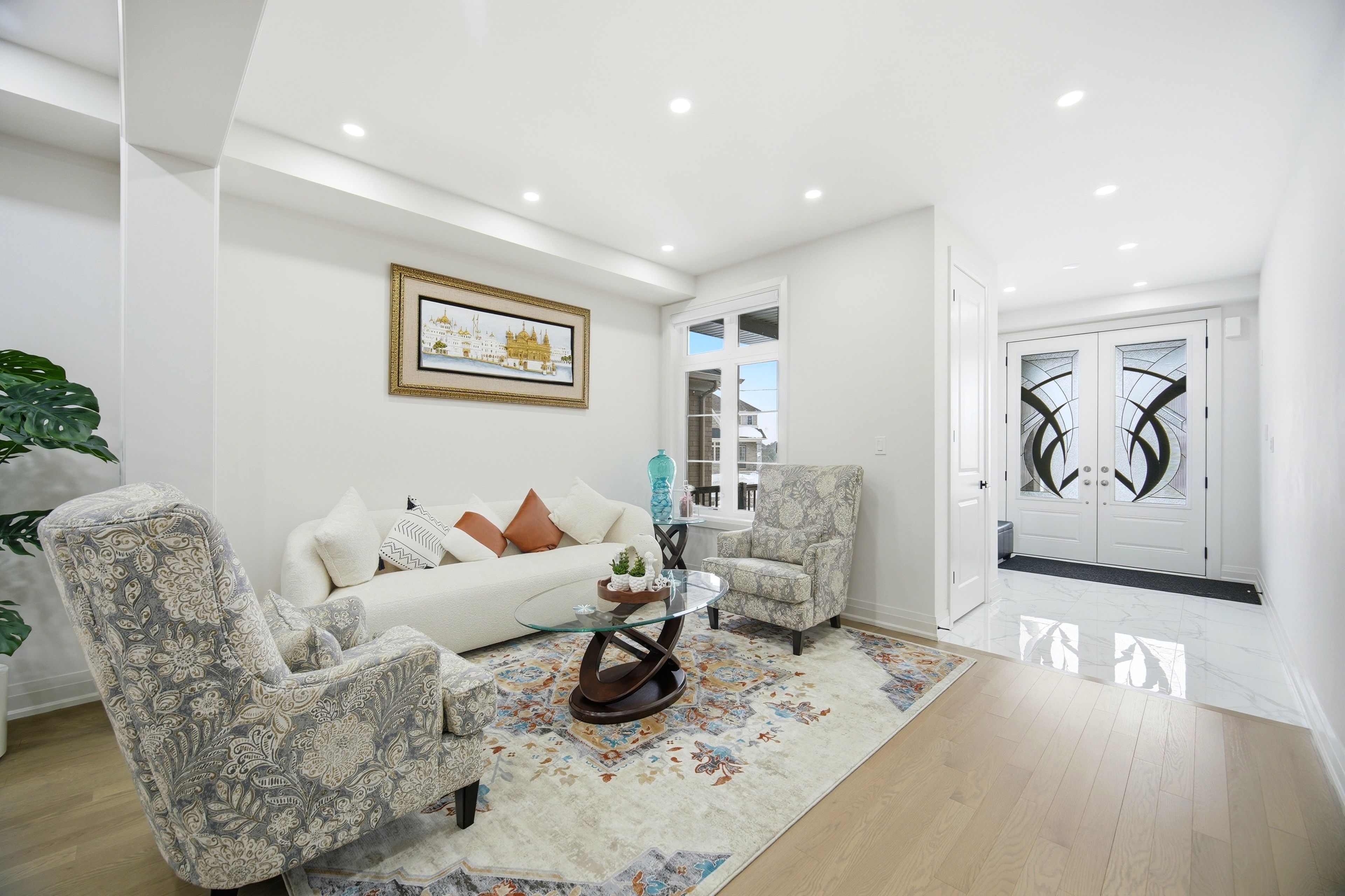 Luxury living in prestigious colgan starts the moment you walk through the grand double doors into this beautifully upgraded home. It features quartz countertops, rich hardwood floors, custom roll-up blinds, pot lights, and 9-foot ceilings on both levels. The bright, open layout includes a welcoming family room with a coffered ceiling and fireplace, flowing into a modern kitchen with a large island that's perfect for entertaining. Upstairs, you'll find two spacious primary bedrooms, including a stunning main suite with a spa-like 6-piece ensuite, upgraded bathrooms, and a modern stand-alone soaking tub, plus convenient second-floor laundry. An upgraded staircase leads to the basement with great future potential, and smart garage door openers add extra convenience-all just steps from woodington lake golf club.