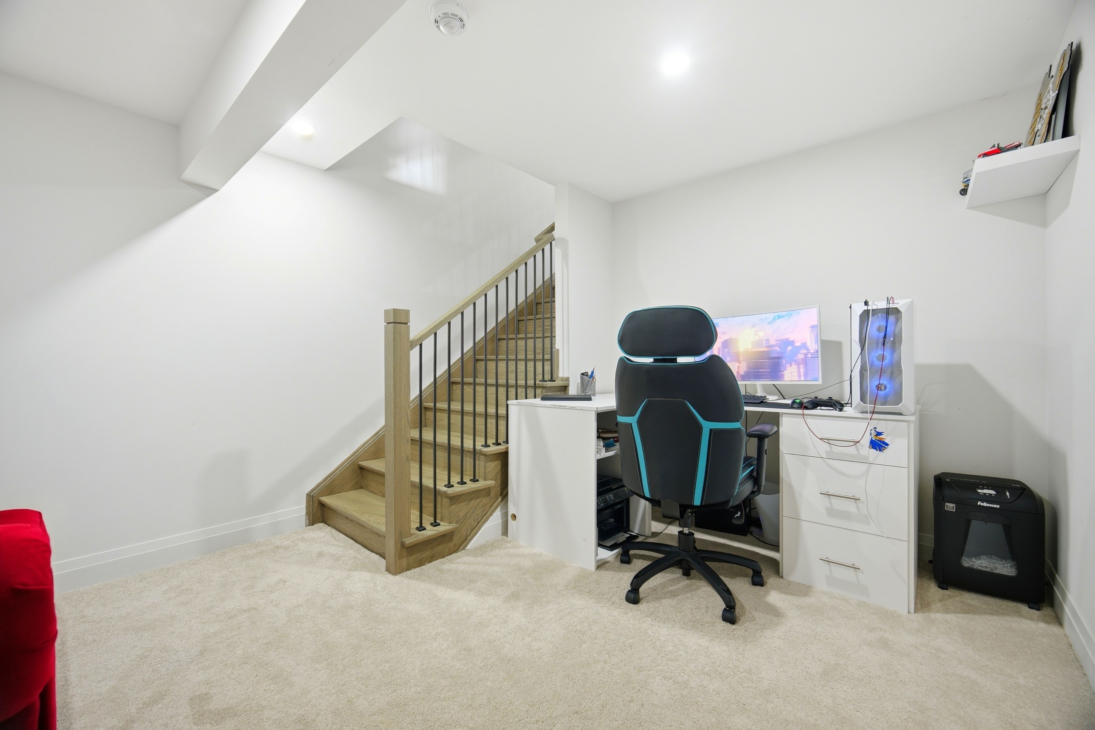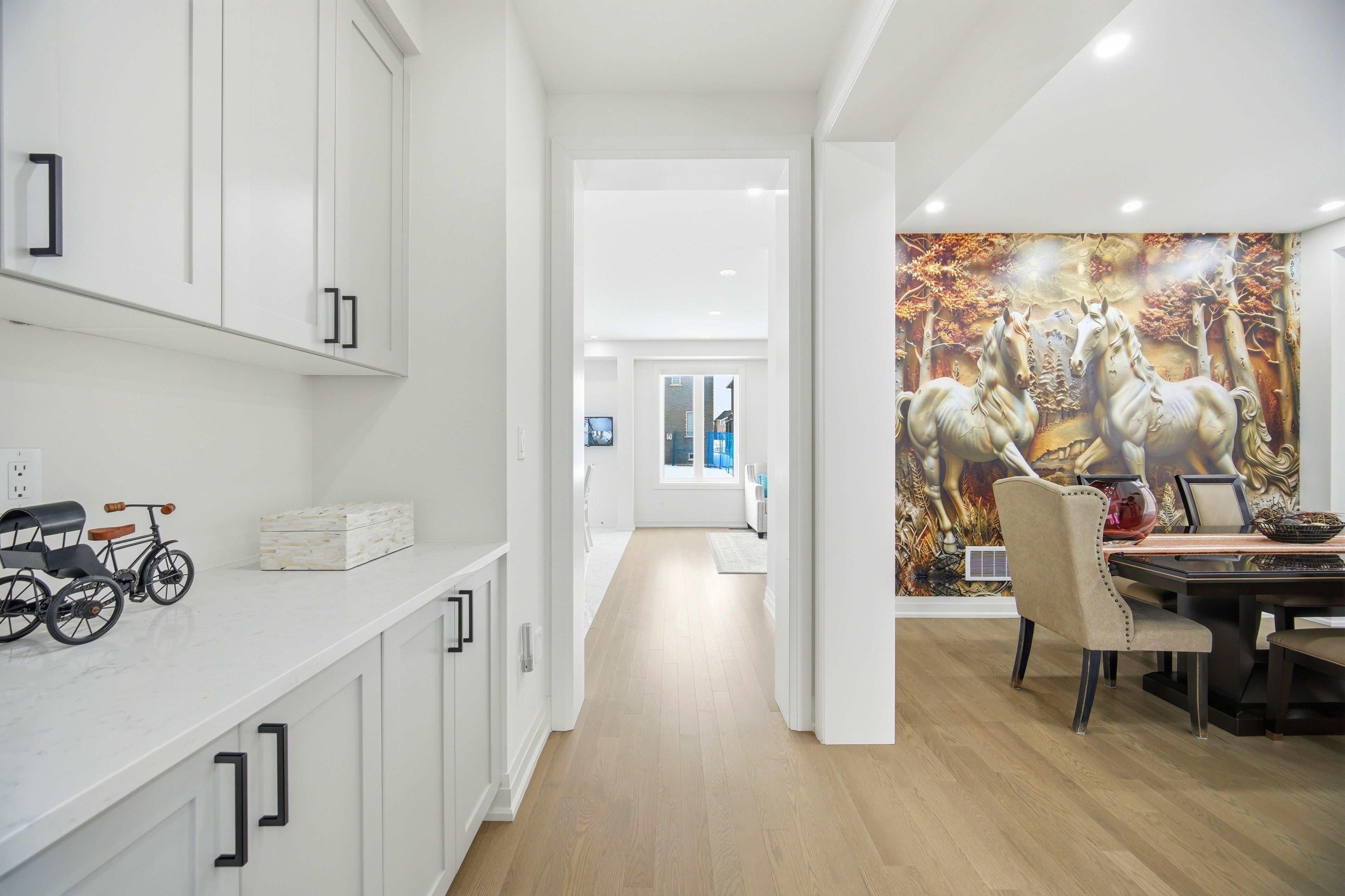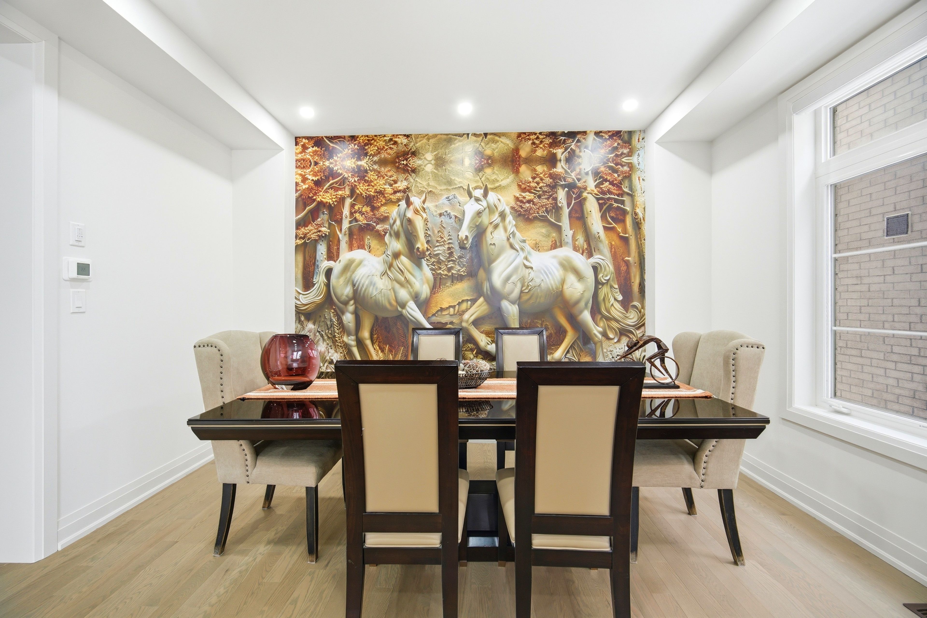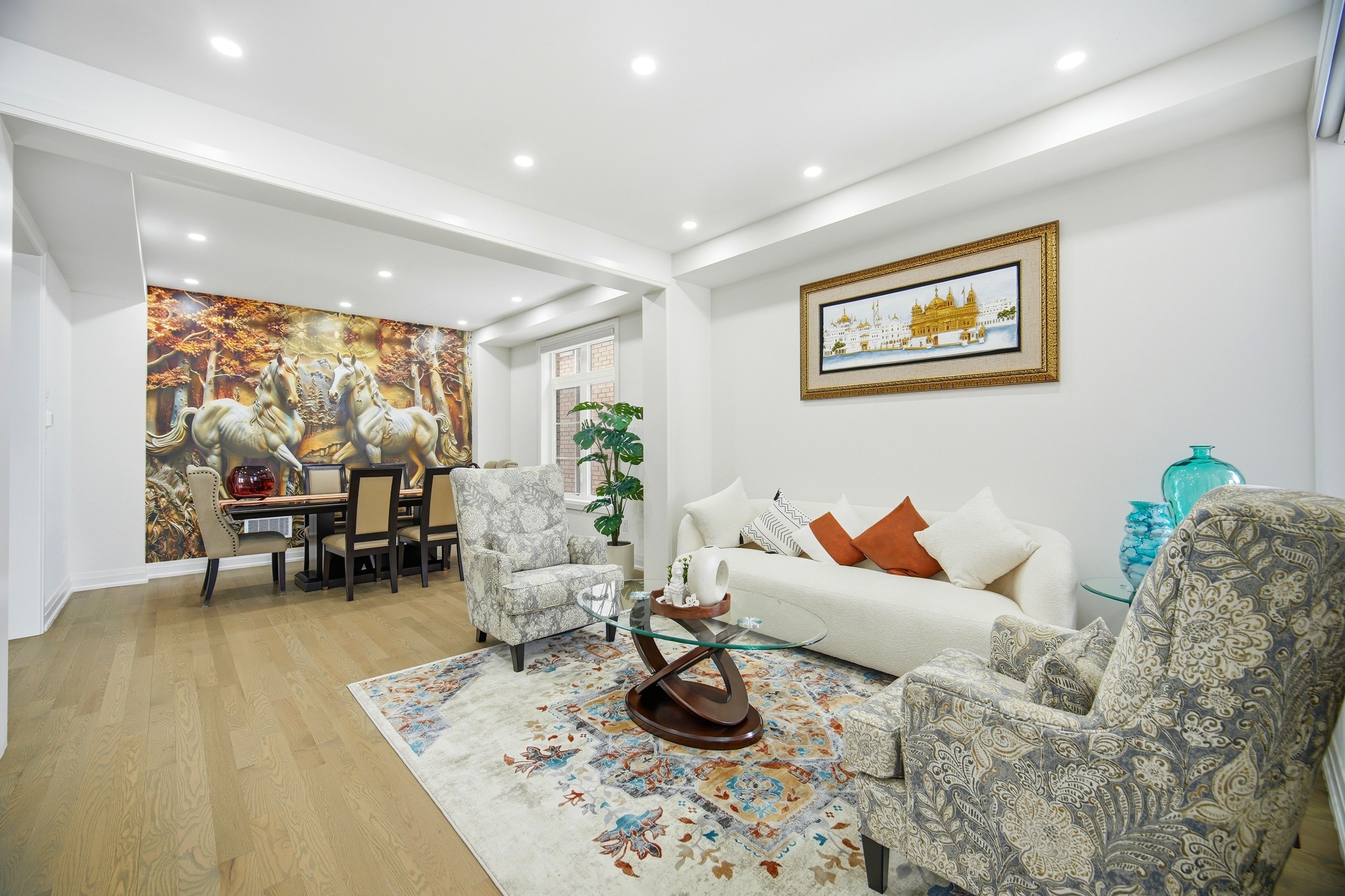 Luxury living in prestigious colgan starts the moment you walk through the grand double doors into this beautifully upgraded home. It features quartz countertops, rich hardwood floors, custom roll-up blinds, pot lights, and 9-foot ceilings on both levels. The bright, open layout includes a welcoming family room with a coffered ceiling and fireplace, flowing into a modern kitchen with a large island that's perfect for entertaining. Upstairs, you'll find two spacious primary bedrooms, including a stunning main suite with a spa-like 6-piece ensuite, upgraded bathrooms, and a modern stand-alone soaking tub, plus convenient second-floor laundry. An upgraded staircase leads to the basement with great future potential, and smart garage door openers add extra convenience-all just steps from woodington lake golf club.