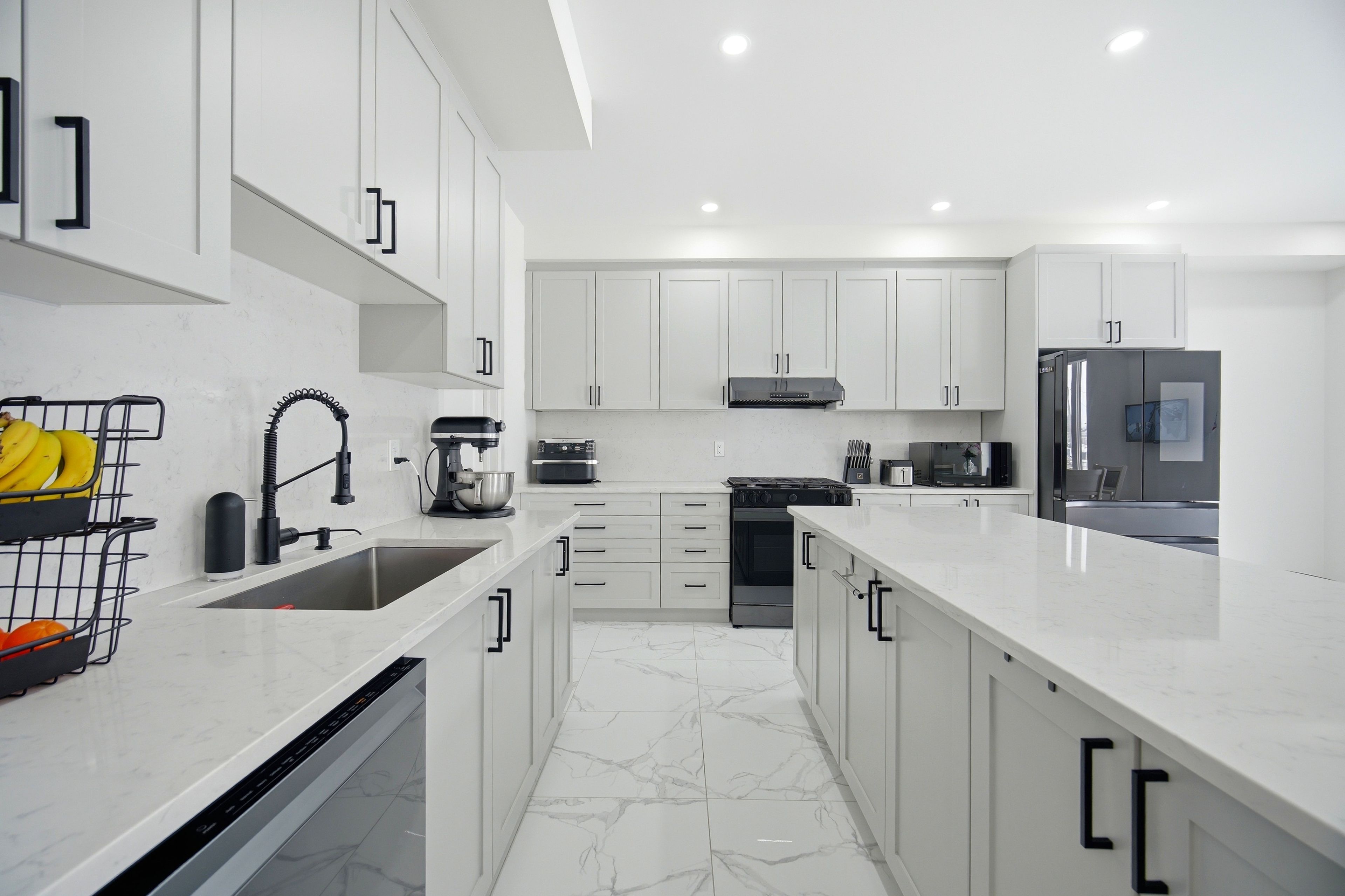 • Upgraded home with impressive quartz countertops and hardwood floors.