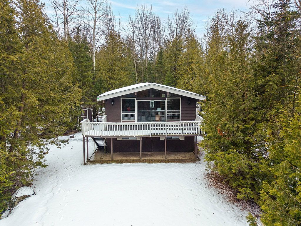Welcome to cameron street - one of thornbury's most coveted addresses. This tree-lined, winding road hugs the shoreline of georgian bay, offering a setting of unmatched charm and beauty. Nestled on one of the largest lots on the street, this property is surrounded by mature trees and lush gardens, providing a rare sense of privacy and tranquility. Step outside and you're just moments from a georgian bay access point, where you can listen to the waves rolling against the shore or launch your paddle board into the crystal-clear water. Start your mornings with coffee on the elevated deck, watching the sun rise through the trees, and spend your afternoons walking or biking the georgian trail into downtown thornbury to enjoy boutique shops, cafés, and restaurants. Pick up dinner at goldsmiths, then return home to savour the serenity of cameron street living. Inside, the home is designed with a reverse floor plan to maximize natural light and views. The main level offers three comfortable bedrooms that share a well-appointed bathroom, with laundry thoughtfully placed on this floor for convenience. Upstairs, the heart of the home features soaring vaulted ceilings, warm wood accents, and an open-concept living and dining space that invites connection. The well-equipped kitchen offers generous prep space and access to a deck thats perfect for grilling or entertaining. A second deck sits among the trees, creating an intimate retreat for unwinding. After a day of adventure, sink into the hot tub and watch the stars light up the night sky. Two outdoor sheds provide ample storage for paddle boards, bikes, and all your four-season toys. This isn't just a home - its a lifestyle. A place where sunrises, shoreline adventures, and small-town charm come together in one perfect package.
