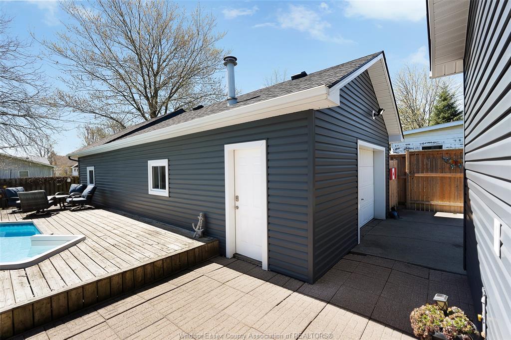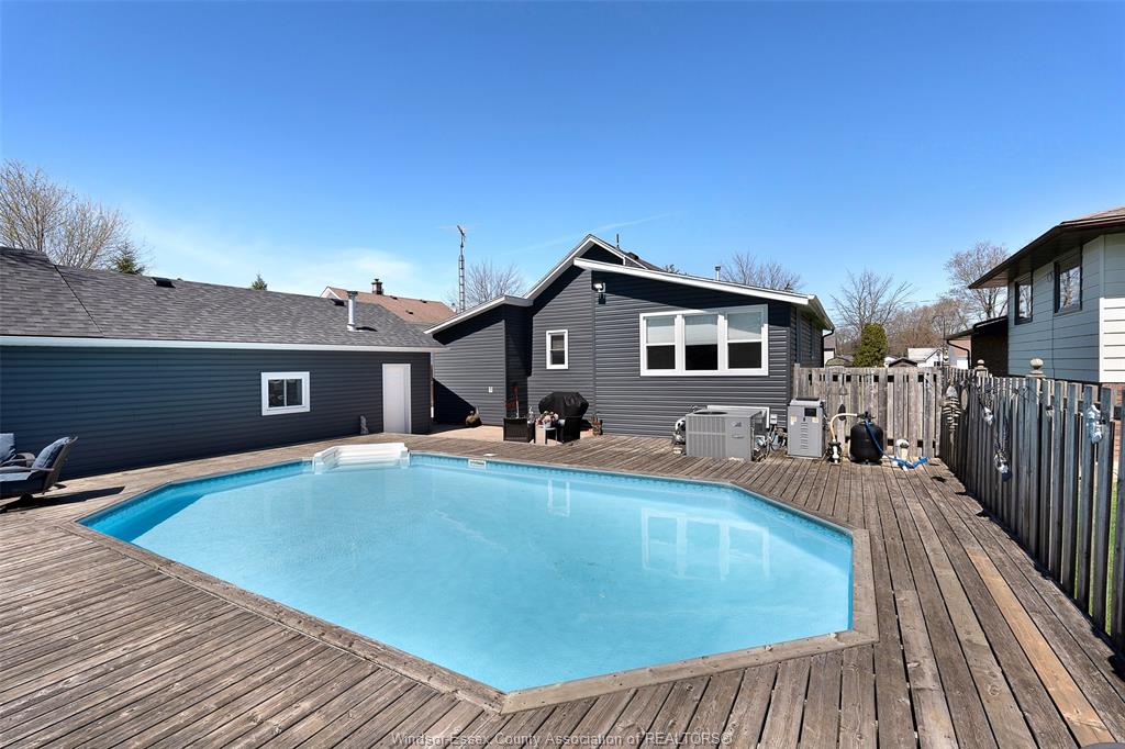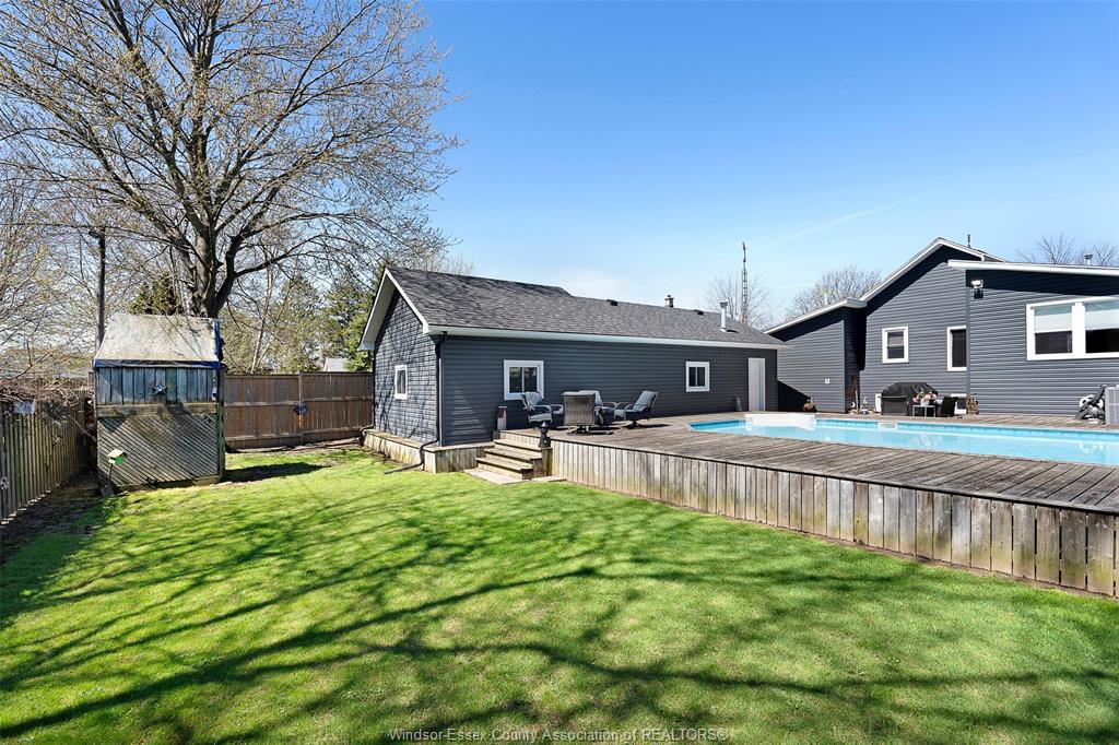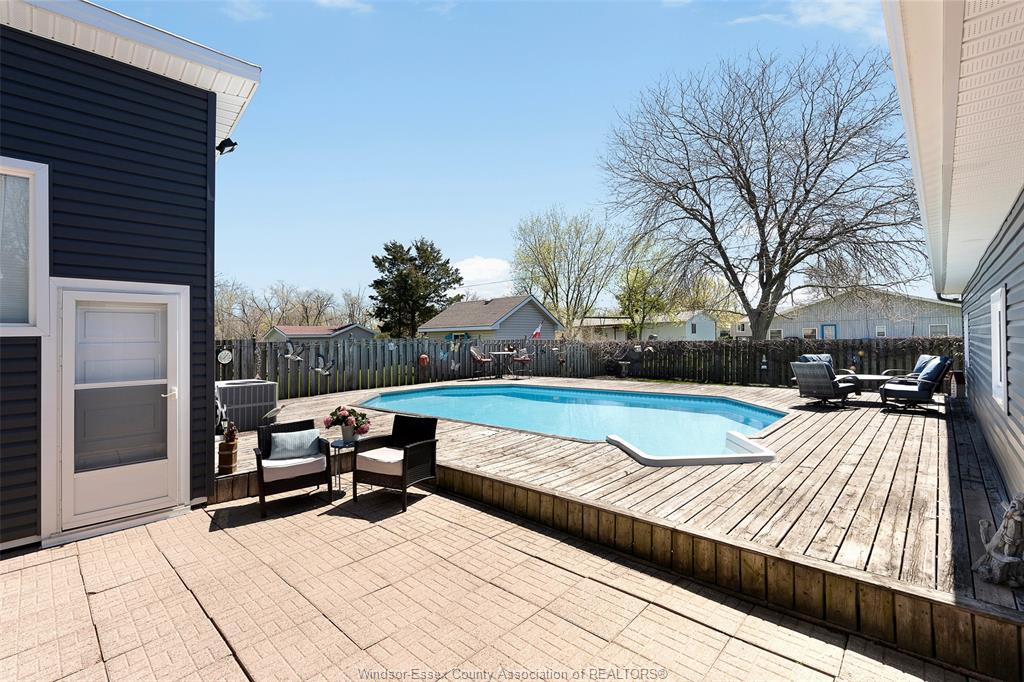 This beautiful bungalow offers the perfect blend of comfort, function, & lifestyle. The bright, functional layout is ideal for families, first-time buyers, or those looking to downsize without compromise. A private backyard retreat featuring a fully fenced yard, large deck, & in-ground pool perfect for entertaining or relaxing all summer long. Main floor features an open concept feel as soon as you walk in, to a bright living area, kitchen, dining room, 3 bedrooms, 1 bathroom & a formal sitting room off the back. A standout feature is the massive 24x42 detached heated garage, ideal for a workshop, storage, or hobby space. Major updates include furnace & a/c (2023), roof (2020), siding & covered front porch (2024), & a waterproofed basement for added peace of mind. Located within walking distance to parks, amenities, & just minutes from wheatley provincial park, walking trails & lake erie, this home offers small-town charm w/ everyday convenience.