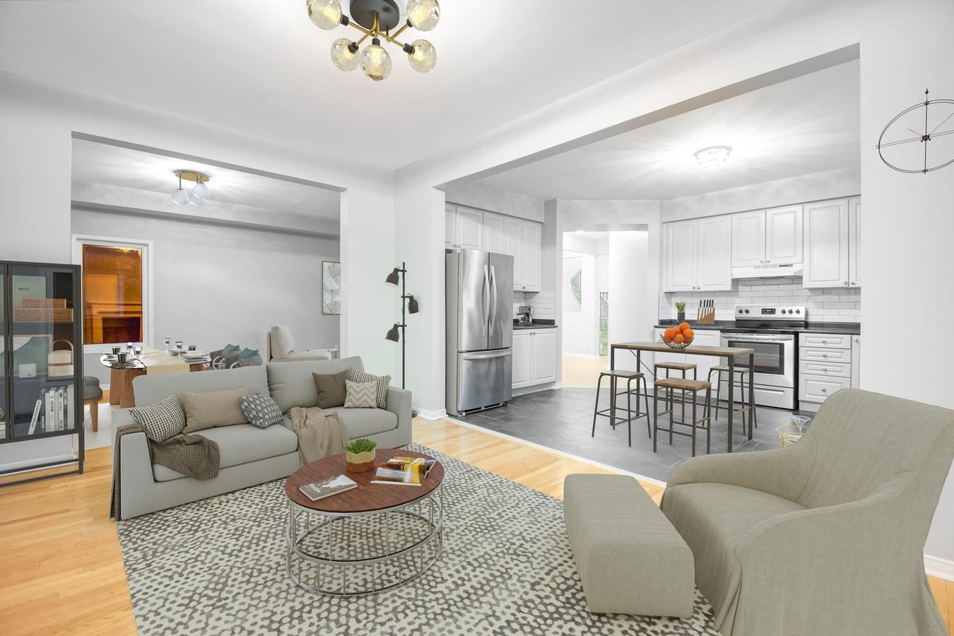 • 9-ft ceilings and modern upgrades create a comfortable living space.