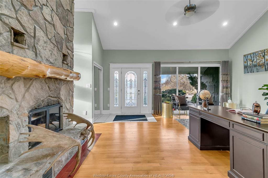 An ideal place to enjoy urban pastoral life in the city with rivers, ponds, wildlife, and other things that belong to nature. Over 3. 5 acres of naturally lush grounds right in belle river! Property known as duck creek, this home backs onto a pond & beautiful natural wonderland. Two-storey open concept home w/large great room with soaring ceiling, spacious kitchen w/eat-in & bar, windows surround the sunroom. Warm up to a 2 sided stone natural fireplace! 2nd floor features extra large master w/ walk-in closet & 5 pc master bath. Walk out from master bedroom & relax on nook overlooking the sun room & bonus spiral stairs! Additional 3 bedrooms on 2nd floor w/one having a bonus study or possible 5th bedroom. Laundry & mud room just off garage entry. Many updates includes: crawl space floor leveling and moisture protection, furnace and ac in 2020, owned tankless water heater in 2024,exterior wall pu stone installation in 2025. Great location, close to all amenities and schools
