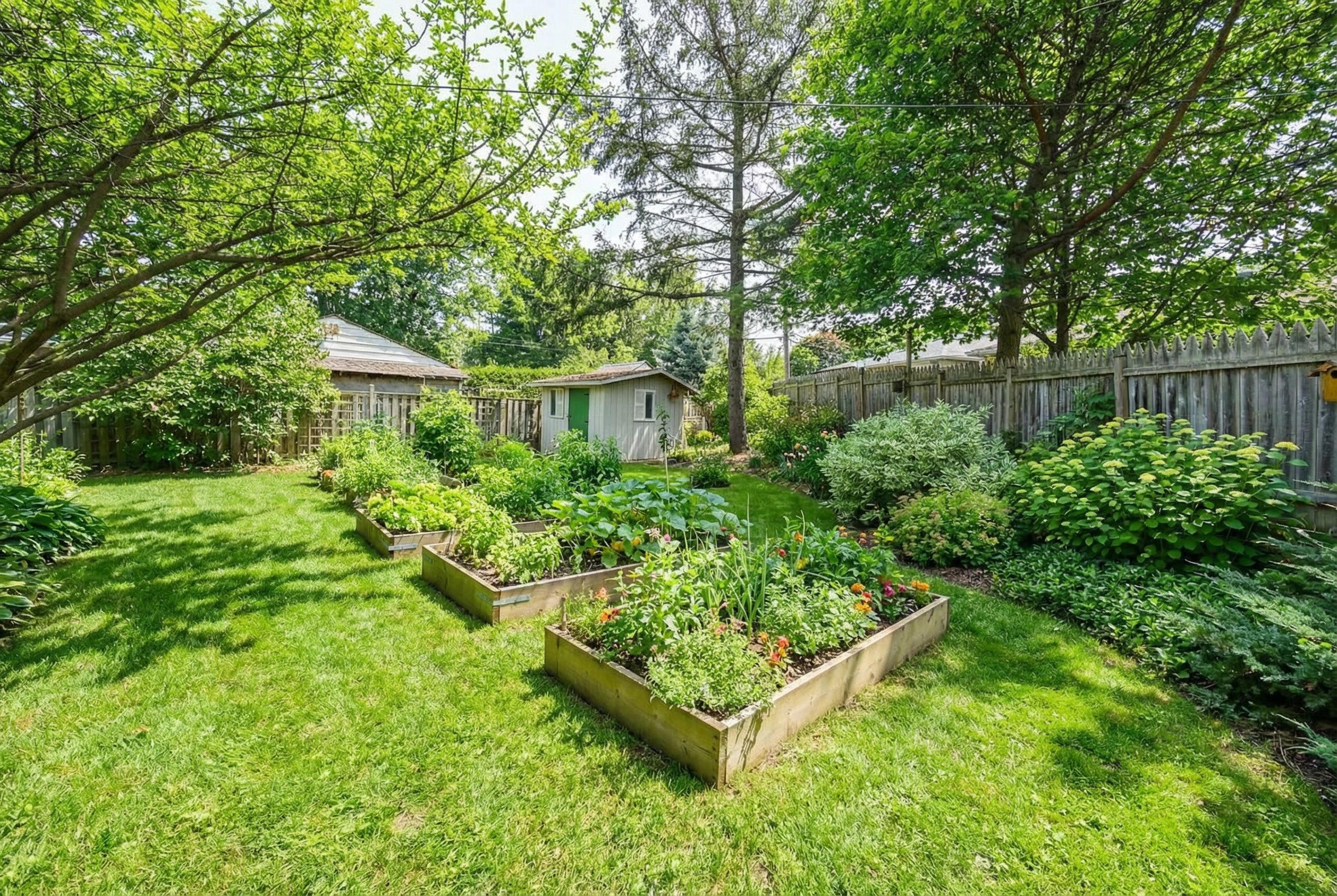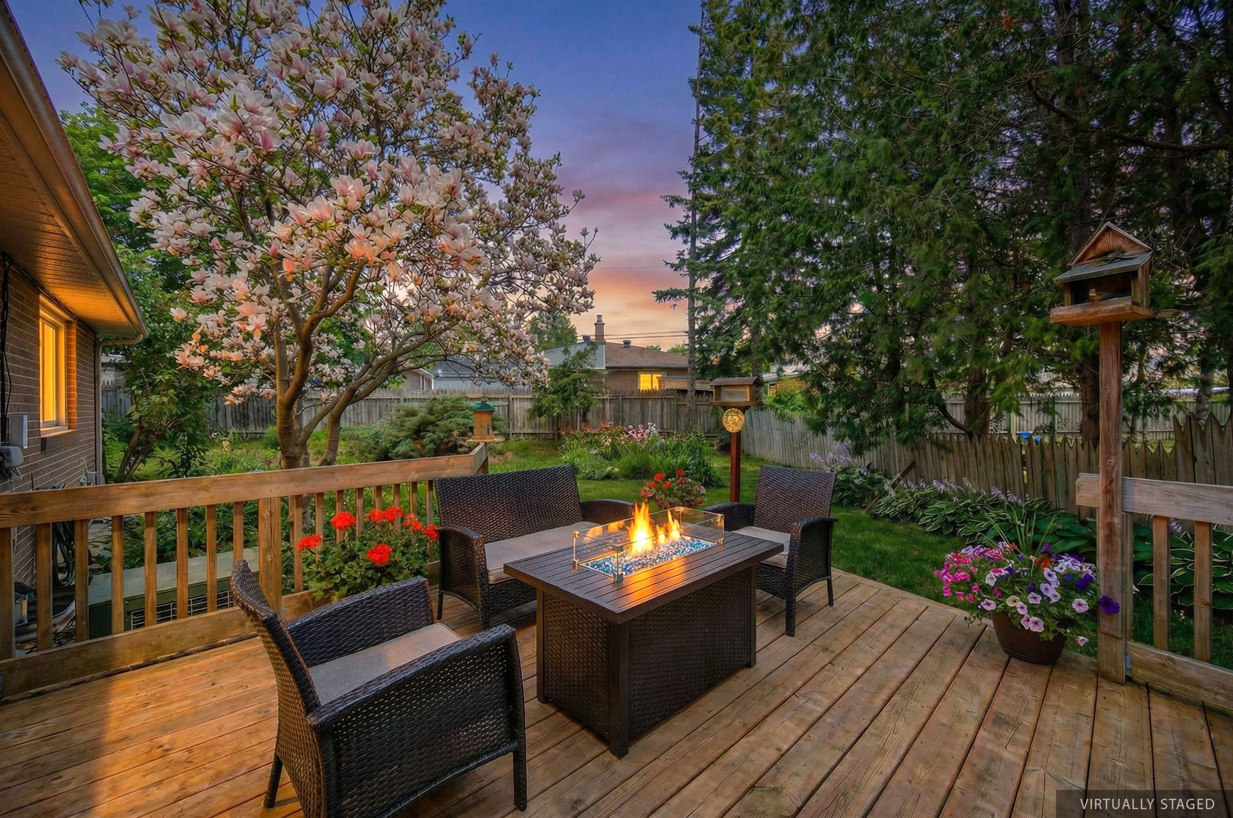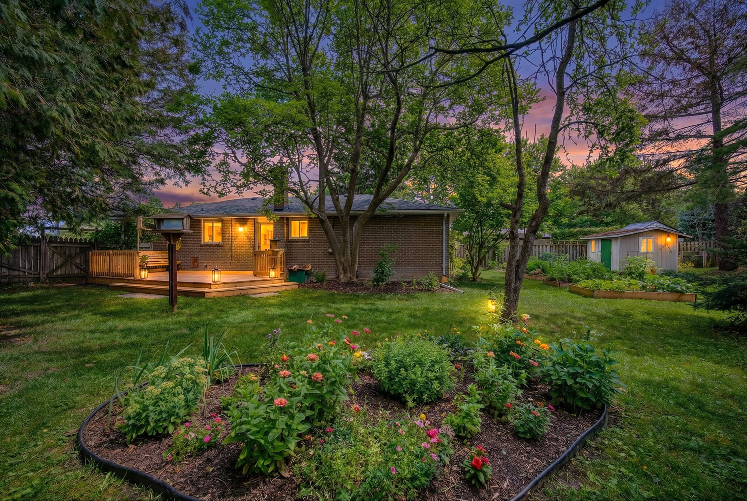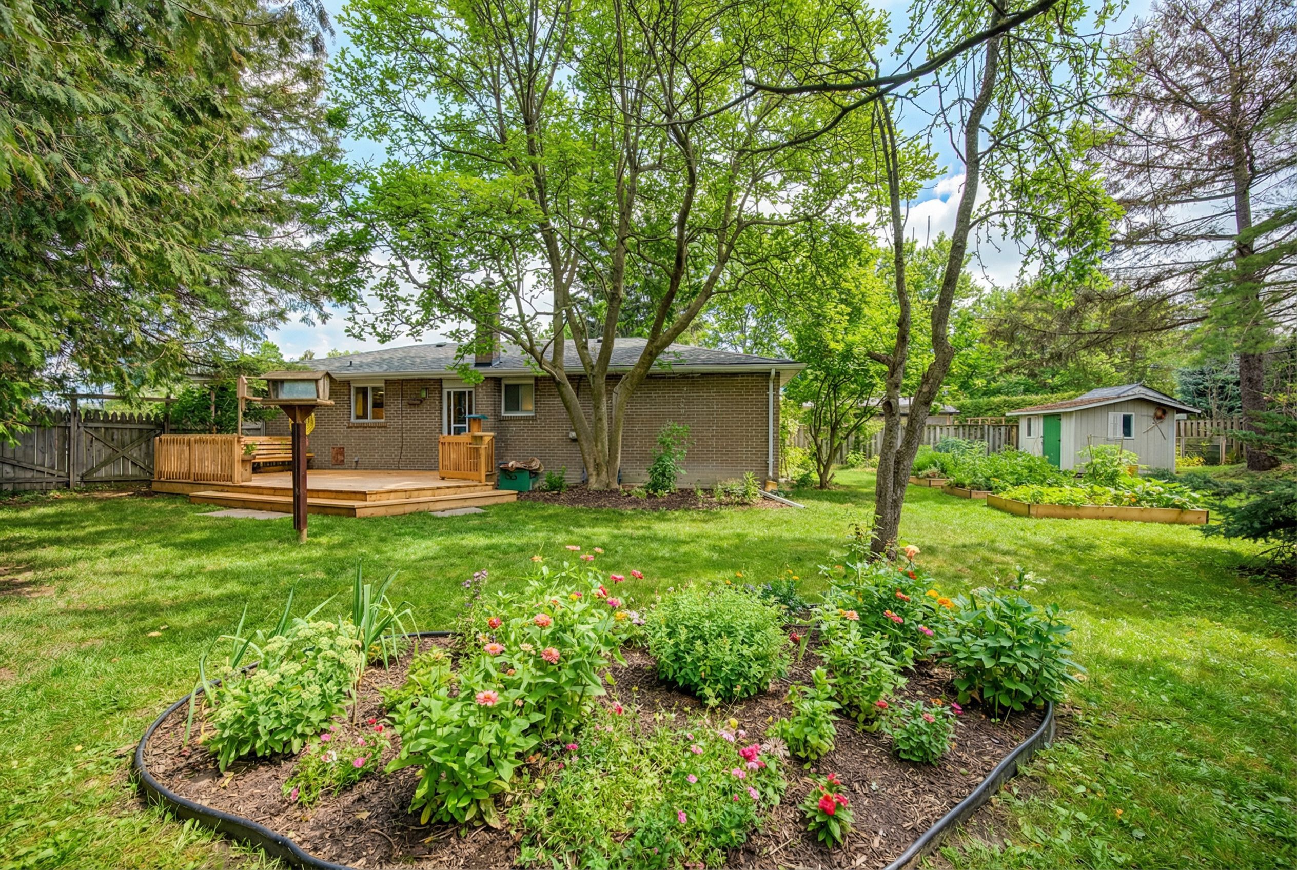 • Generous pie-shaped lot with privacy and mature landscaping.