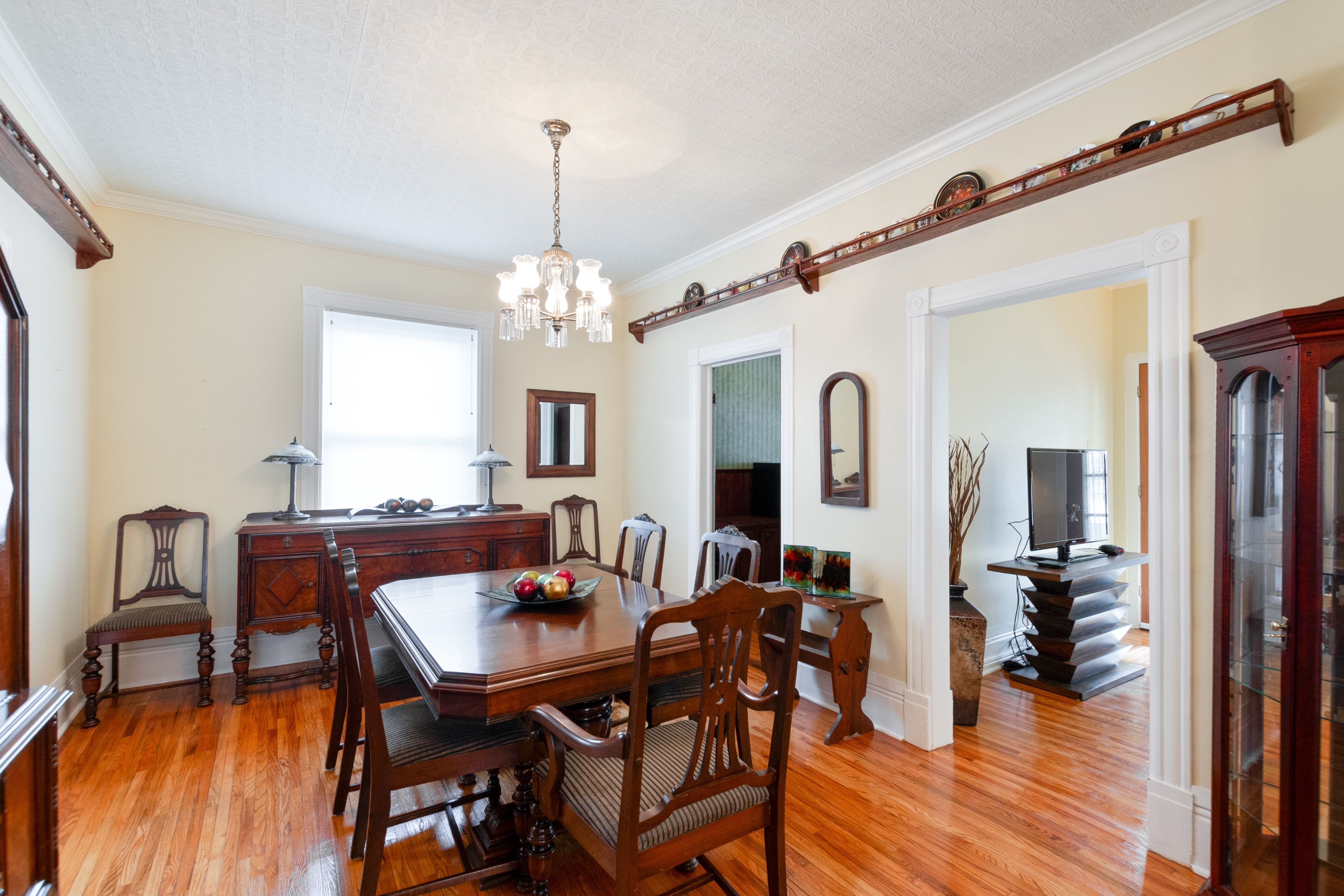 • Formal dining room perfect for hosting family dinners and gatherings.