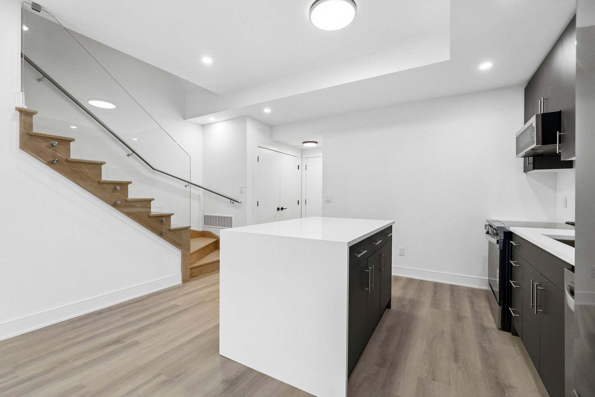 • Open-concept living with high ceilings and durable luxury vinyl plank flooring.