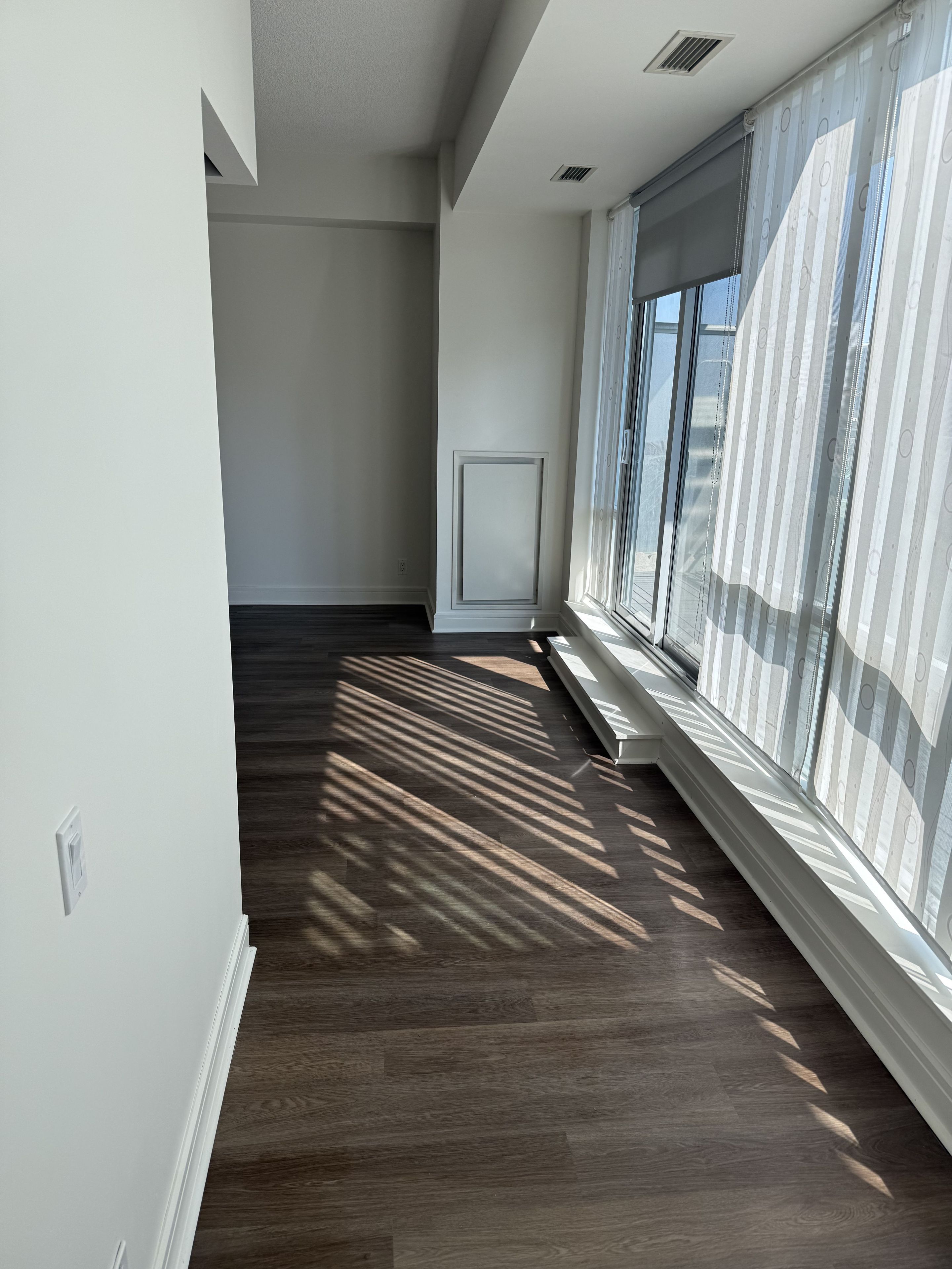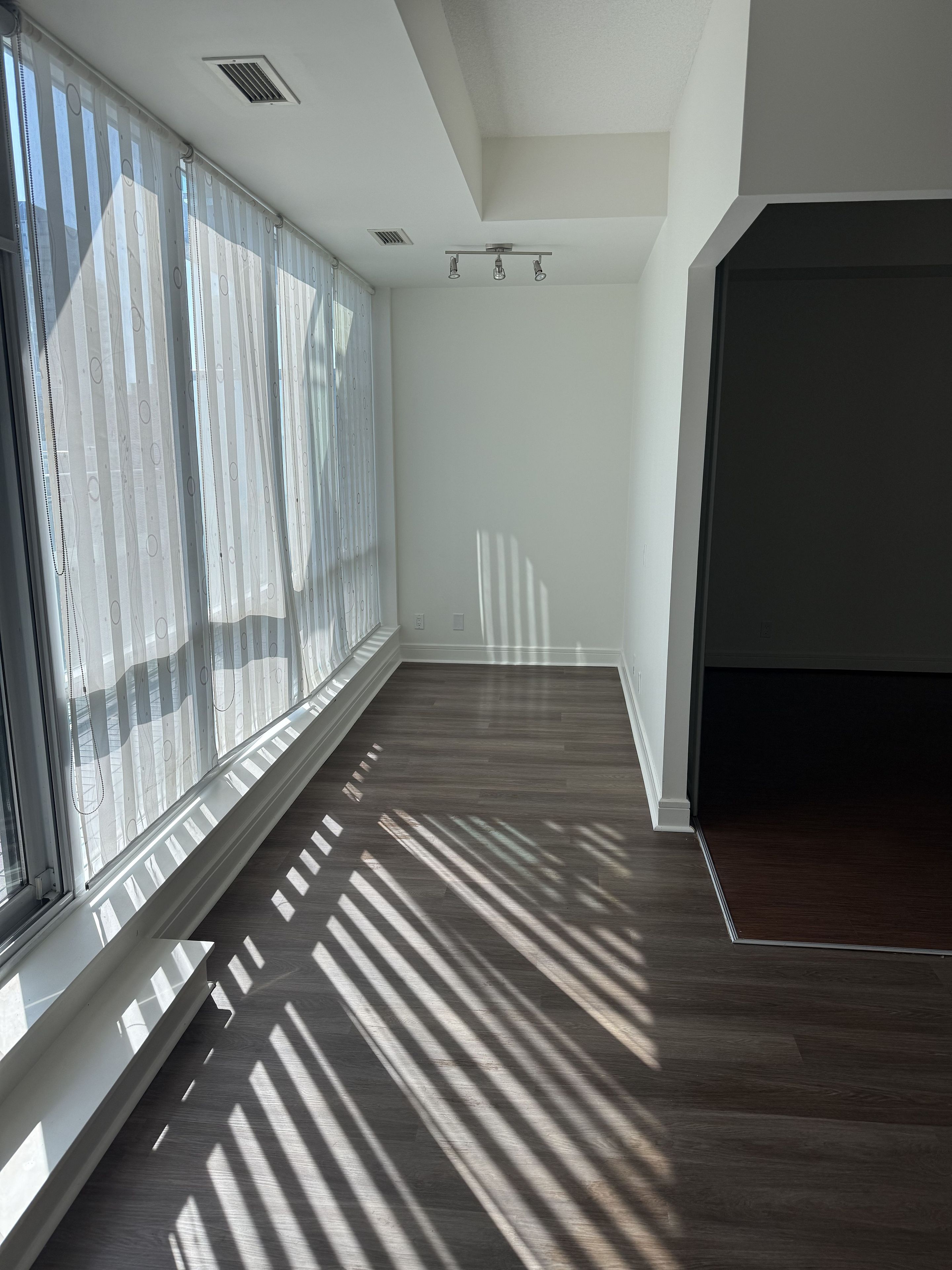 Welcome to the vu - a bright and well-proportioned 1+1 bedroom suite offering an uncommon amount of space for downtown living. With high ceilings, floor-to-ceiling windows, and an oversized east-facing balcony, the unit feels open and comfortable, with plenty of natural light throughout the day. The layout is practical and flexible, featuring a separate den that works well as a home office or additional living space, along with a generously sized bedroom. New flooring has been installed throughout the living, kitchen, dining area, and den, adding a clean, updated feel to the space. The kitchen is equipped with full-size stainless steel appliances, and the finishes are modern and easy to live with. The building is well managed and offers a strong range of amenities, including multiple fitness spaces, yoga and pilates studios, party rooms, landscaped outdoor areas, and visitor parking. Set in the st. Lawrence market neighbourhood, the location puts parks, transit, dining, and the waterfront all within easy reach, along with convenient access in and out of the downtown core. It's a comfortable, functional home for day-to-day city living.