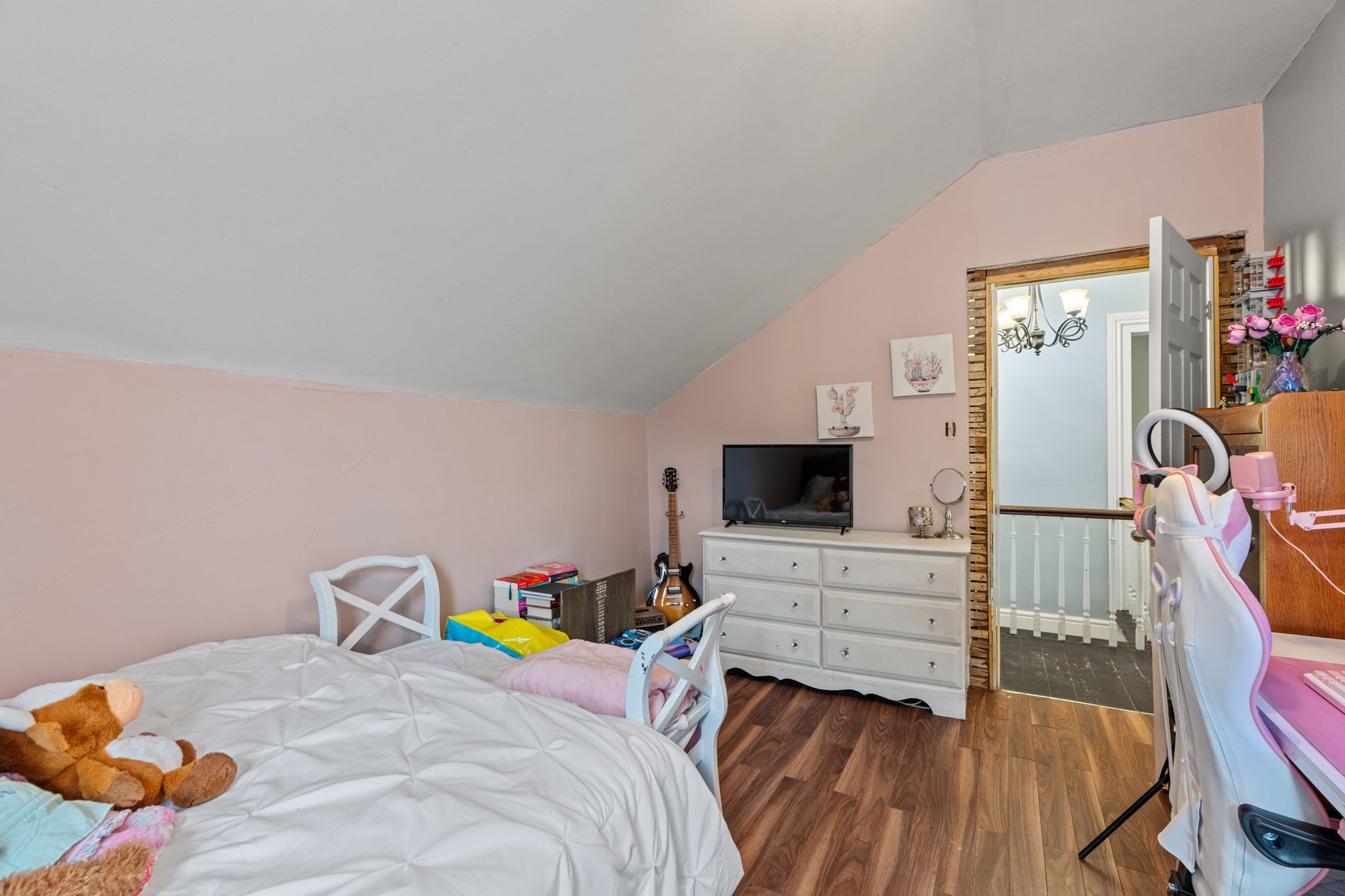 Lots of potential! Great family sized home offering plenty of space with total of 5 good sized rooms. The main floor has a large living room with the option to use the attached room as a bedroom or family room to suit your needs. The large kitchen/dining room area has a breakfast bar and has open style concept. The upper level has 4 bedrooms plus a full bathroom. Large fenced yard.