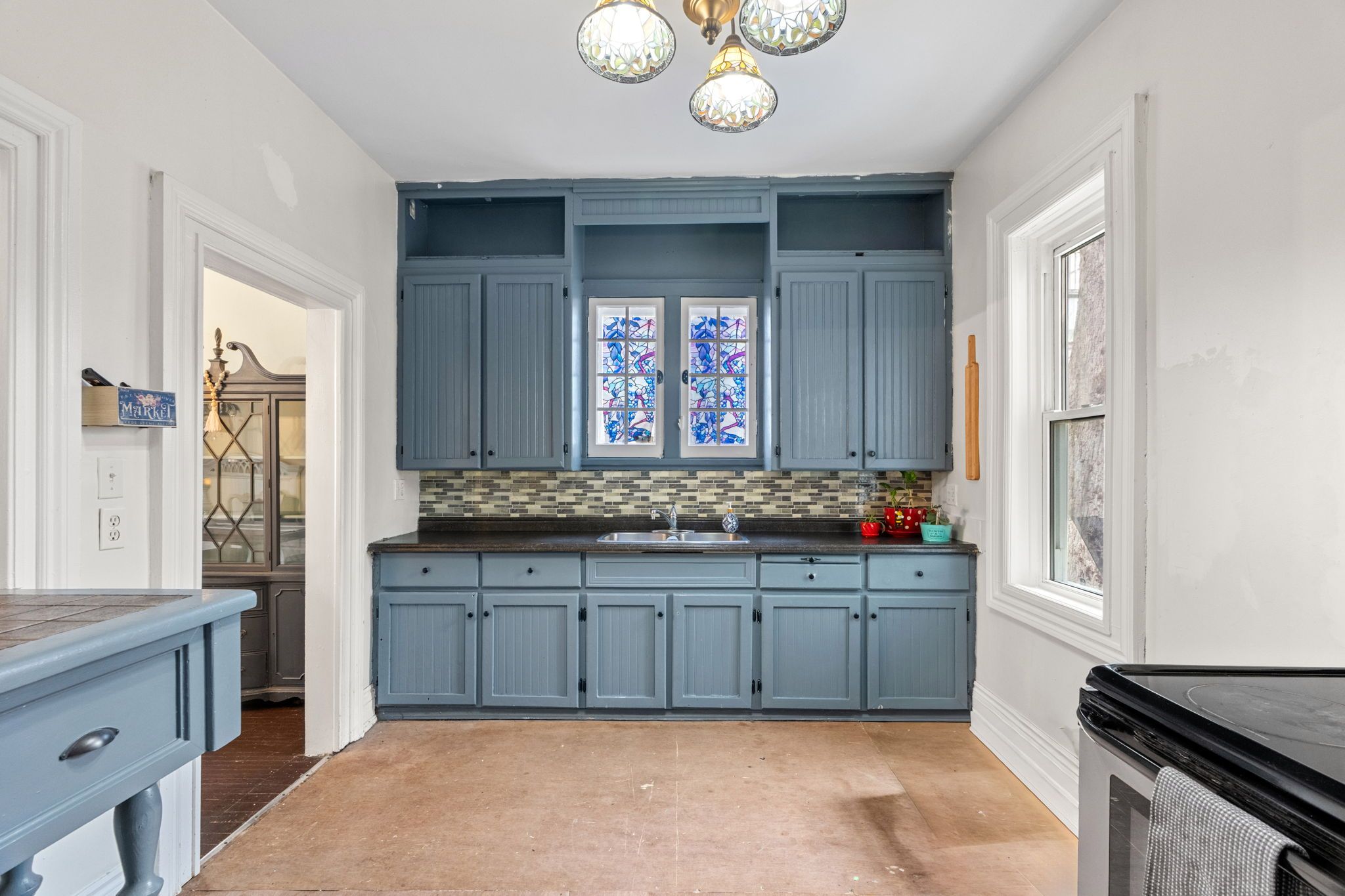 • Open concept kitchen and dining area featuring a breakfast bar.