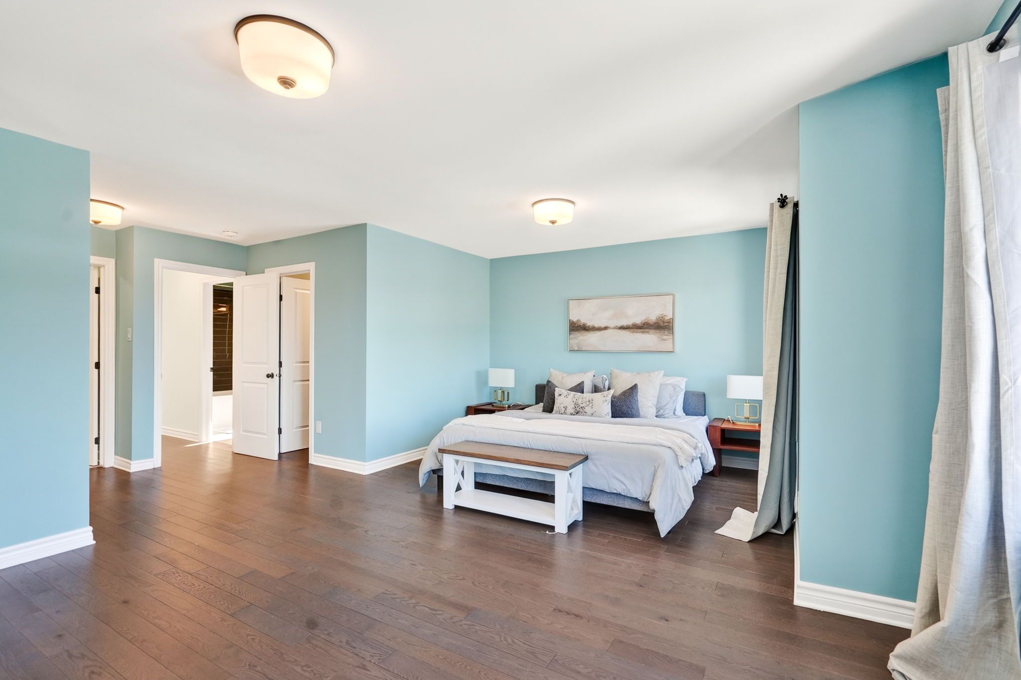 • Impressive primary retreat with two walk-in closets and ensuite bathroom.