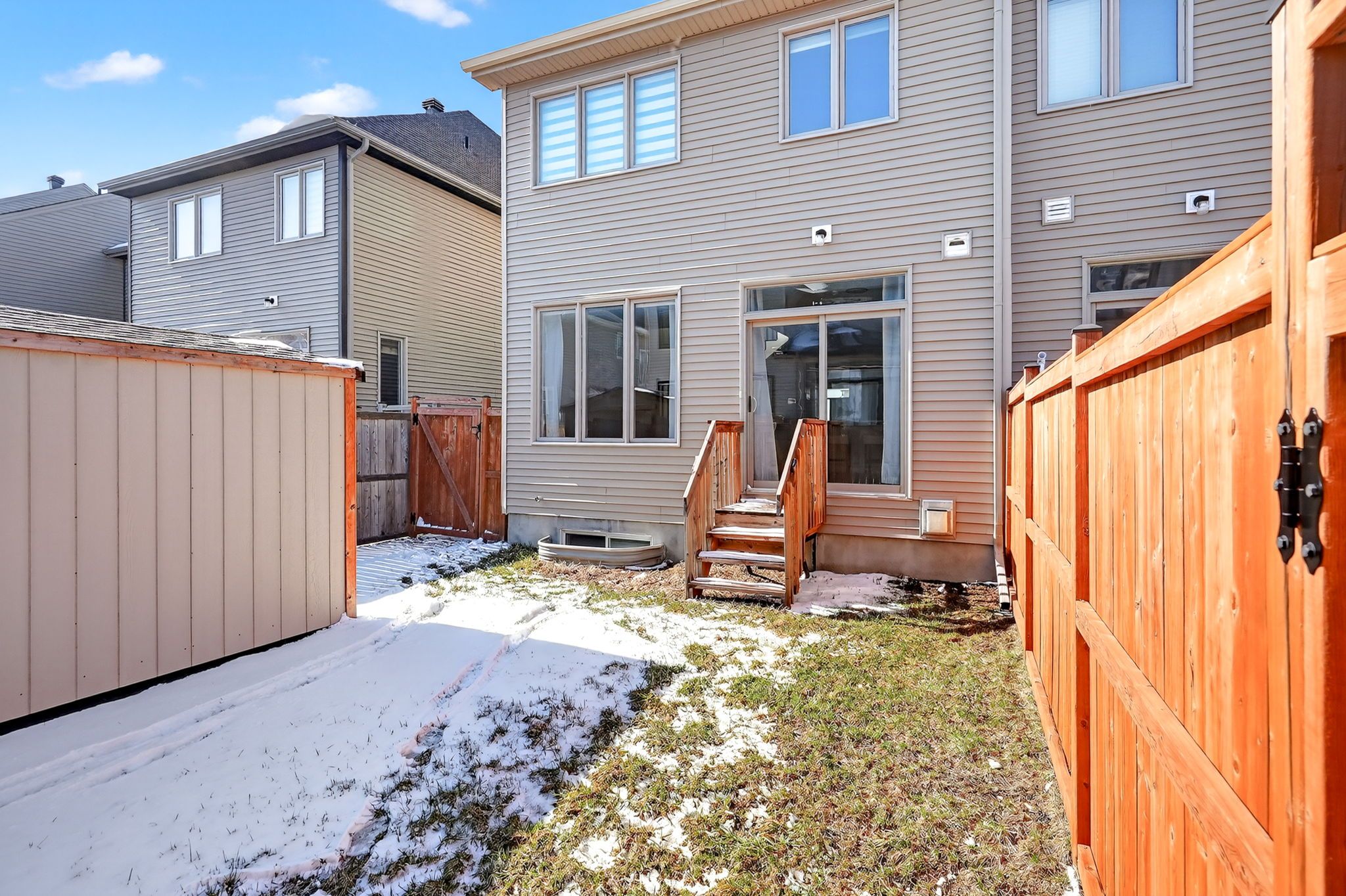 Open house sunday april 12, 2026 from 2 pm - 4 pm. Welcome to 112 jardiniere street! This bright and spacious end-unit townhouse offers approximately 2,171 sq. Ft. Of thoughtfully designed living space, combining modern finishes, functional layout, and exceptional natural light throughout. A beautifully upgraded ambrosia model by tartan homes, ideally located in the heart of family-friendly stittsville. The open-concept main level features 9-ft ceilings, hardwood flooring, and additional side windows unique to end units, creating an airy and welcoming atmosphere. The upgraded kitchen is both stylish and practical, complete with premium cabinetry and counters, stainless steel appliances, a large island with breakfast bar seating, and a generous walk-in pantry-perfect for everyday living and entertaining. Upstairs, hardwood continues throughout, leading to an impressive primary retreat with 2 walk-in closets and upgraded ensuite. Two additional well-sized bedrooms share a full bath, while the convenient second-floor laundry makes daily routines effortless. The finished lower level expands your living space with a cozy gas fireplace, large windows for added natural light, and flexible room for a media area, play space, or home office, plus excellent storage or space for a gym! Thoughtful updates throughout the home include a new furnace (2021), fenced backyard (2025), removal of carpets on the stairs and in the basement (2023), and the addition of a backyard shed (2024), adding both comfort and long-term value. Located close to schools, parks, recreation, shopping, transit, and everyday amenities, this move-in ready home offers the perfect blend of comfort, convenience, and community living in one of stittsville's most desirable neighbourhood settings.