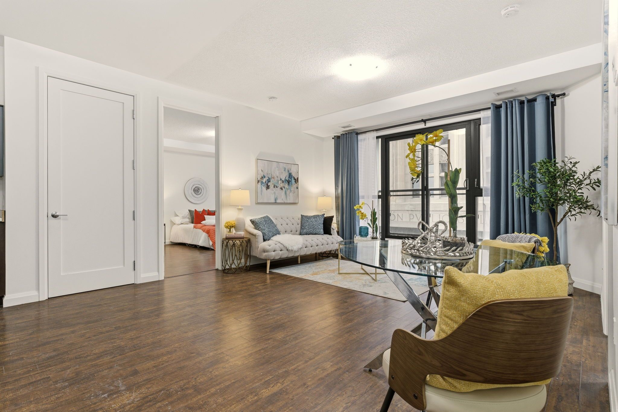• Bright interiors with 9-foot ceilings and floor-to-ceiling windows.