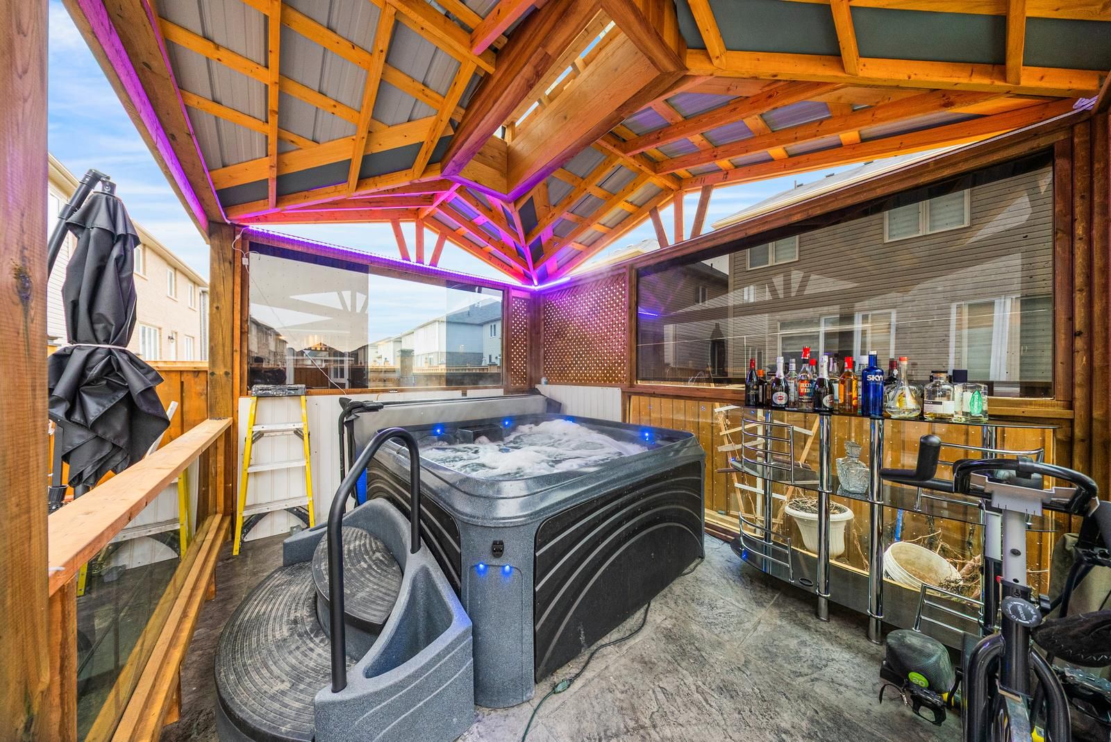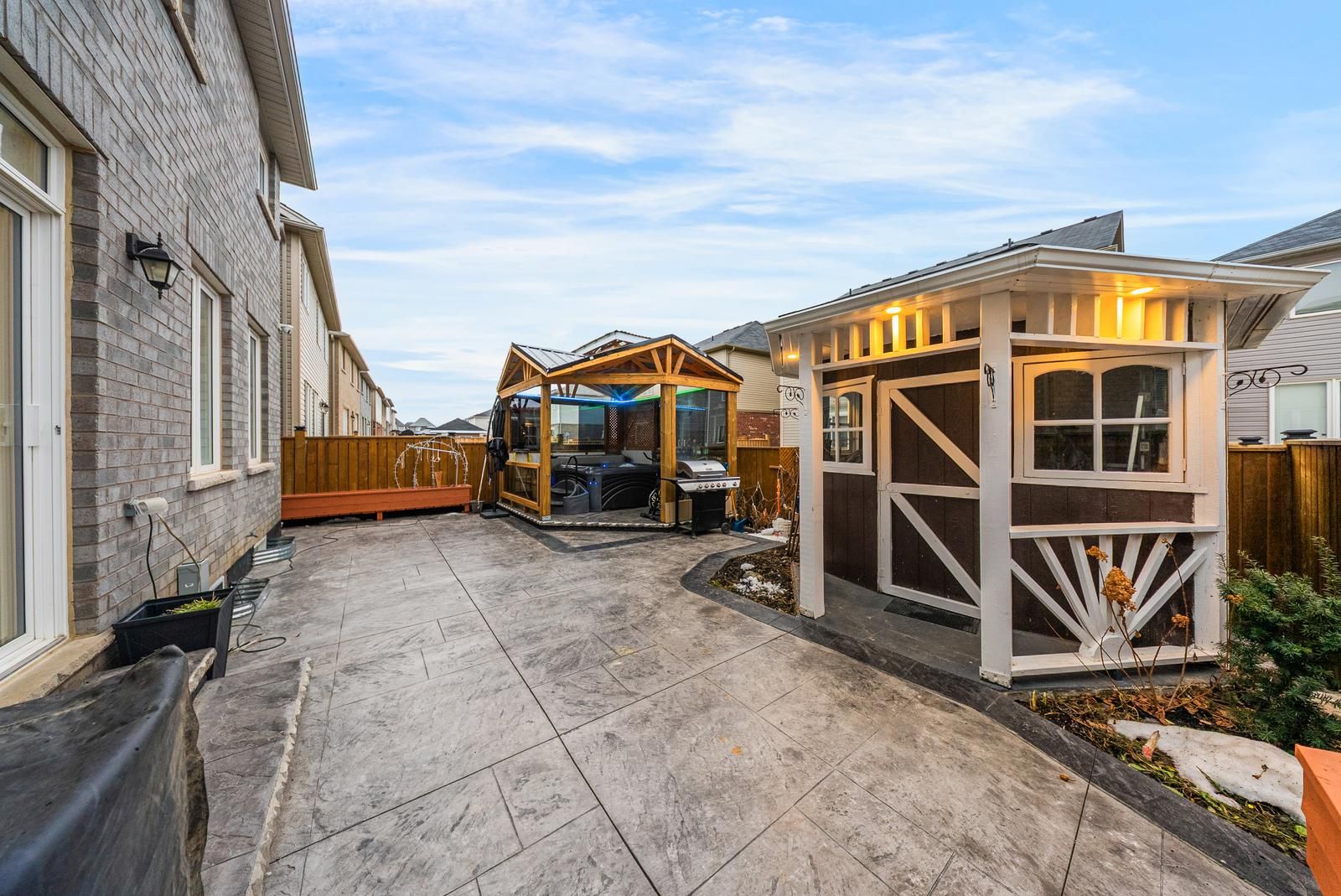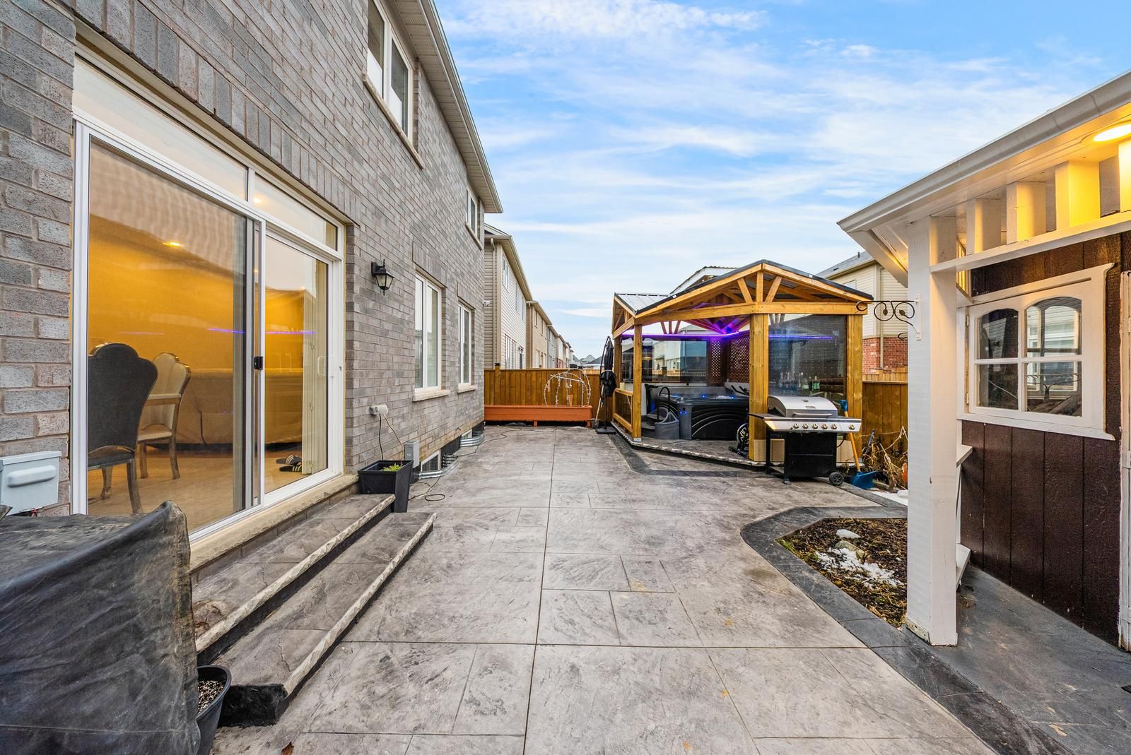 • Private backyard with a hot tub and gazebo for entertaining.
