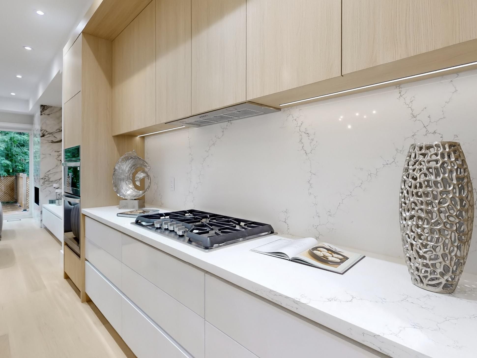 This breathtaking two-story home is perfectly situated in a prime location, offering four spacious bedrooms and 4. 5 elegant bathrooms. Designed for luxury and comfort, it blends modern sophistication with premium finishes throughout. The bright, open-concept main floor is bathed in natural light, accentuated by a stunning floor-to-ceiling window in the living area. The sleek kitchen boasts a central island and high-end stainless steel appliances, while the inviting family room adds warmth and charm. Ideally located near top schools, parks, and just a short drive to the beach, this home also provides quick access to the go station, public transit, and the gardiner expressway for effortless commuting.