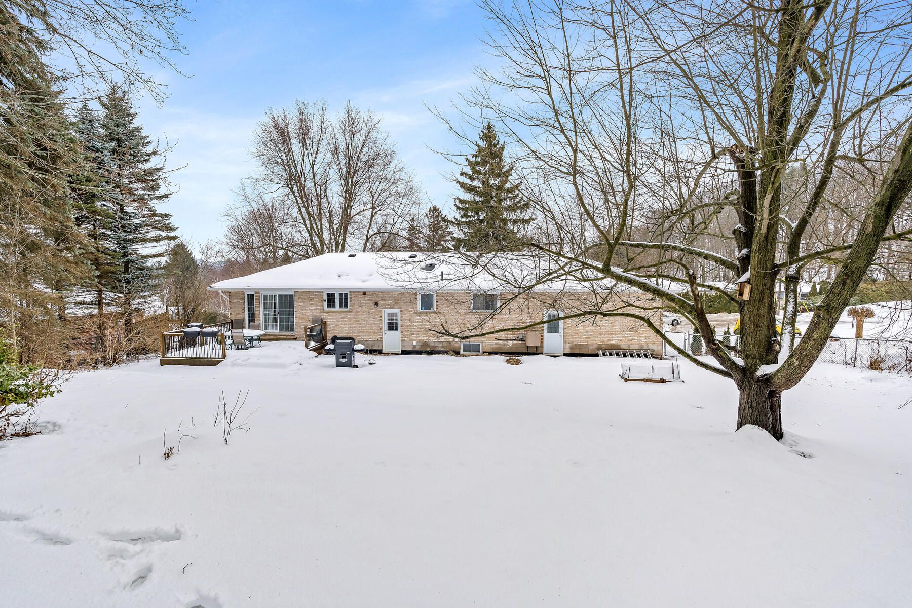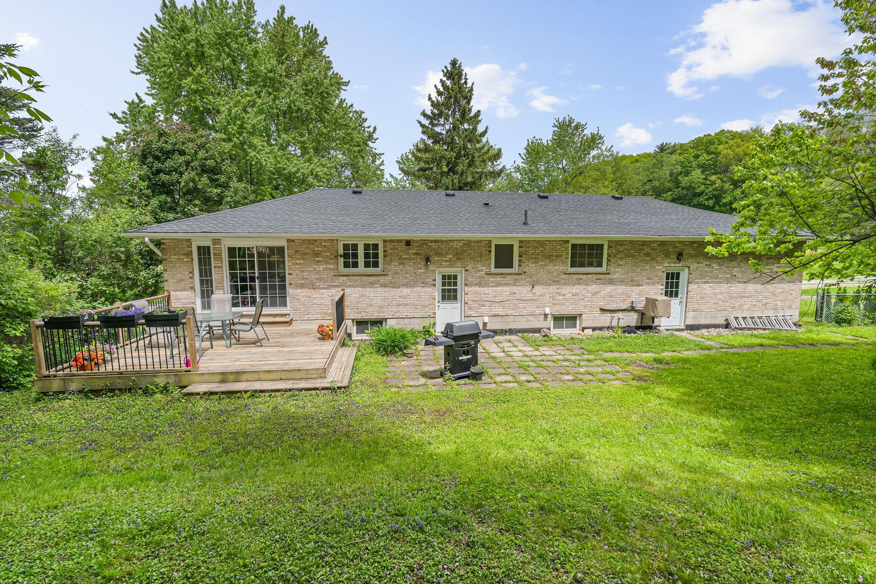 Welcome to 112 park street east, a place that just feels like home. Tucked away on a quiet cul-de-sac & sitting on just over half an acre, this detached bungalow offers space, comfort, & the kind of charm you've been looking for. The current owners have had their journey here, & now it's your turn to start yours in this beautiful home. Step inside to a carpet-free main floor with an open-concept layout that features a bright living room with a large front window, crown moulding, & a cozy fireplace. The space flows into the dining area with a walkout to the private deck, where you can take in expansive views of the secluded backyard that is fully fenced with mature trees. It's a peaceful setting for morning coffee, evening unwinding, or weekend bbqs. Just off the dining area is the freshly updated kitchen, complete with a double sink, custom backsplash, new cabinet doors, s/s appliances, and new flooring, offering plenty of room to cook and connect. On the main floor, you'll find three bedrooms, each with its own closet & filled with natural light. The newly finished lower level offers even more space to grow, gather, or simply enjoy luxury vinyl flooring, pot lights, & a second fireplace, creating an inviting atmosphere, while the layout includes space for a rec room, home gym, office,& a guest suite, whatever suits your lifestyle. A modern 3-piece bathroom, a finished laundry room, & a separate walk-up entrance to the backyard add both convenience & flexibility, making it a great option for extended family or in-law living with privacy & independence. A double-car garage & six driveway spots mean there's always room for family &friends, & the location puts you minutes from everything in the highly sought after community of glen williams has to offer, including local shops, scenic trails, the georgetown golf club, parks, the georgetown go station, & schools. This is more than just a house. It's a place to put down roots, make memories, & truly feel at home.