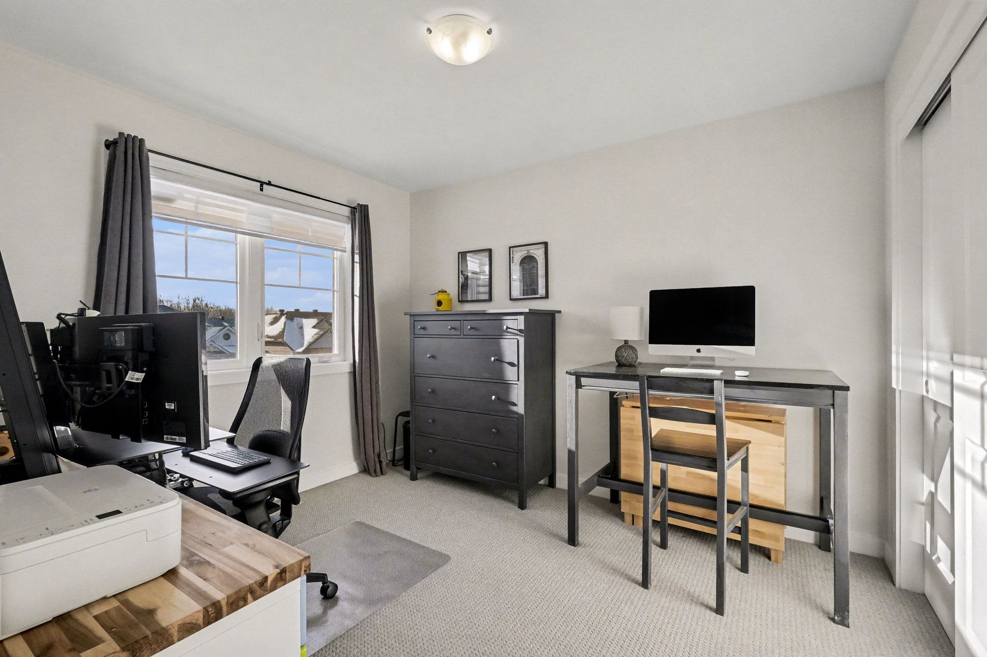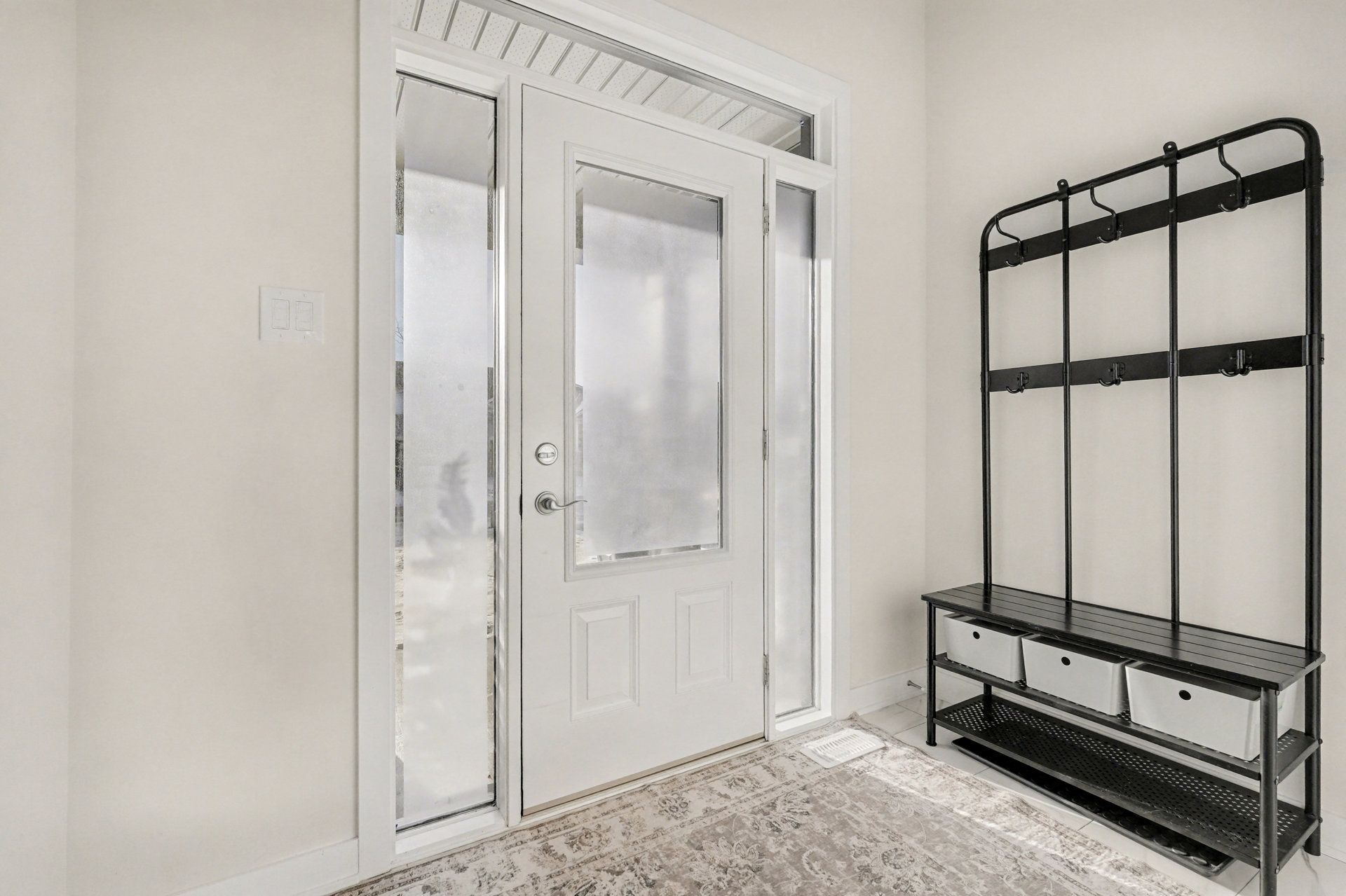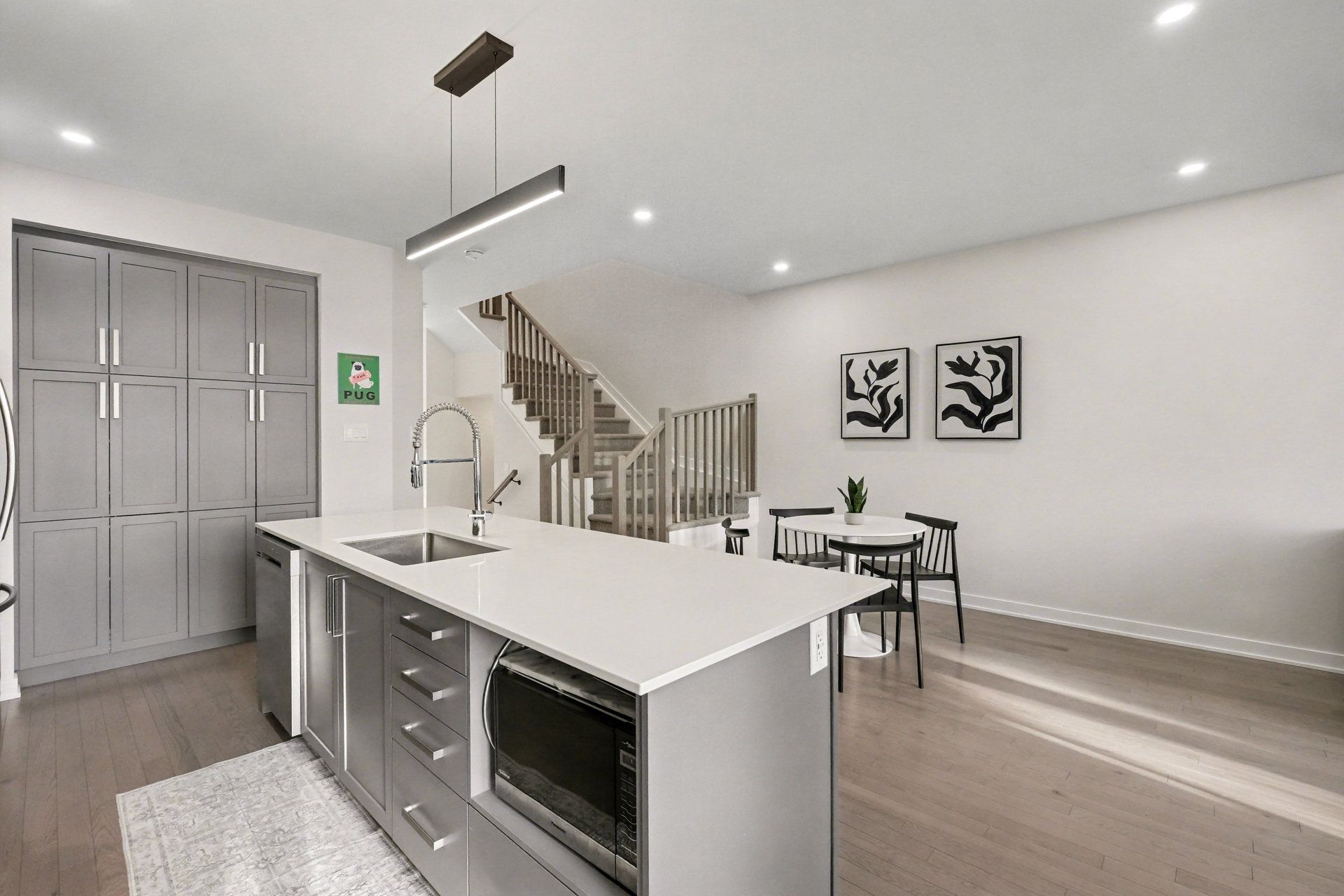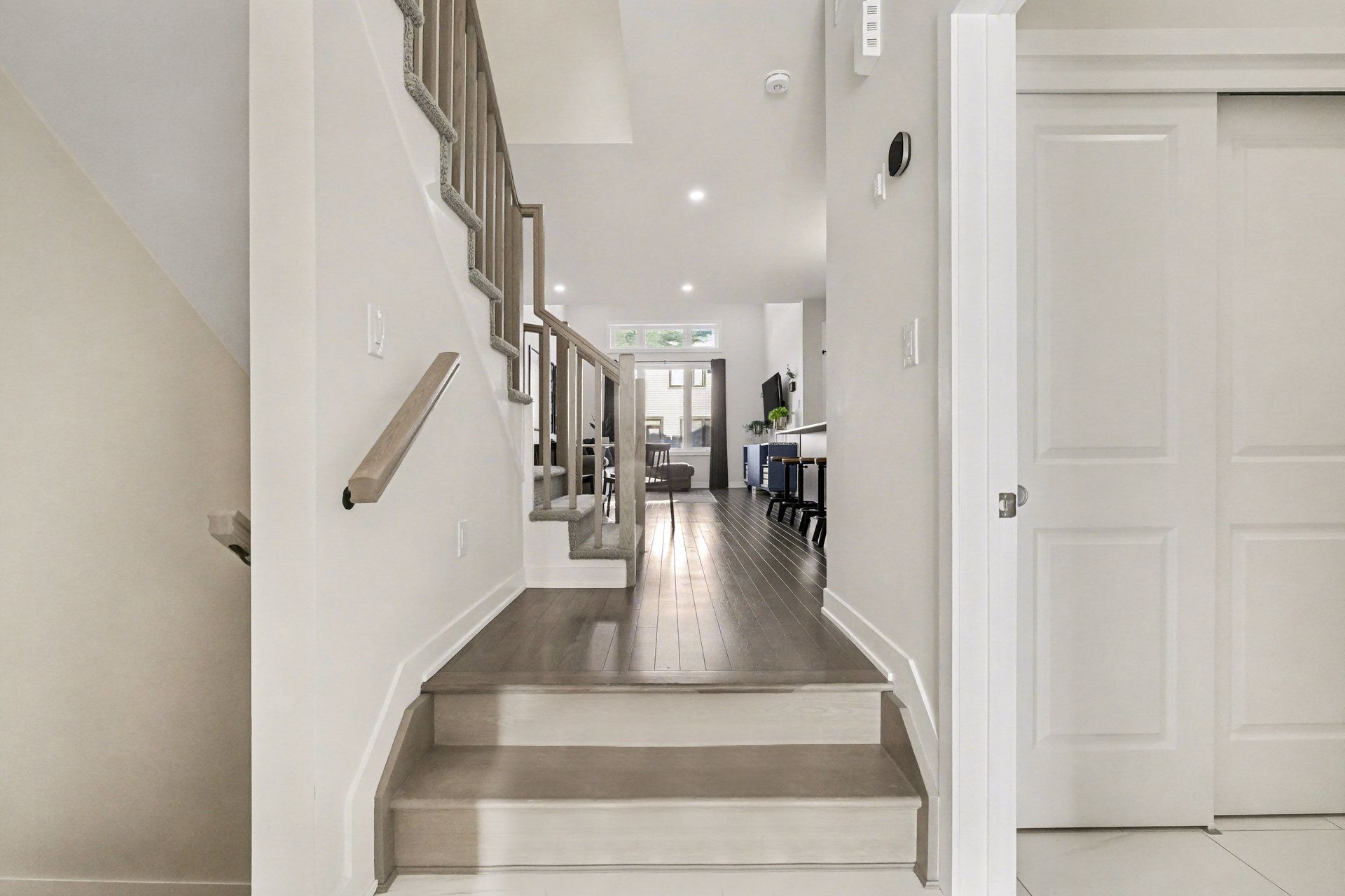 **open house sunday december 14th from 2:00pm-4:00pm** introducing this spectacular eq homes townhome in the sought-after equinelle golf course community! Discover this beautifully crafted & well maintained 3 bedroom, 4 bathroom townhome in highly desirable equinelle! From the spacious foyer, you will immediately notice the care and attention given to every detail. The main level features an open-concept layout with hardwood floors and a bright, airy living space accented by large windows and an extended ceiling height that enhances natural light throughout the day. The kitchen is complete with a generous island, stainless steel appliances, ample cabinetry, and a clean white tile backsplash, creating both a functional workspace and an inviting gathering area for guests! Upstairs, the primary bedroom provides a peaceful escape, offering a walk-in closet and a spa-like four piece ensuite with a standing glass shower and double vanity. Two additional bedrooms are nicely sized and share a modern four piece bathroom. A convenient linen closet adds practical storage. The fully finished lower level extends your living options, making it perfect for a recreation room, home office, gym, or media area, and it includes a two piece bathroom for added convenience. Located with quick access to highway 416, this home makes commuting simple while keeping you close to everyday essentials. Nearby you will find grocery stores, big-box retailers, cafés, restaurants, parks, recreation facilities, a hospital, and a range of schools, offering a well-rounded lifestyle with everything within reach. For those looking for even more, the optional resident club membership provides access to the clubhouse's exceptional amenities and a lively social atmosphere. This townhome combines modern finishes, a functional layout, and a welcoming setting, making it an excellent choice for anyone seeking a move-in ready space with exceptional comfort and appeal.