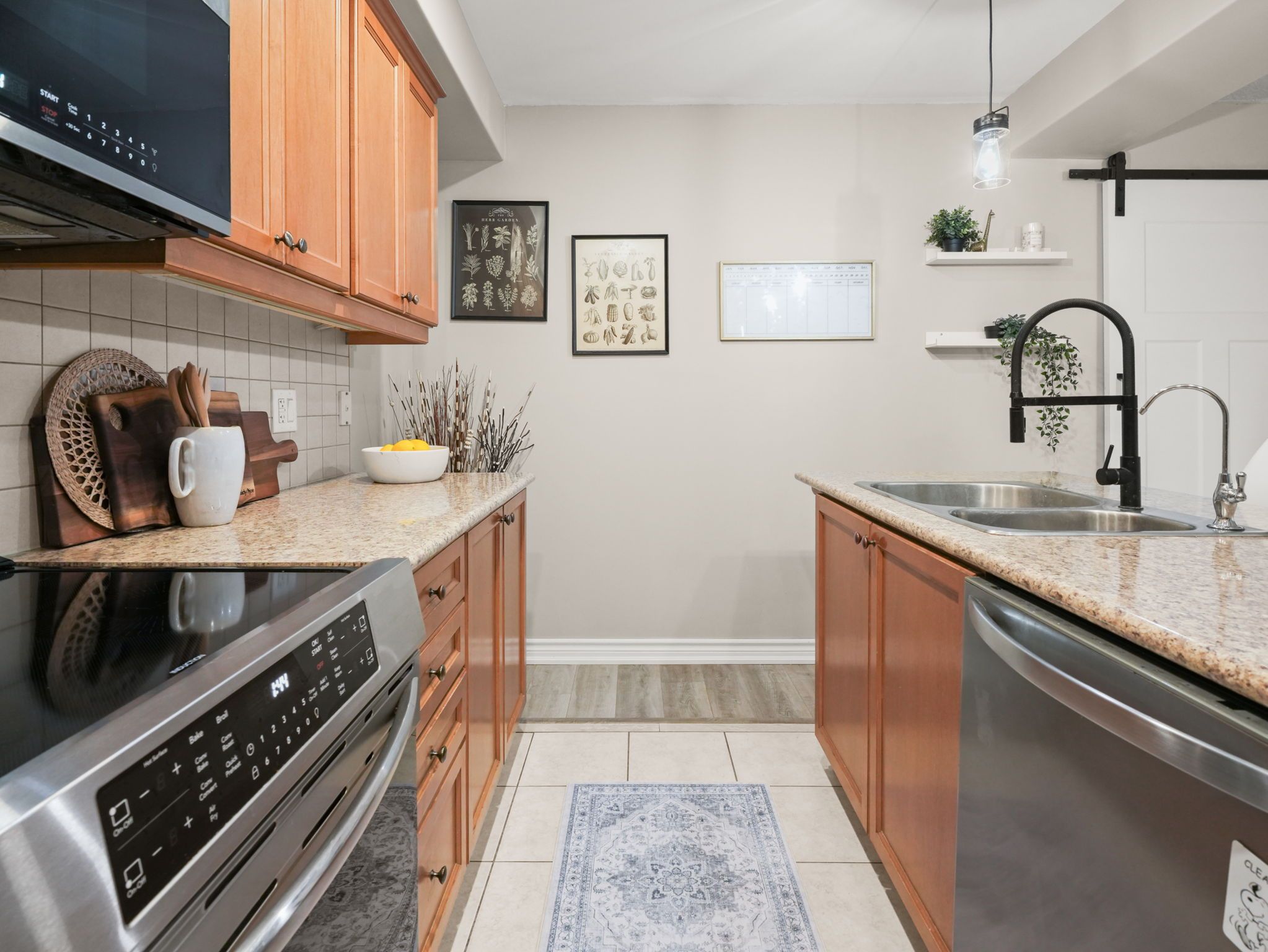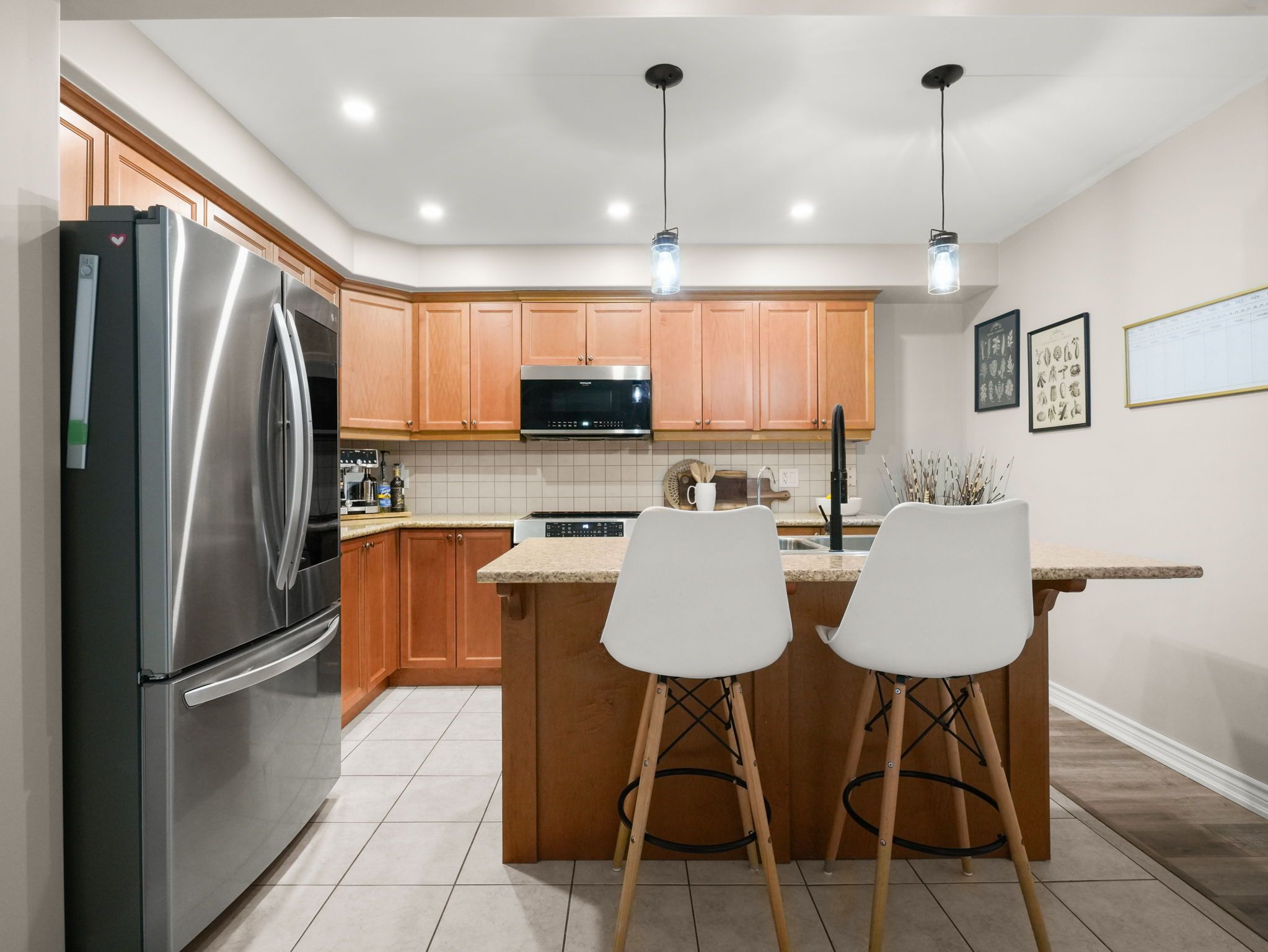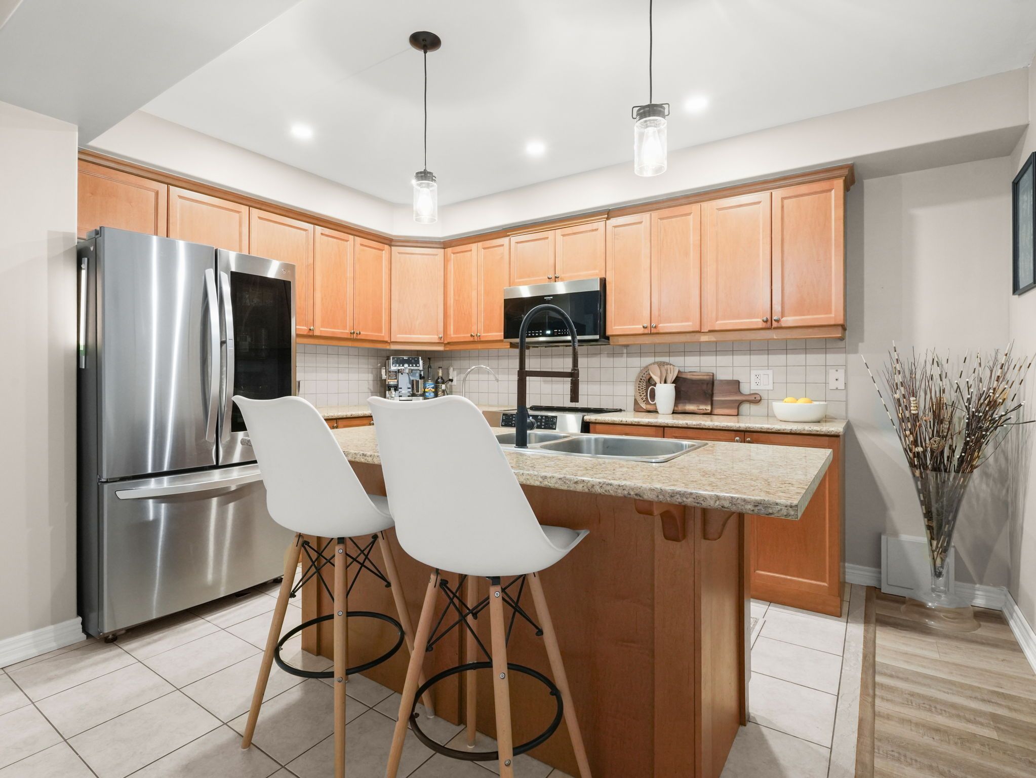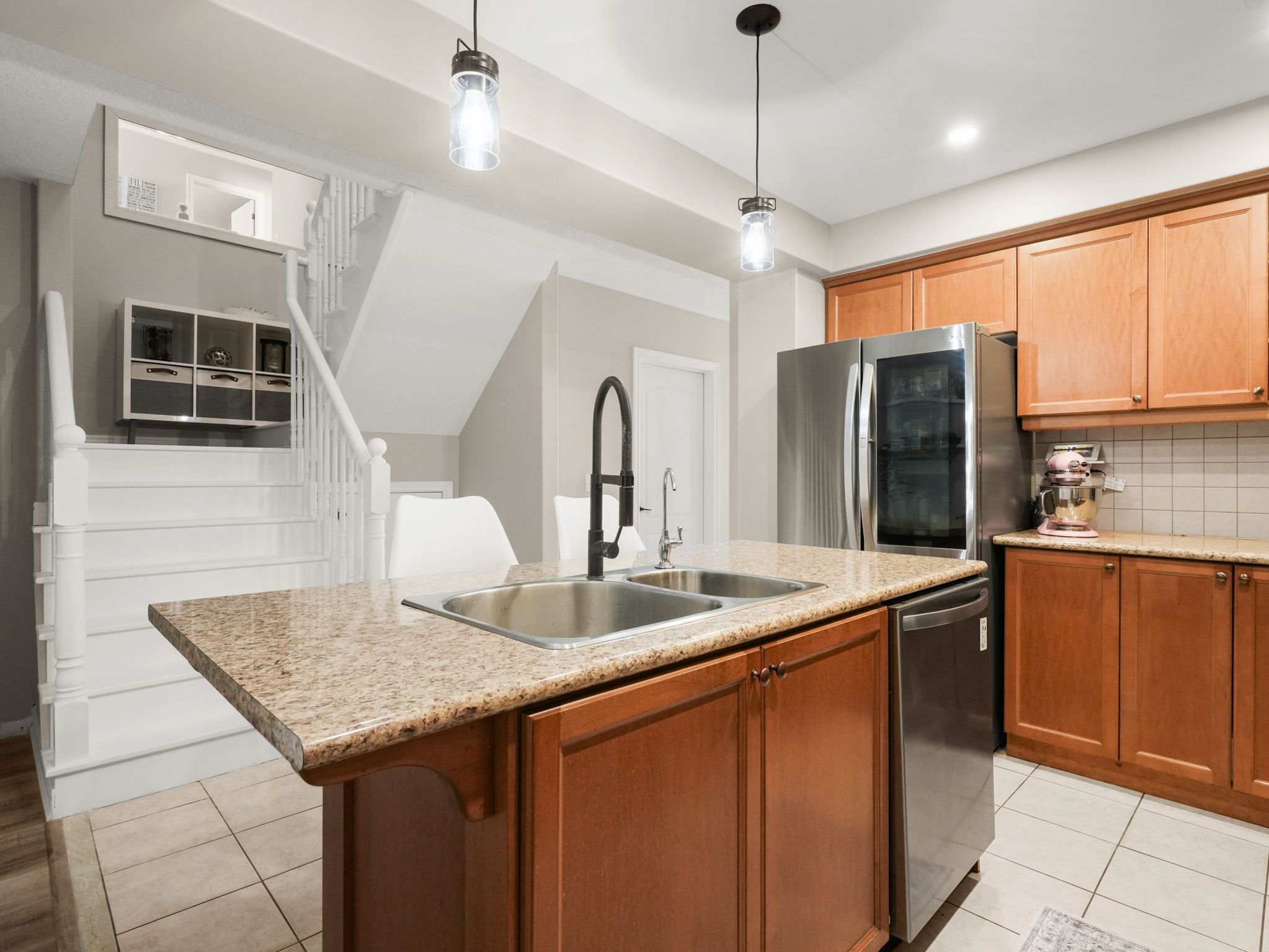 • Large kitchen with an island and plenty of cupboard space.