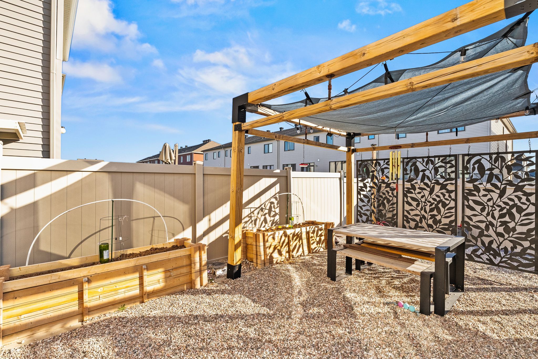 • Relaxing backyard with maintenance-free landscaping and hot tub.