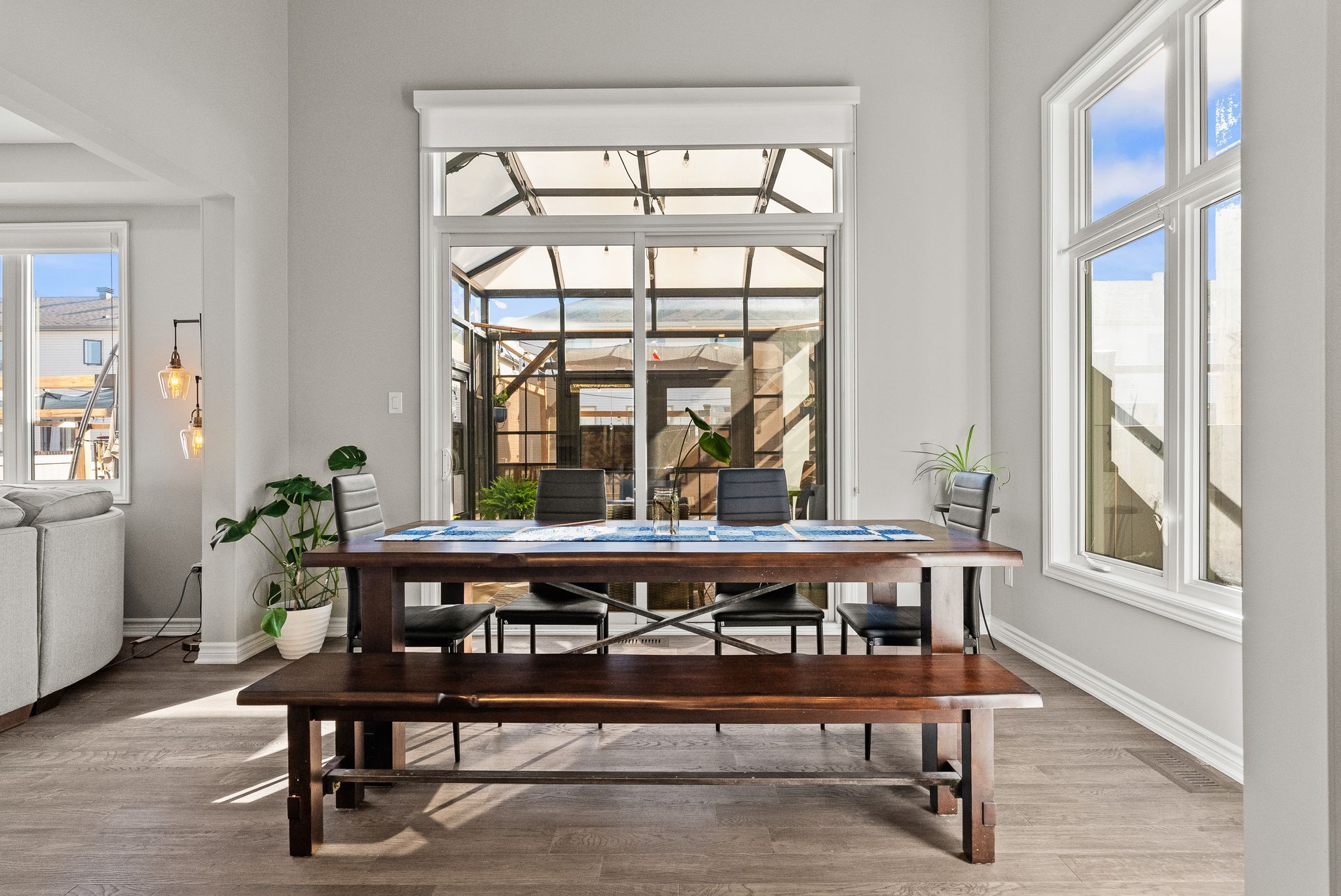 Wow! Welcome to this exceptional 4-bedroom, 2. 5-bathroom mattamy friesian model offering approximately 2,882 sq ft of refined living space in the highly sought-after blackstone community. From the moment you step into the bright, spacious foyer, you're greeted by a front living room or home office framed by oversized windows and filled with natural light. A convenient butler's pantry leads to the heart of the home, an impressive chef-inspired kitchen featuring a large island, walk-in pantry, and seamless open-concept flow into the family room and dining area, perfect for everyday living and entertaining. Expansive windows showcase a beautifully landscaped, maintenance-free backyard designed for relaxation and enjoyment. Unwind with a morning coffee or evening glass of wine in the inviting 3-season sunroom with a convenient dog door. After a long day, relax in the hot tub under the comfort of pergolas and awnings, creating your own private outdoor retreat. The main level also offers a versatile office space and a functional mudroom with a stop-and-drop area off the double garage, perfect for busy families. Upstairs, a wide hallway with hardwood floors leads to a generous primary suite featuring western sun exposure, a spa-like ensuite, and a large walk-in closet. Three additional well-sized bedrooms, a full bathroom, and a convenient second-floor laundry room complete the upper level. Blending comfort, style, and thoughtful design, this beautiful home is ready to welcome its next family. Come make lasting memories in your new home!
