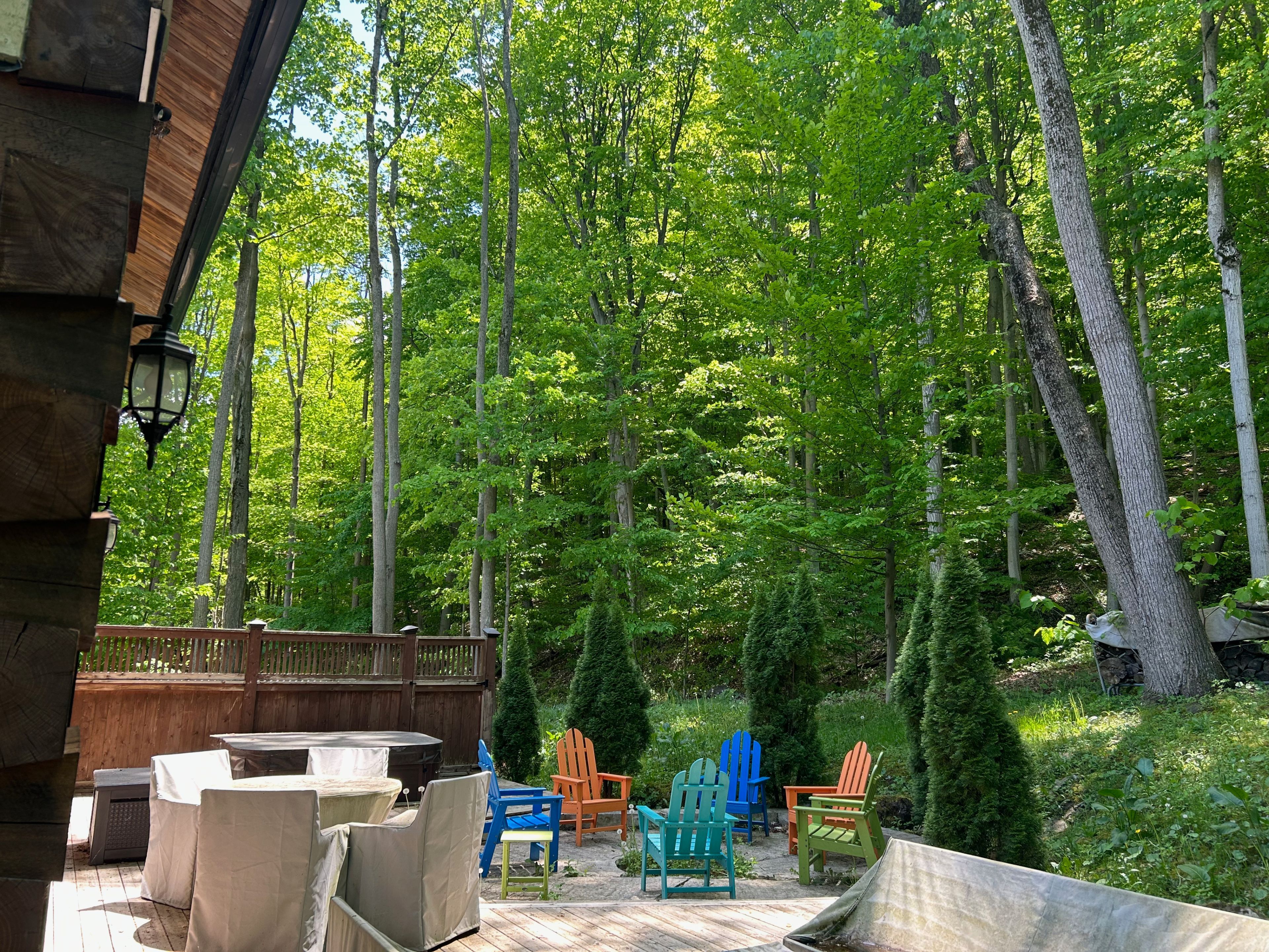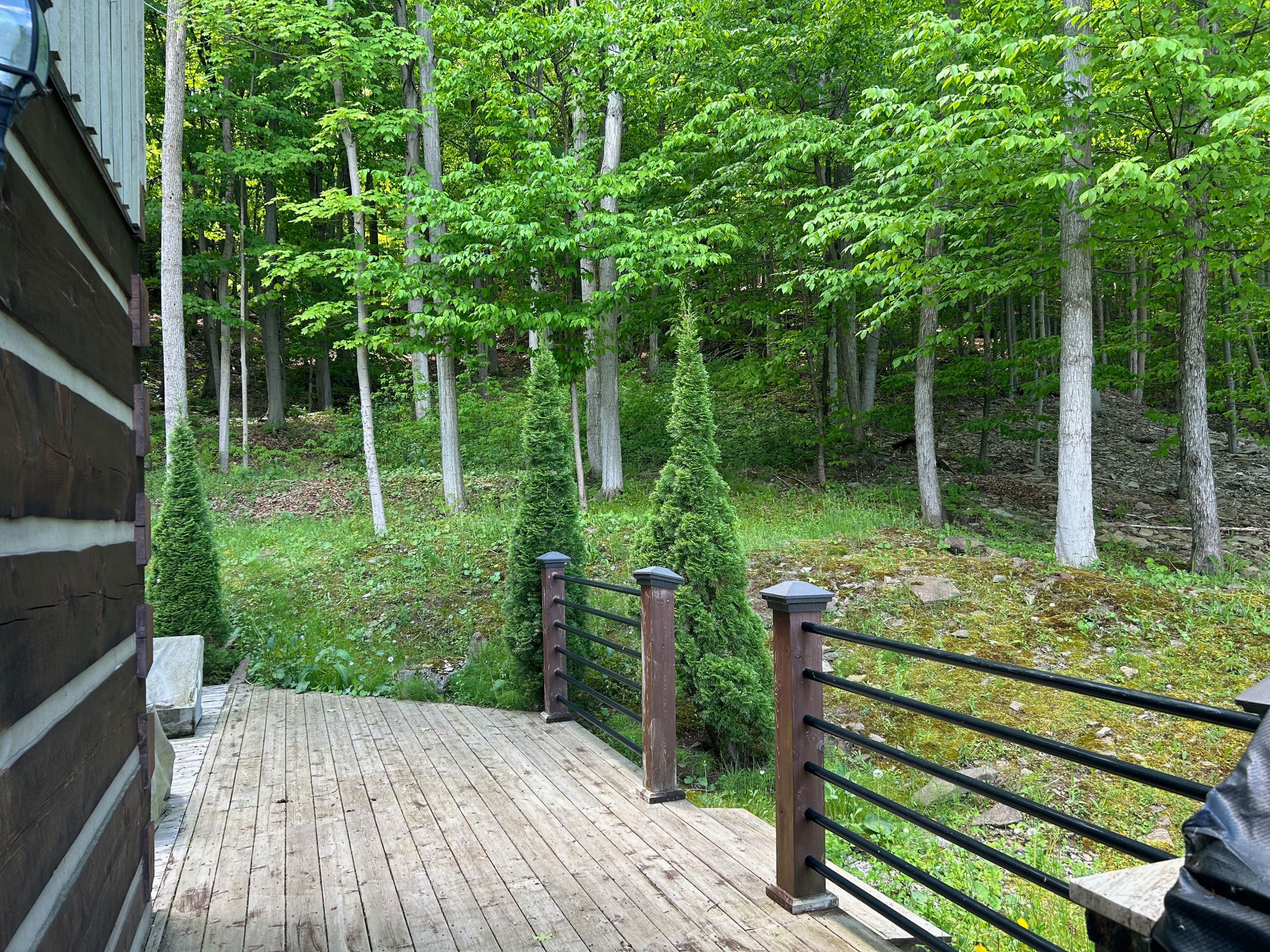 • Private deck and hot tub surrounded by beautiful hardwood forest.