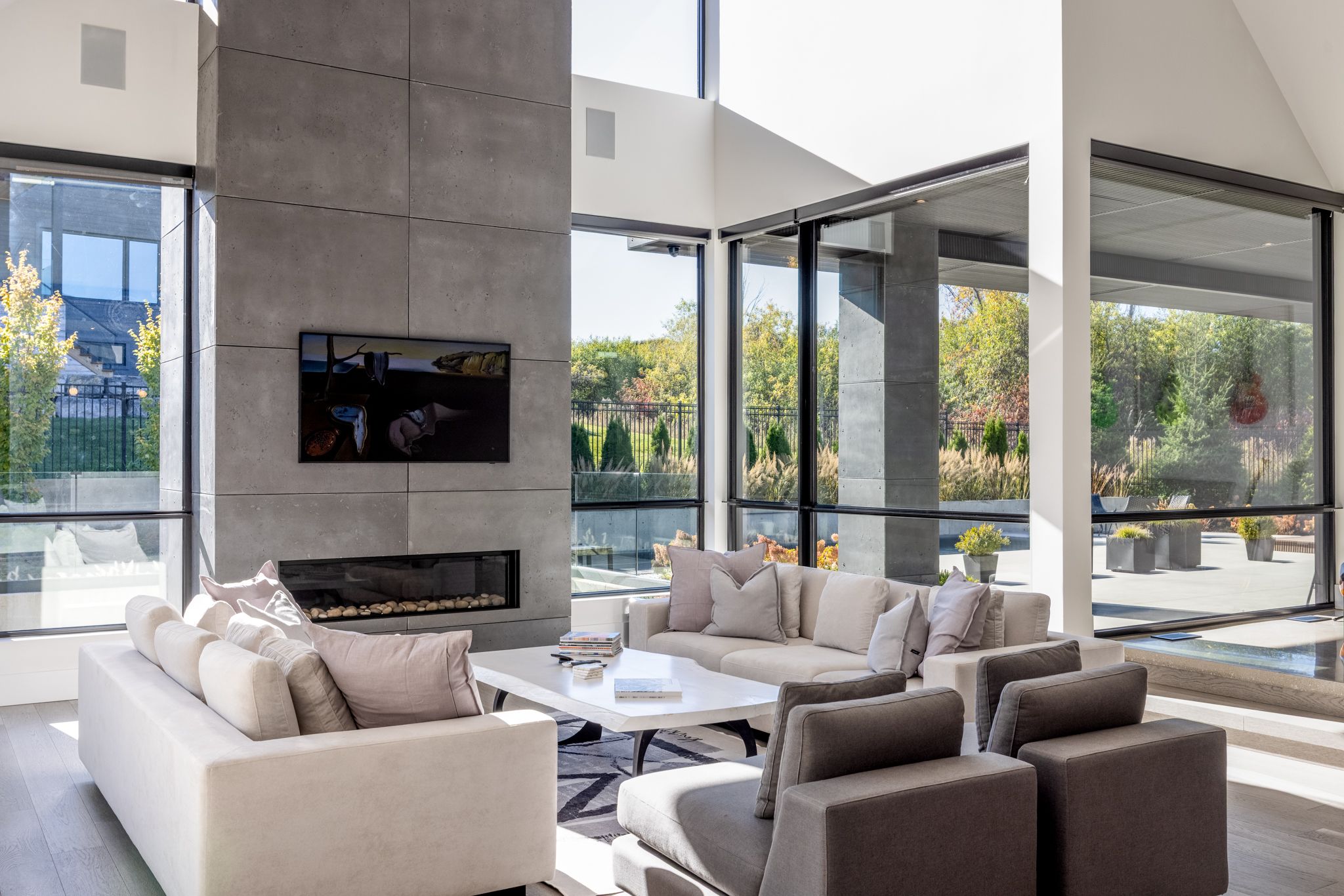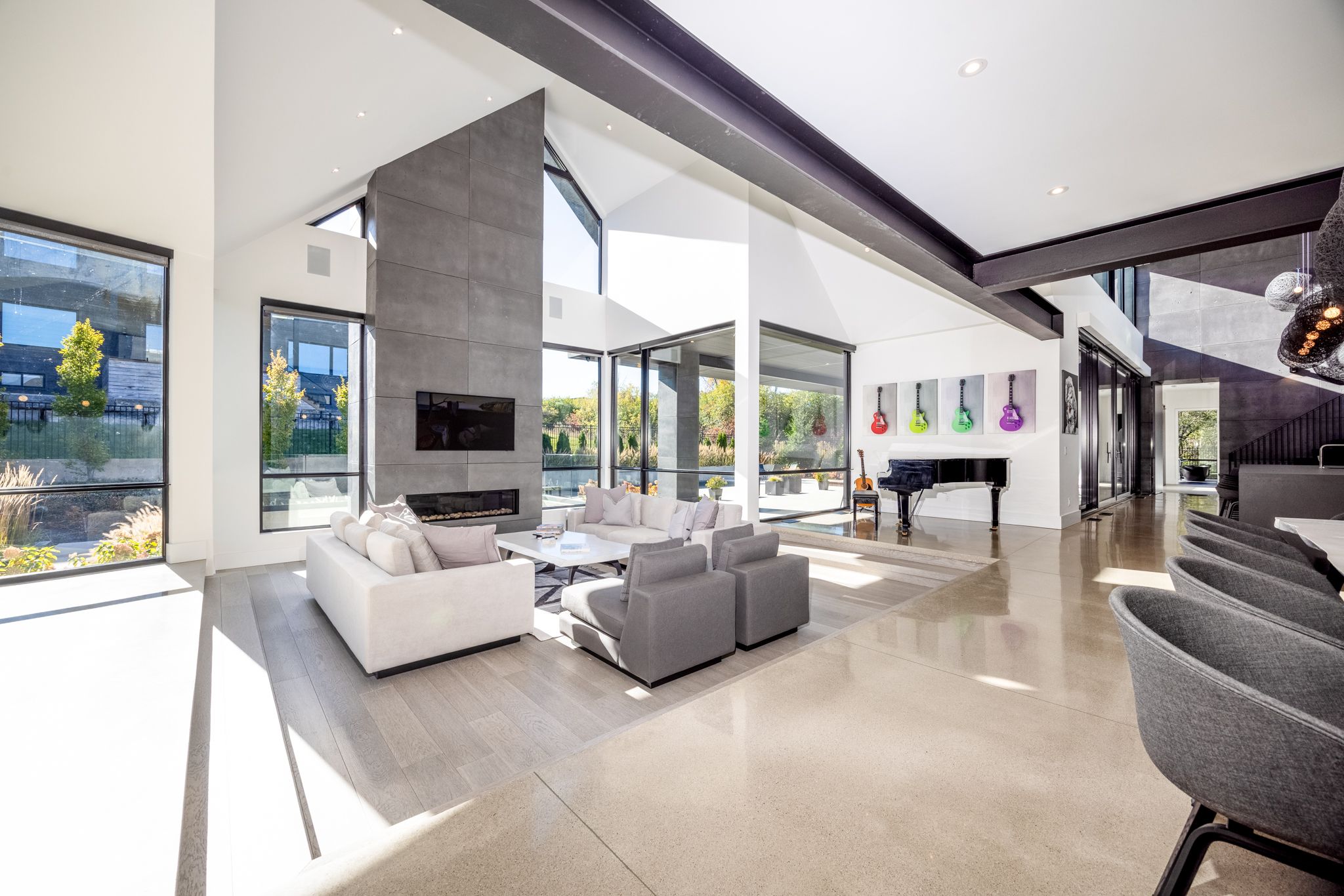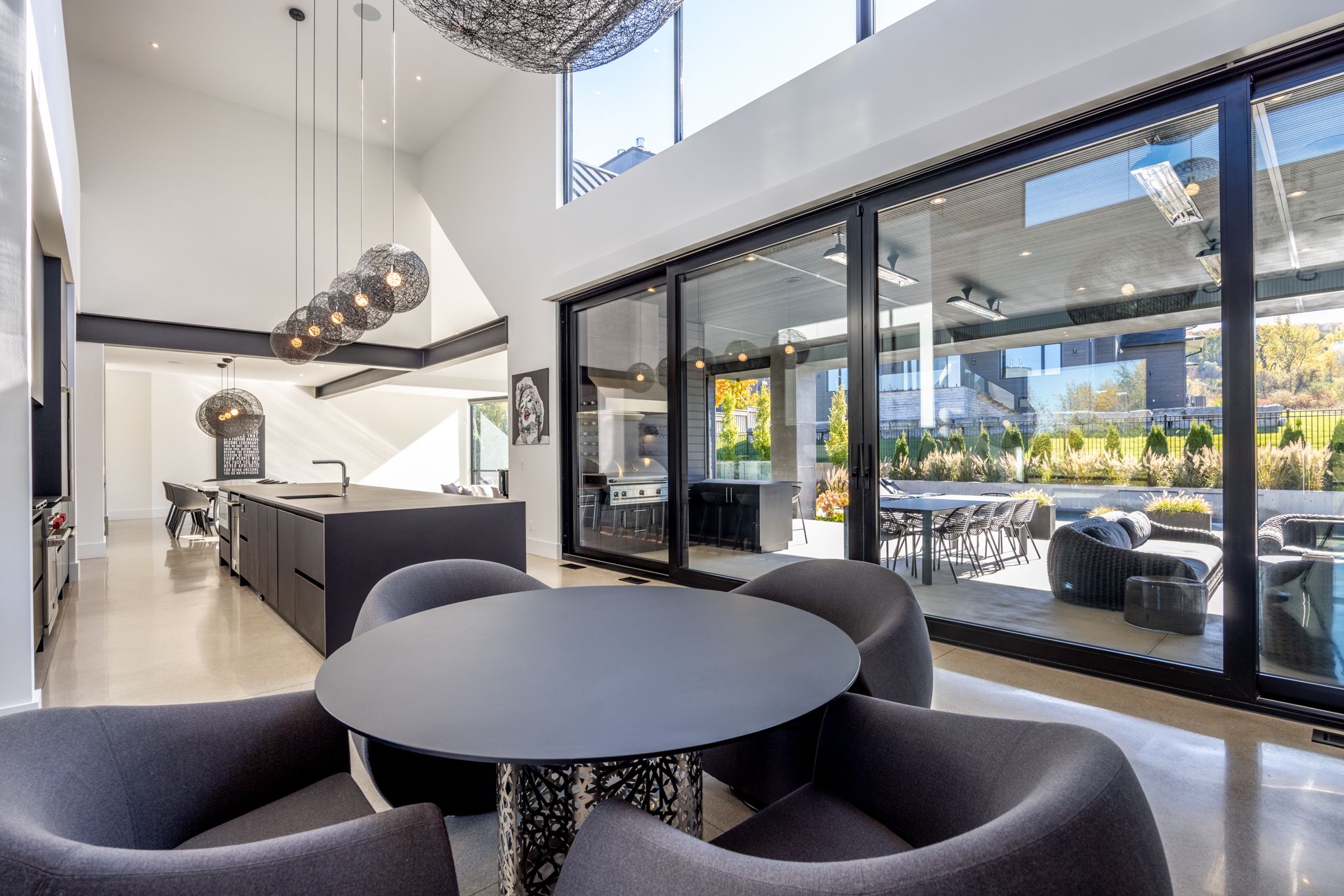 Architecturally stunning custom home in the exclusive camperdown community, a coveted year-round golf, ski, and outdoor playground that epitomizes four-season living in southern georgian bay. Over 9,000 sq. Ft. Of refined living space with soaring 20-ft ceilings, exposed beams, heated polished concrete floors and dramatic floor-to-ceiling windows that flood the interior with natural light. The sunken great room with a 24-foot stone fireplace exudes warmth and comfort - a space equally suited for quiet evenings or entertaining a hundred guests with ease. A striking matte-black kitchen anchors the main level with an 18-ft island, wolf & jennair appliances, and a fully equipped butler's kitchen for seamless hosting. The private primary wing is a true retreat featuring a fireplace, dual walk-in closets, and a spa-level ensuite with mountain views and a walkout to the hot tub. Upstairs, a junior primary suite impresses with vaulted ceilings, a 6-piece ensuite, and a private terrace, while two additional bedrooms open to a covered patio with escarpment views. The lower level is an entertainer's dream with a games lounge, wet bar, golf simulator, gym, music studio, and two more bedrooms. Outdoors, enjoy resort-inspired living with a waterfall pool, hot tub, and a covered lounge with wood-burning fireplace and built-in bbq. Legal golf cart access to the georgian bay club, and just minutes to peaks, blue mountain, thornbury, and collingwood. A rare offering that captures the very best of four-season living in southern georgian bay.