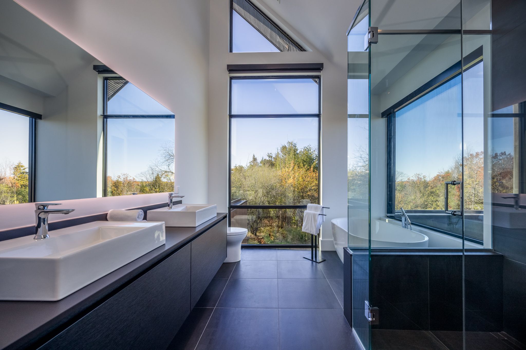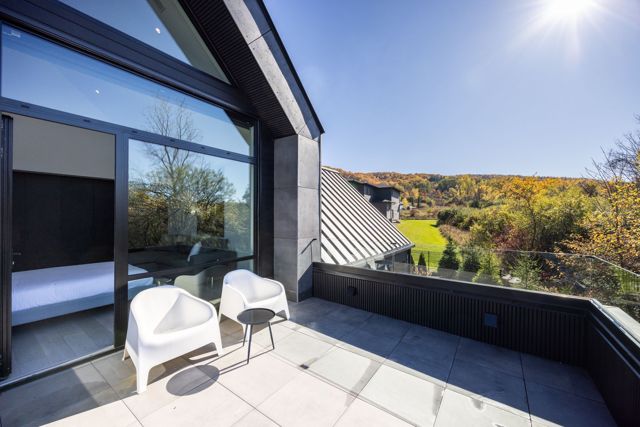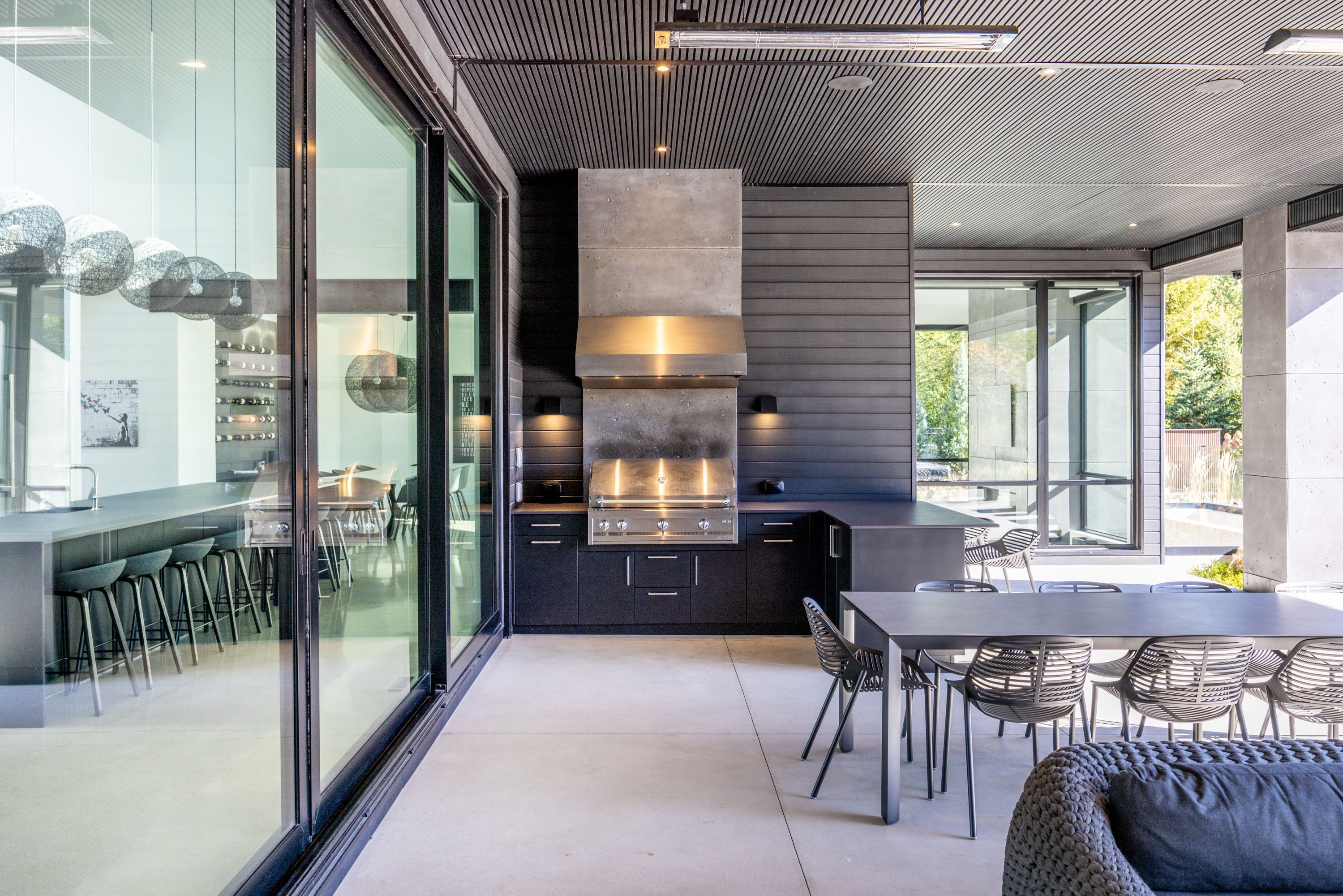 Architecturally stunning custom home in the exclusive camperdown community, a coveted year-round golf, ski, and outdoor playground that epitomizes four-season living in southern georgian bay. Over 9,000 sq. Ft. Of refined living space with soaring 20-ft ceilings, exposed beams, heated polished concrete floors and dramatic floor-to-ceiling windows that flood the interior with natural light. The sunken great room with a 24-foot stone fireplace exudes warmth and comfort - a space equally suited for quiet evenings or entertaining a hundred guests with ease. A striking matte-black kitchen anchors the main level with an 18-ft island, wolf & jennair appliances, and a fully equipped butler's kitchen for seamless hosting. The private primary wing is a true retreat featuring a fireplace, dual walk-in closets, and a spa-level ensuite with mountain views and a walkout to the hot tub. Upstairs, a junior primary suite impresses with vaulted ceilings, a 6-piece ensuite, and a private terrace, while two additional bedrooms open to a covered patio with escarpment views. The lower level is an entertainer's dream with a games lounge, wet bar, golf simulator, gym, music studio, and two more bedrooms. Outdoors, enjoy resort-inspired living with a waterfall pool, hot tub, and a covered lounge with wood-burning fireplace and built-in bbq. Legal golf cart access to the georgian bay club, and just minutes to peaks, blue mountain, thornbury, and collingwood. A rare offering that captures the very best of four-season living in southern georgian bay.