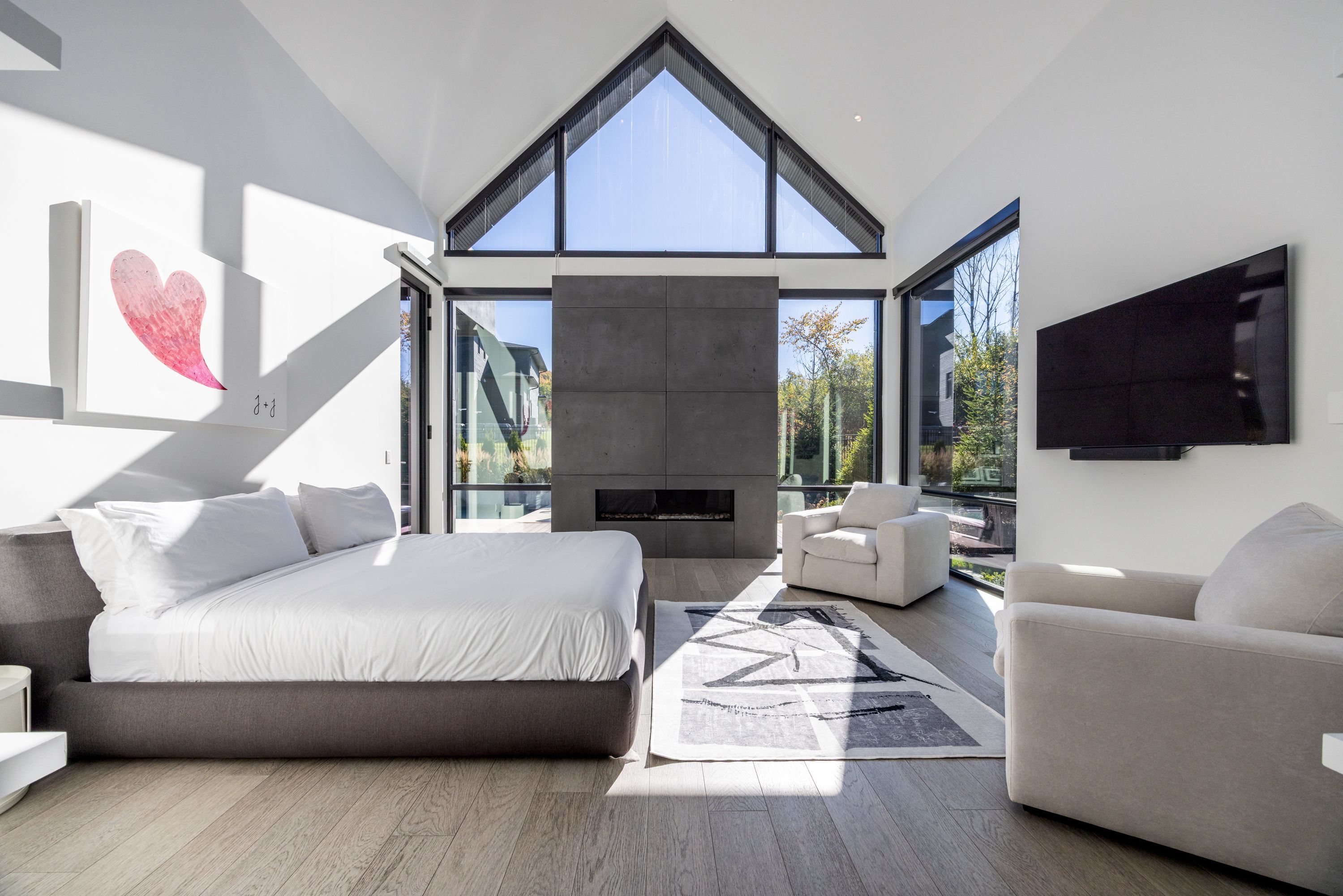 • Private primary wing includes fireplace, dual walk-in closets, and spa-like ensuite.