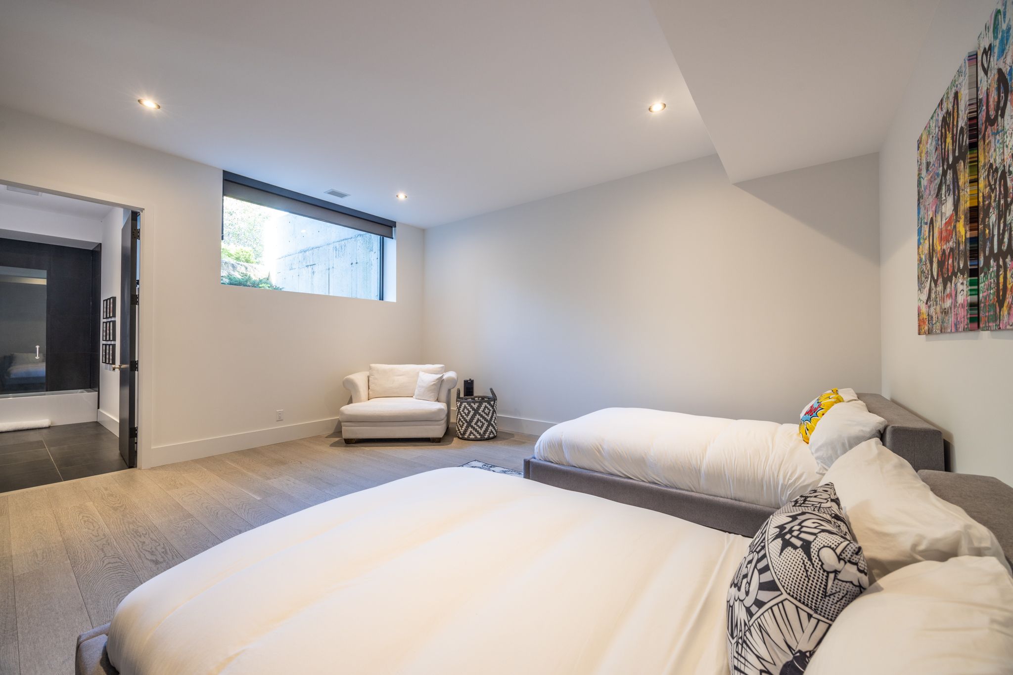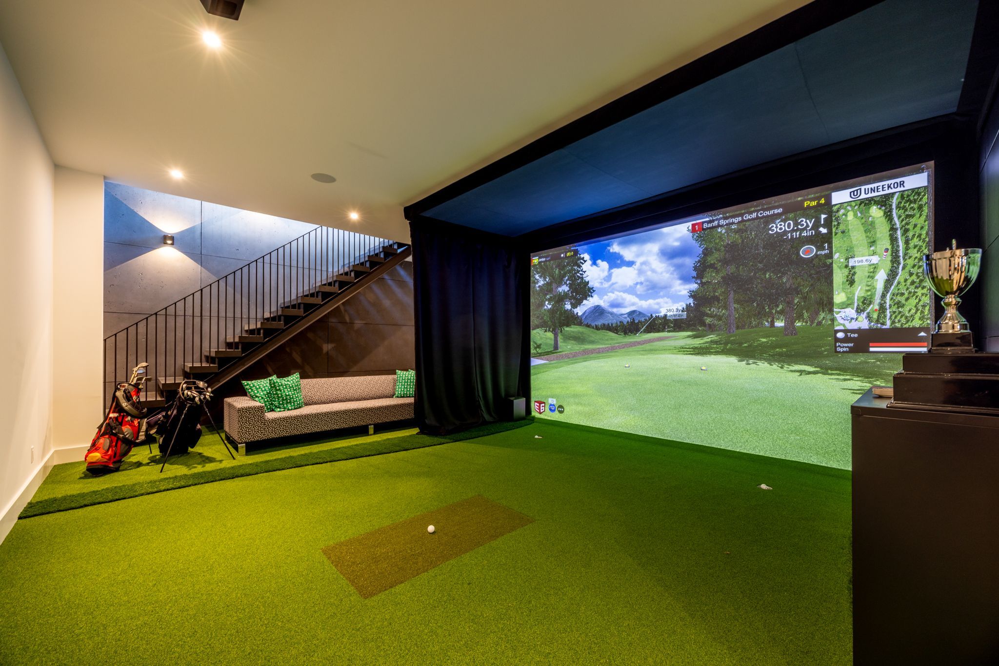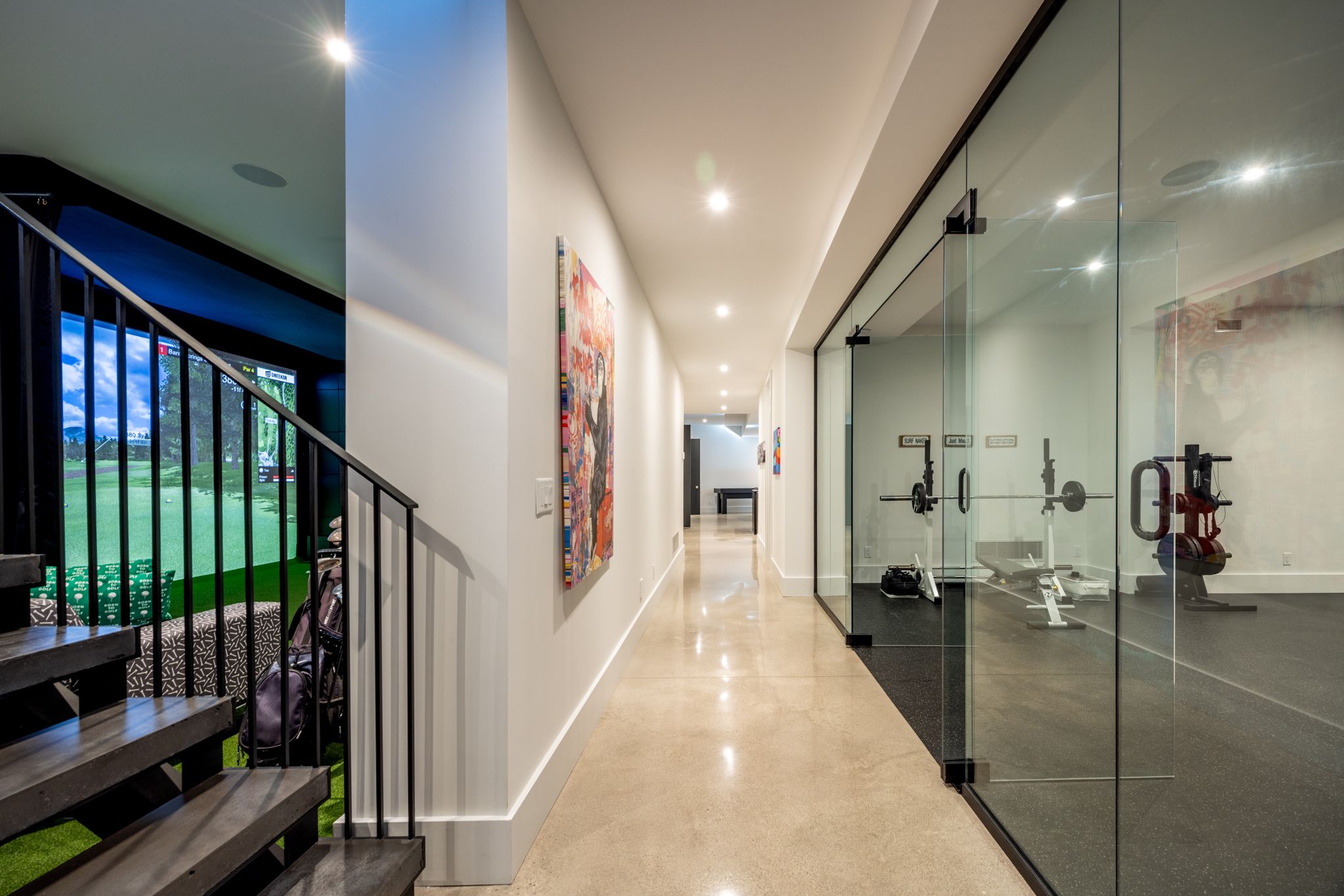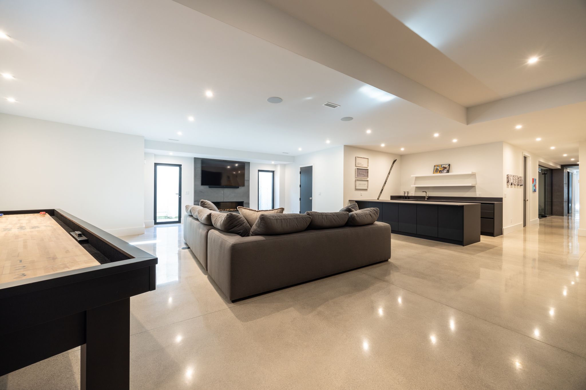 • Lower level features entertainment options like a games lounge and gym.