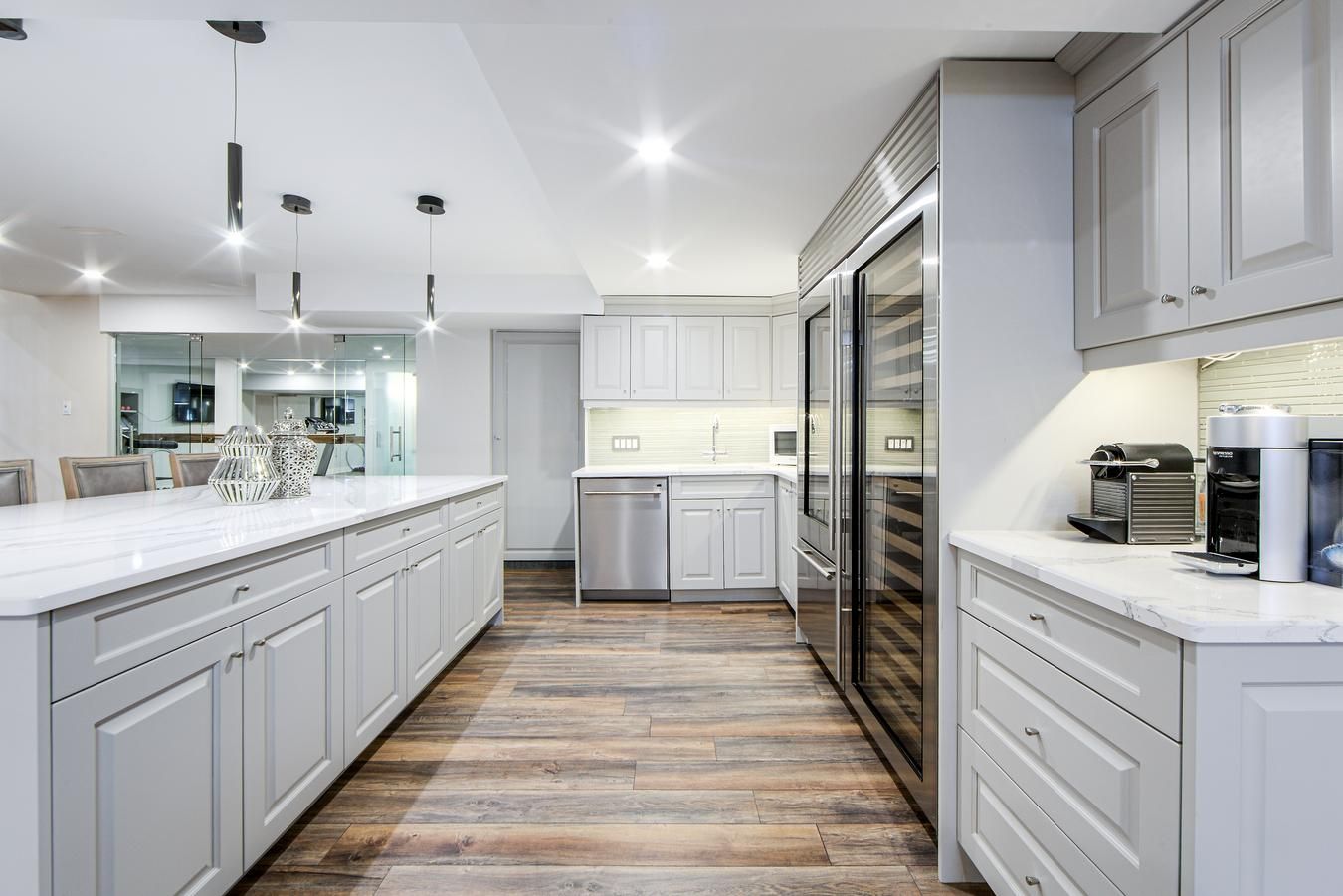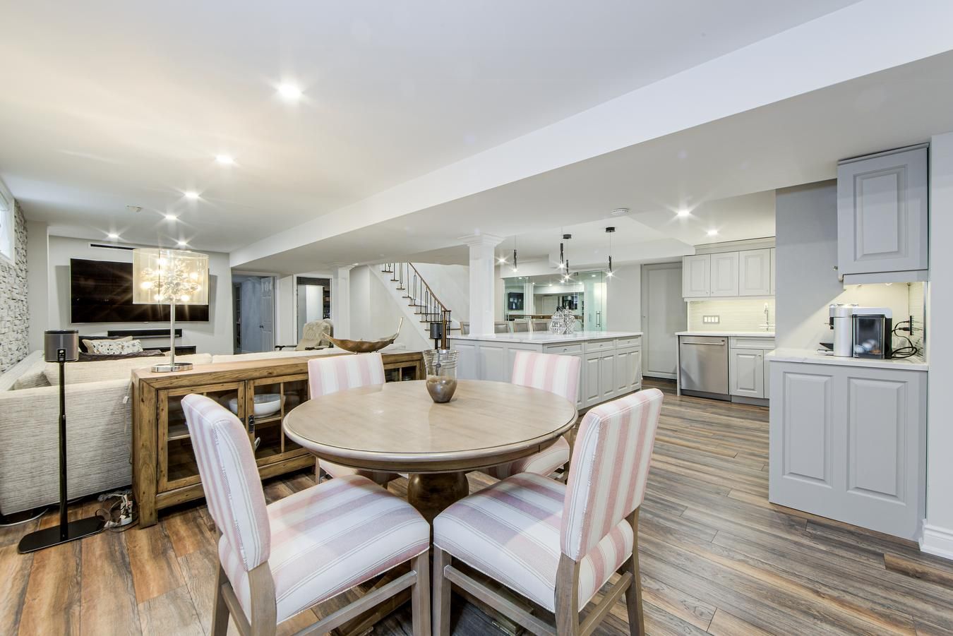 • Finished basement includes sauna, second kitchen, gym, and in-law bedroom.