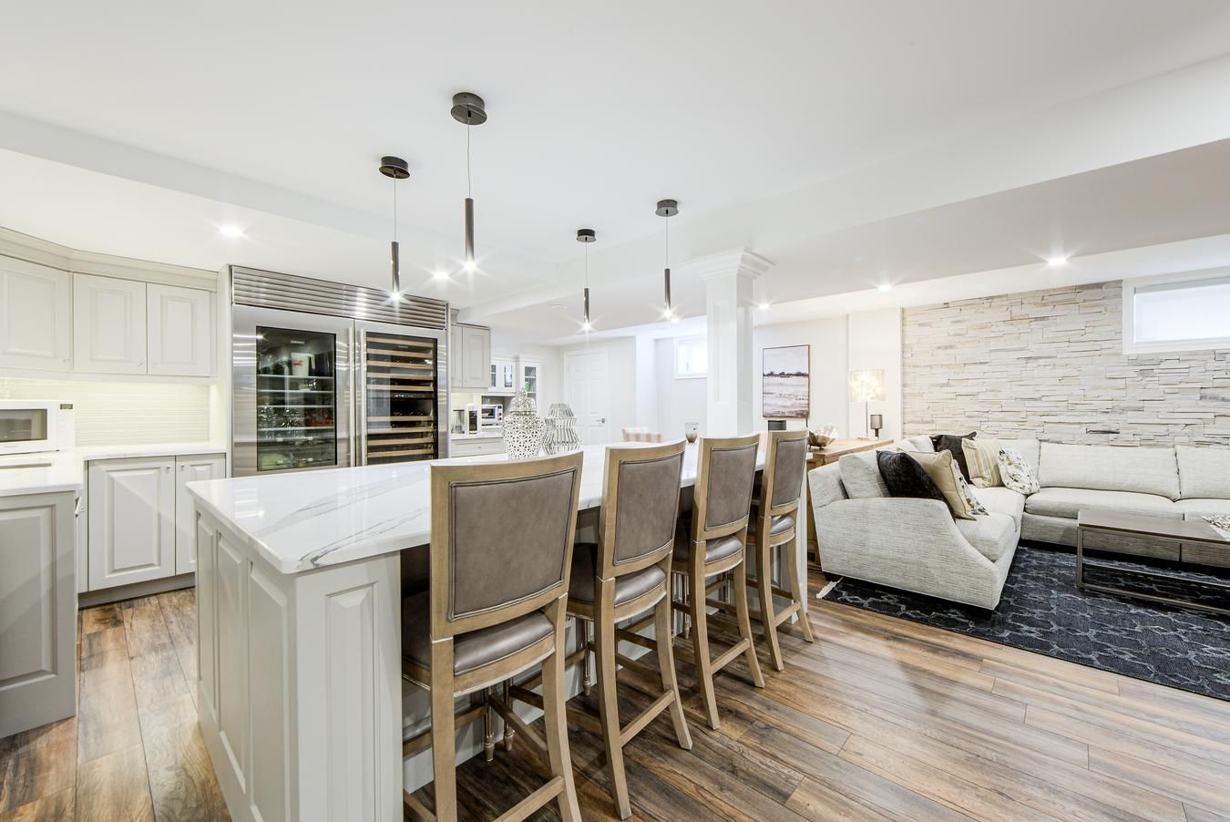 • Finished basement with sauna, gym, and in-law suite for versatile use.