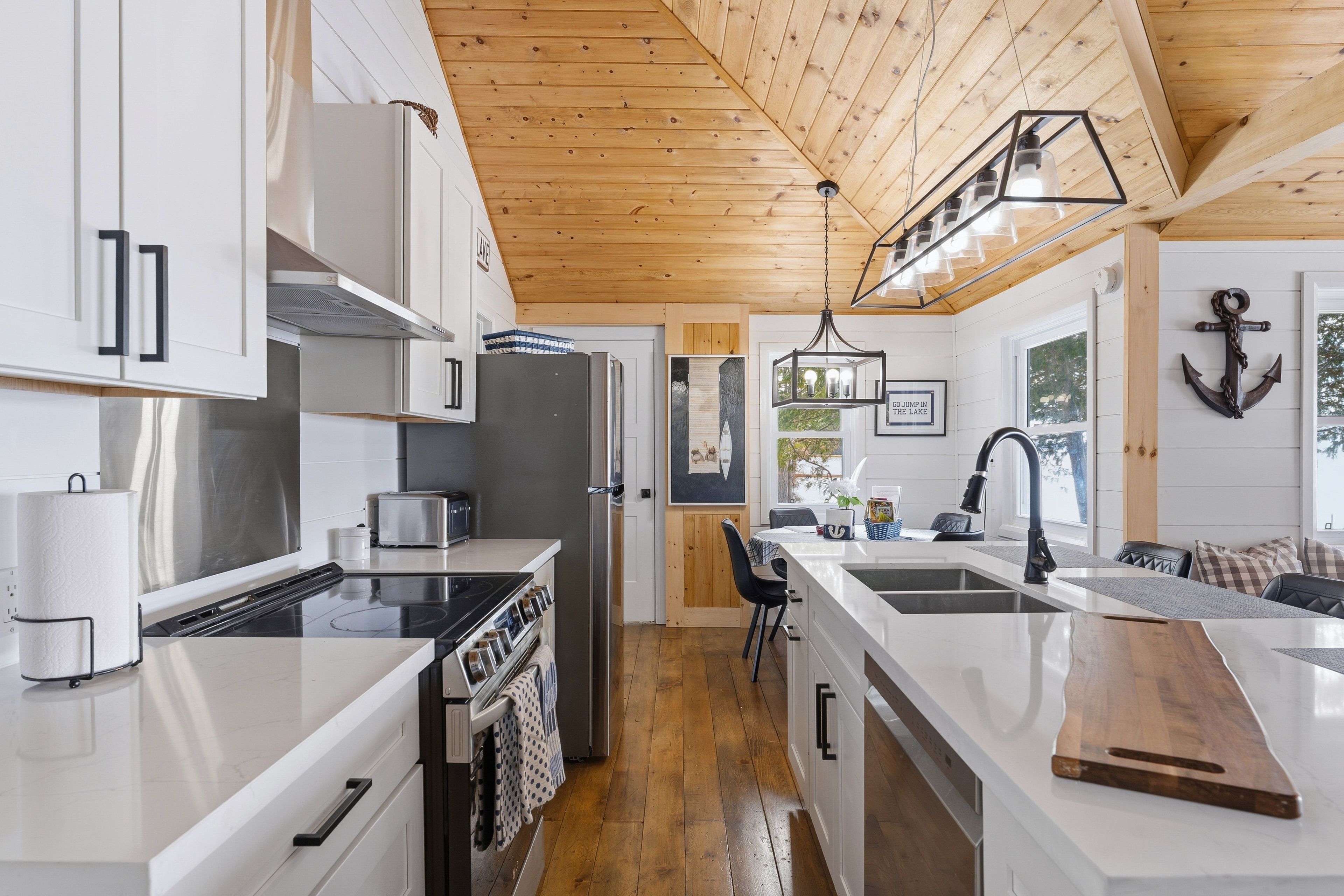 Enjoy hassle-free, year-round waterfront living on beautiful sturgeon lake! This well-maintained property features numerous upgrades, including all new windows and doors. The living room offers hardwood flooring and a vaulted ceiling, creating a bright and welcoming space. The kitchen features an island and quartz countertops, perfect for both everyday living and entertaining. The renovated 3-piece bathroom also includes quartz countertops. The home offers three bedrooms plus a storage/utility room with water treatment system and hot water tank. Outside, you'll find a single dry-slip boathouse with marine rail, a new dock, and a rock retaining wall along the clean, rocky shoreline. Enjoy summer evenings around the new firepit. Additional features include a shed for extra storage, a bunkie with hydro for guests, and an extended deck with new railings. Located on paved, municipally maintained sturgeon glen road, this property offers easy year-round access and is less than five minutes from the shops, restaurants, and amenities of fenelon falls.