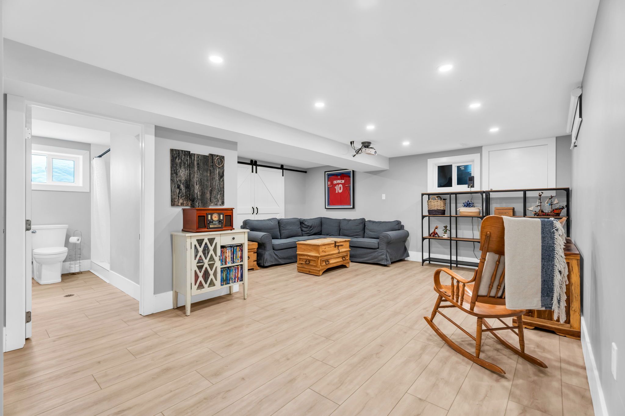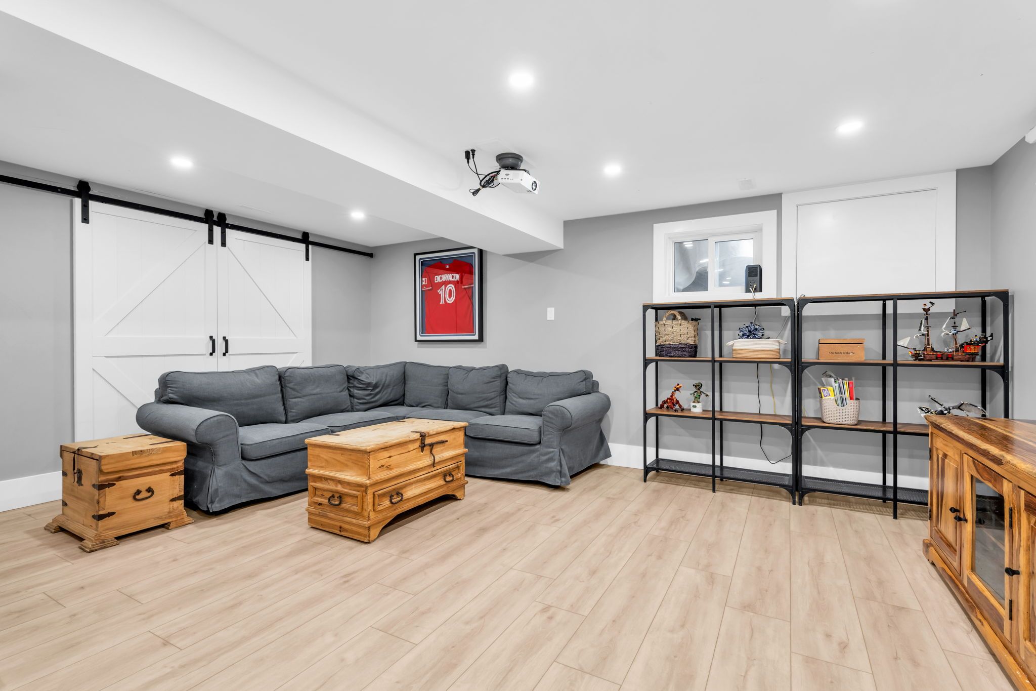 • Finished basement with a cozy family room and wet bar.
