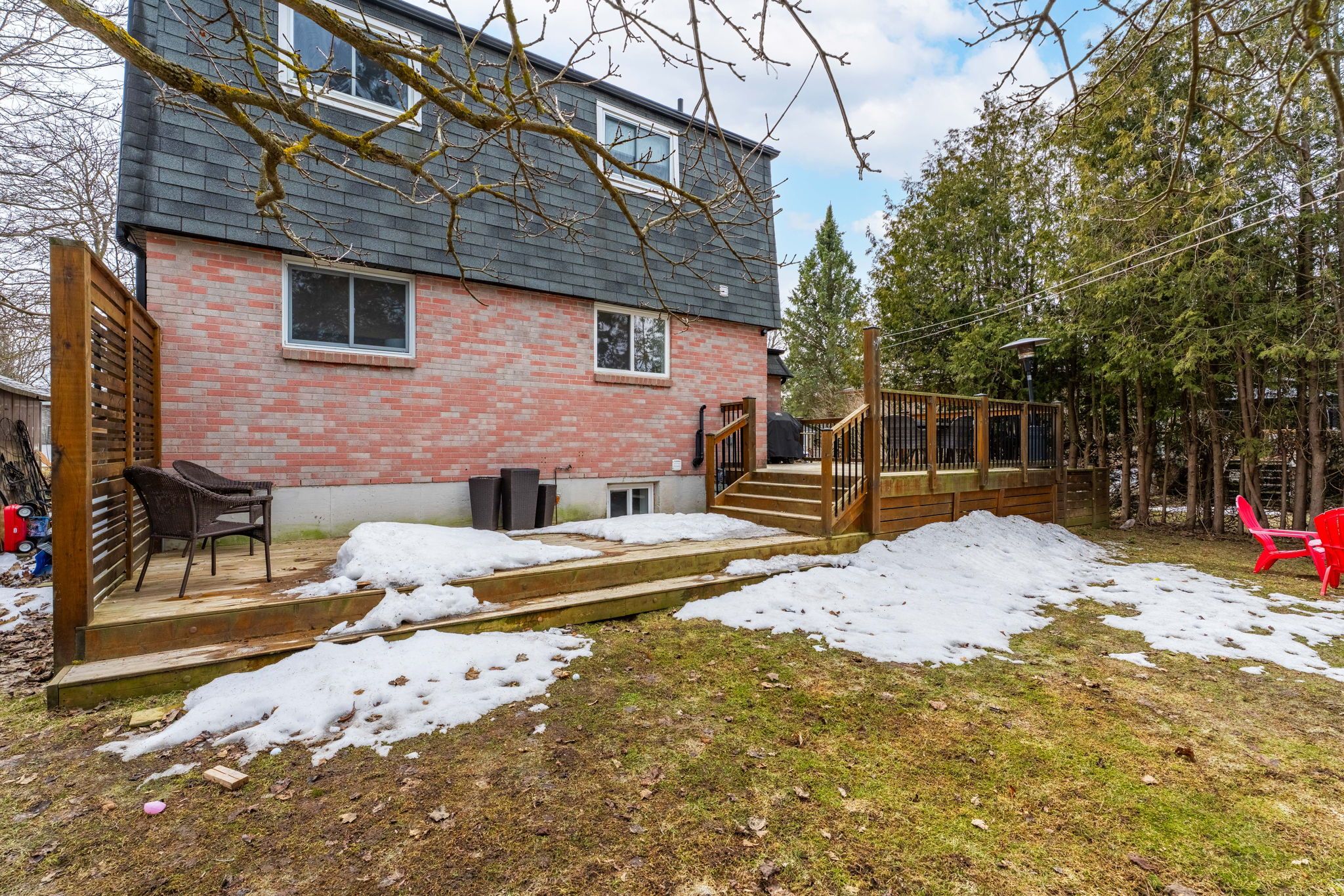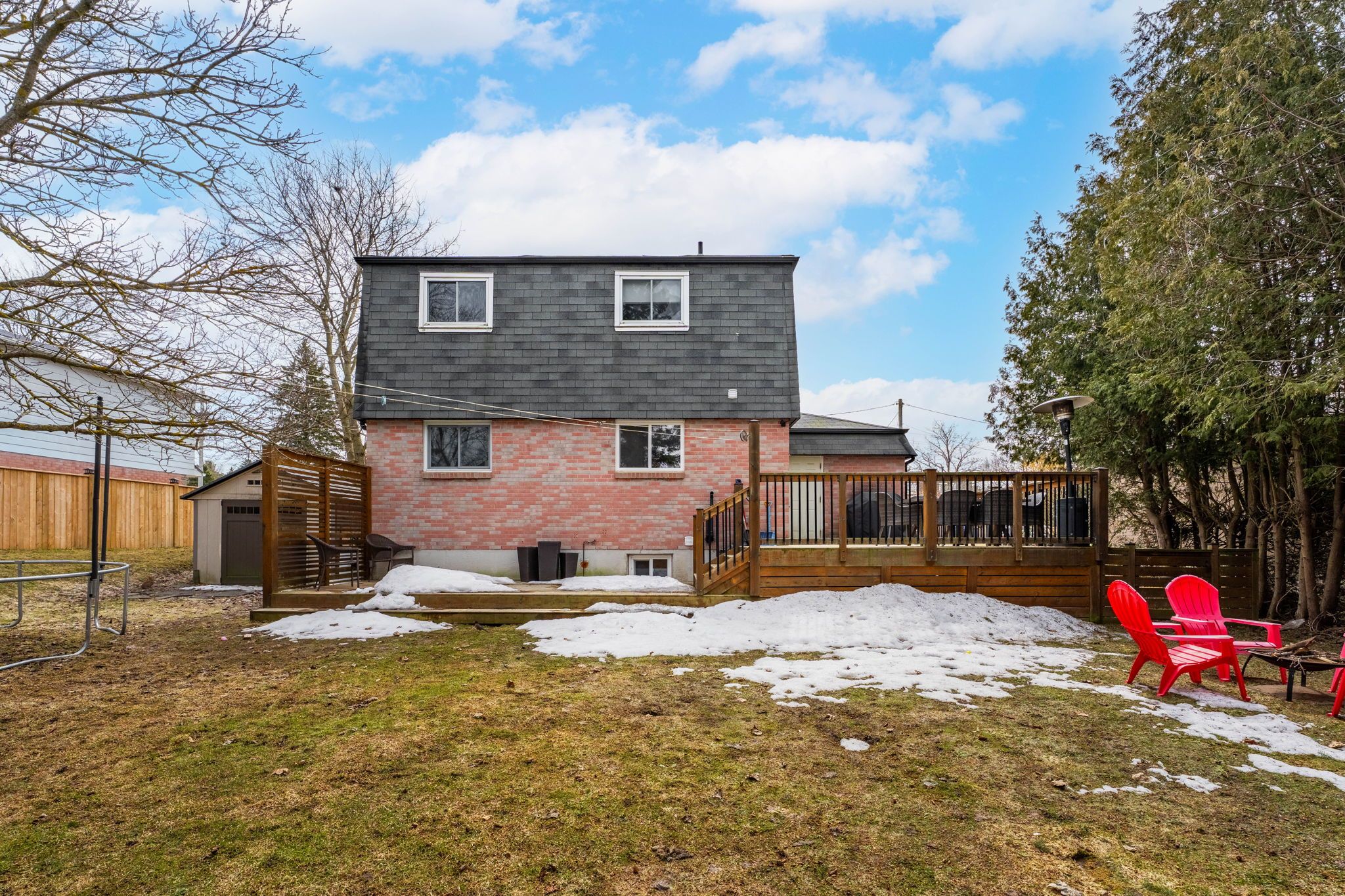 • Spacious backyard with a tiered deck, perfect for gatherings.
