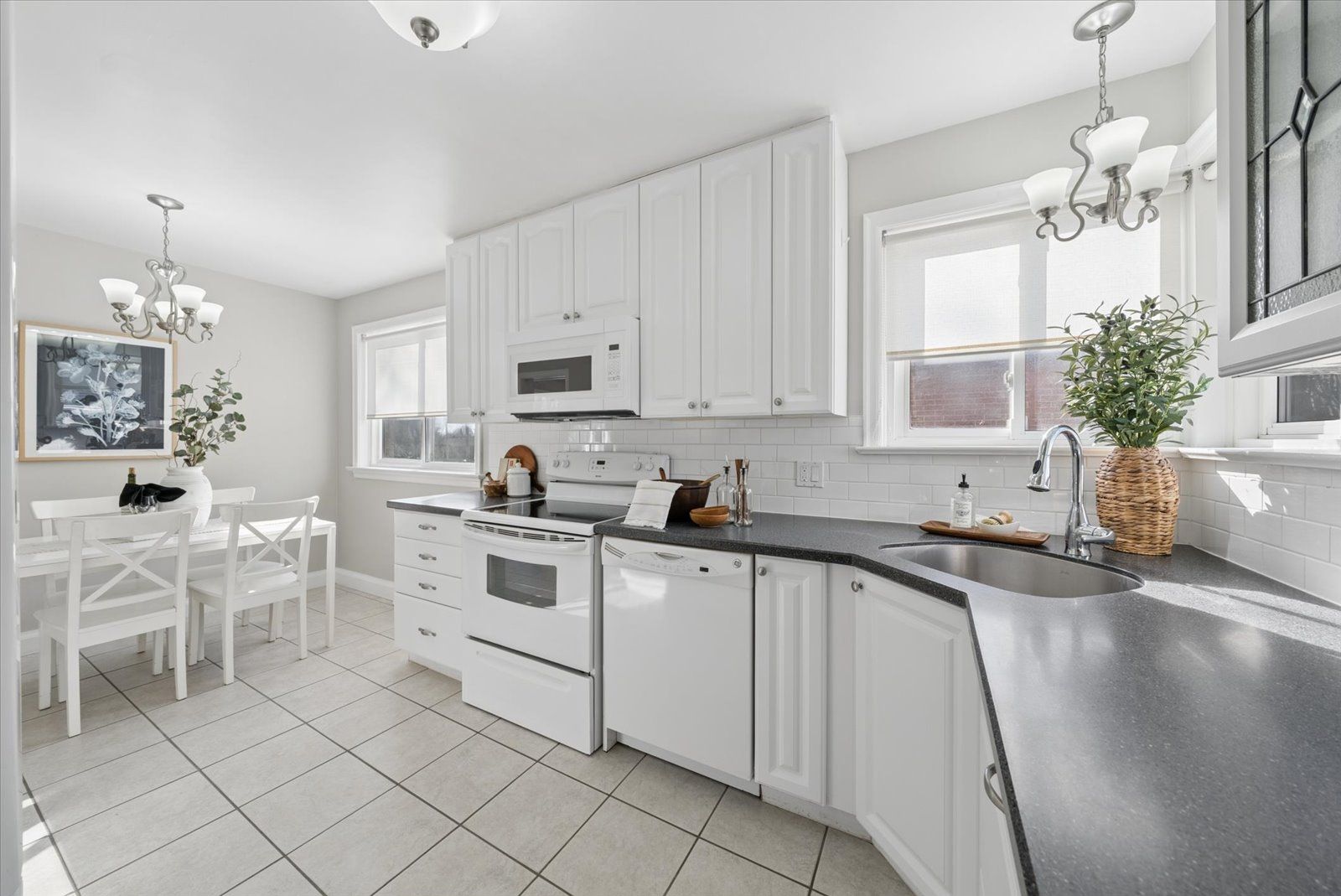• Updated eat-in kitchen with spacious areas for cooking and dining.