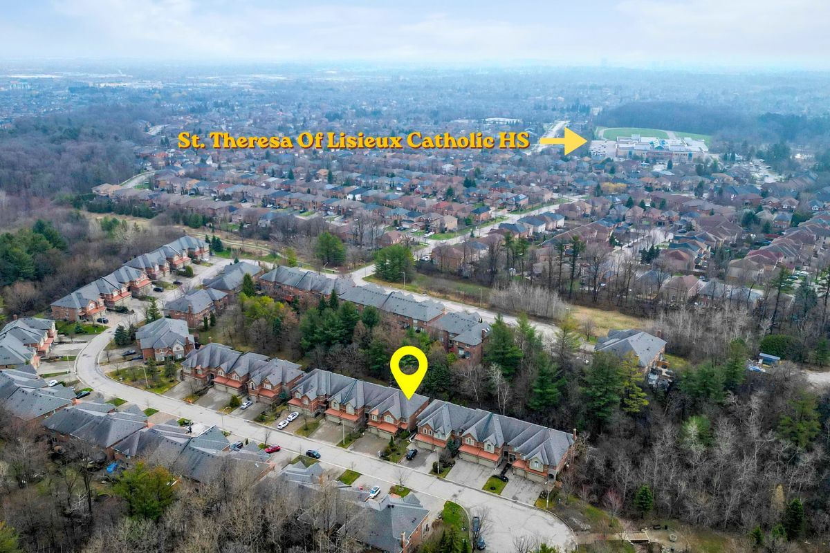 Stop searching!!! Don't miss the opportunity to own this freehold townhouse which nestled on a premium end-unit lot in the highly sought-after westbrook community! Backs onto serene, protected woodland and offers over 3,000sf of finished living space, including 2,397 sq. Ft. Above ground plus a fully finished basement. The main floor features 9-ft ceilings and a bright, open-concept layout. California shutters are installed throughout. Modern styled kitchen and breakfast area opening onto a treetop deck with fantastic views. Upstairs offers second-floor laundry and spacious bedrooms. Primary bedroom with a fully renovated 5-piece ensuite (2025). The second bathroom also fully renovated in 2025. Newly upgraded flooring (2025) throughout the upper level. The finished basement provides additional living and study space. Conveniently located near parks, trails, transit, and top-ranked schools! St. Theresa of lisieux catholic high school is only 3 minutes away!! $224. 23 low monthly fee with home owner association, **not polt fee**, covering window cleaning, snow removal, and lawn care. The perfect balance of nature, comfort, and convenience!!