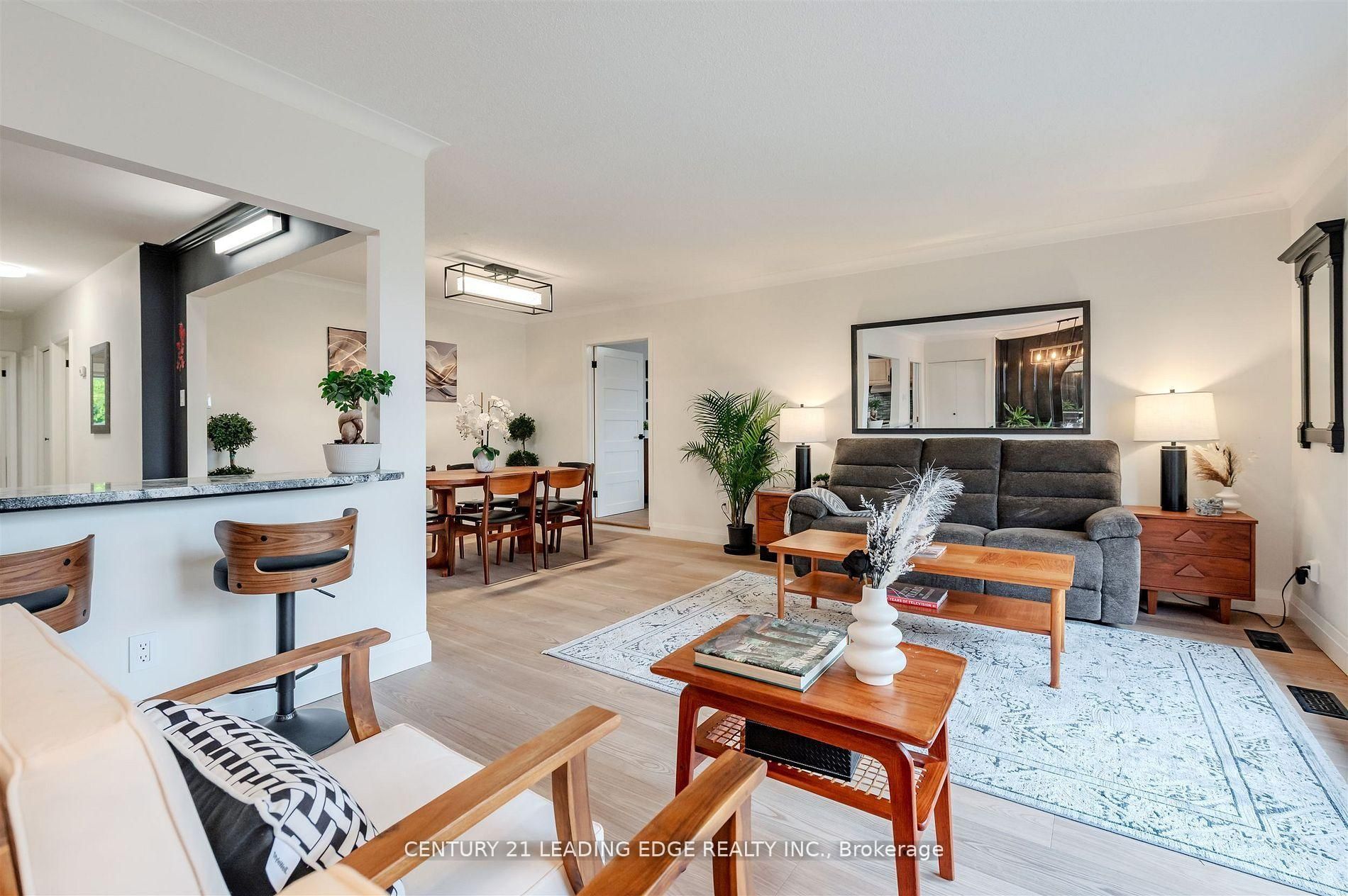 Beautiful rare 4 bdrm (on the main floor), (1,500 sq. Ft on main floor-plus over 1,200 sq. Ft. On the lower level with a separate side entrance for possible in-law suite or apartment with minor modification. 4th large bdrm can easily convert to a main floor family room), brick and stone home with garage. Extensively renovated with too many features to list. Huge windows with great sunshine coming in and a true feeling of openness. Stone fireplace in the lower level huge rec room, stone bar-b-q/pizza oven in the back yard all fantastic hang out places for get togethers, the perennial gardens, flagstone pathway and balcony with awning create an inviting outdoor space to enjoy even more special moments. Exquisite renovated bathrooms with all the bells and whistles, cedar sauna and tons of storage, new doors systems, front and side and new interior doors thru-out. Cedar sauna, tonnes of storage, new 3/4" european engineered white ash flooring on both levels, no expenses spared with this newly renovated bungalow, brand new upgraded lg appliances with massive fridge and induction oven, new interior shaker doors thru-out, lower level ceilings are sound absorbing to keep noise levels very low and private. Driveway is bordered by stunning armour stone and carriage doors on the garage, pride of ownership has been greatly displayed in this gorgeous home. Dont miss out!!!