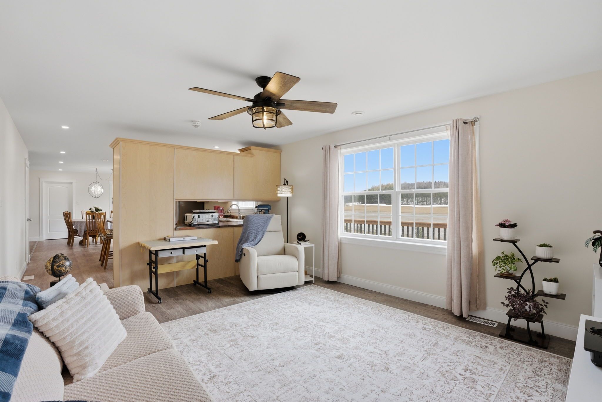 8 years new 3 bedroom 2 full bathroom country bungalow in immaculate condition on a quiet year round municipally maintained road on a 2. 47-acre lot with open pastoral views and superb southern exposure, centrally located to bracebridge, huntsville, and port carling, just 600 meters from a nearby public boat launch on 3 mile lake. Canadian prefabricated bungalow features convenient one floor living with a large deck spanning the full length of the home and overlooks the generously sized back yard. Open concept living/dining/kitchen with centre island, s/s appliances, plus a family room, all flooded with natural light. Spacious primary bedroom enhanced by a walk-in closet and ensuite with jetted soaker tub and separate vanity area. Handy pantry, ample closets, dedicated laundry room, and multiple walkouts to the deck. Efficient propane furnace and central air. Multiple storage sheds, mature trees, in a sun-filled setting in a rarely offered and desirable muskoka lakes twp. Location. A terrific offering, appealing to a variety of buyers whether just starting out or retiring. Move-in ready, turnkey, with nothing left undone, and immediate possession available.