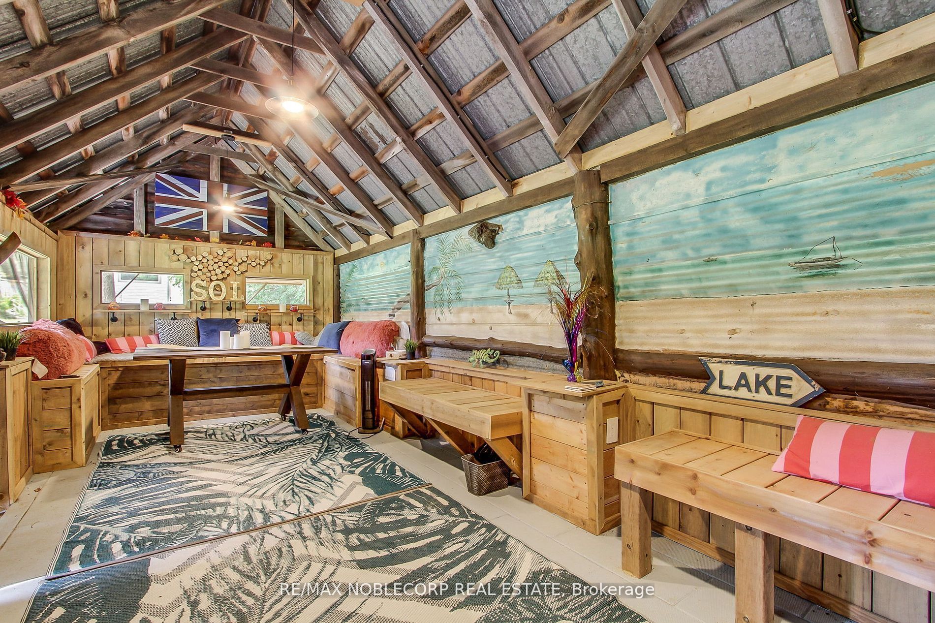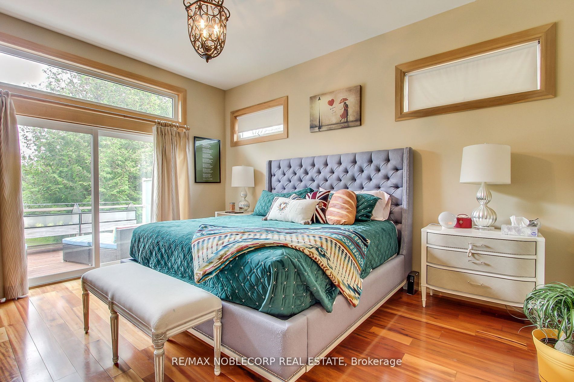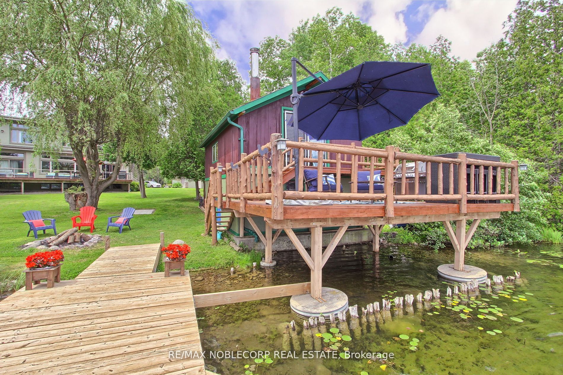 Asian inspired chalk lake beauty! Over 200k sent in upgrades, including a new fence. With 110 ft of waterfront & sandy beach, a 2-storey freshly painted "cottage," custom-built, 3 br, 2-story home w/ exquisite views of the lake. Asian inspired primary br 12th century japanese castle doors to the asian influenced bathrooms, elf & front entrance, this home is a must-see. Glass railings and a large, freshly painted deck on the house's waterside ensure no obstructed views. Newly paved driveway with space for ten vehicles. Top floor: 10 feet high with a custom stacked stone fireplace in the great room; main floor master br with wi closet and exquisite ensuite with glass shower and soaker tub, 2nd level with 2 br, fully enclosed tiki hut, new dock. Min to 407, golf, skiing. Too many upgrades to list, this property is an entertainer's paradise. Unique home with meticulous landscaping and a lot of love..